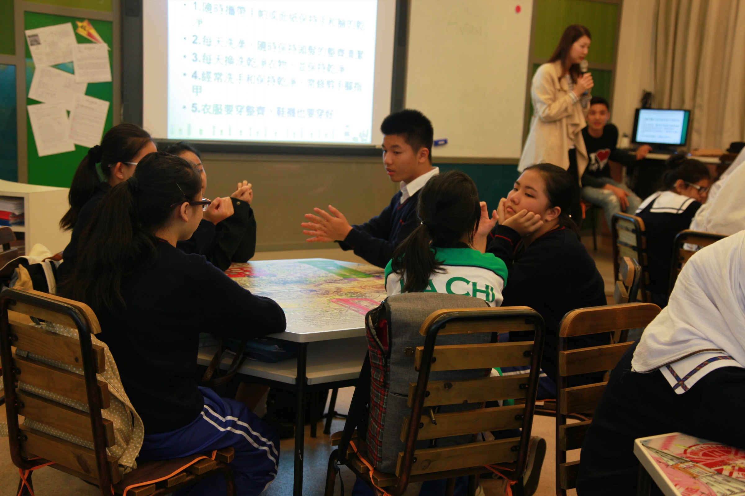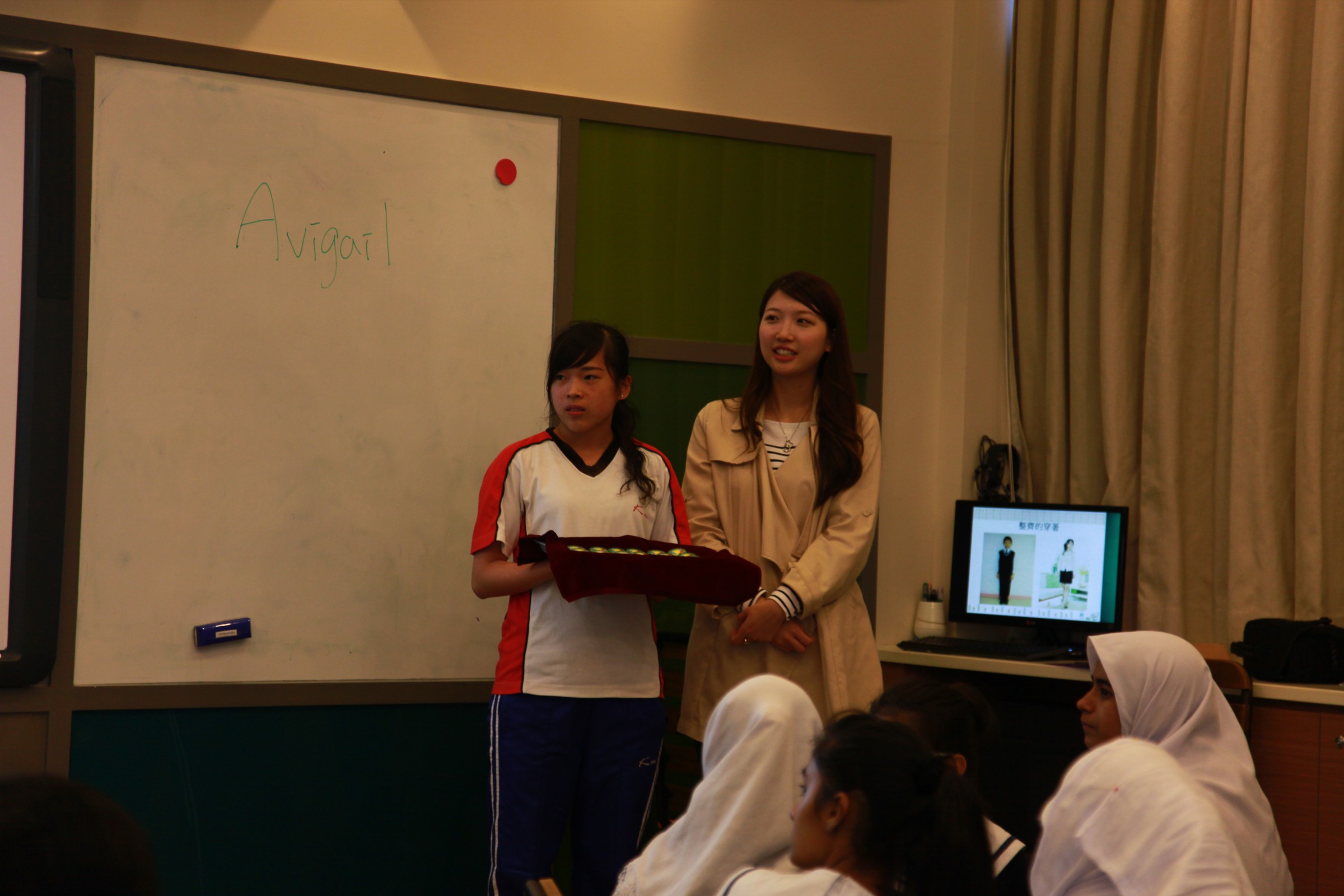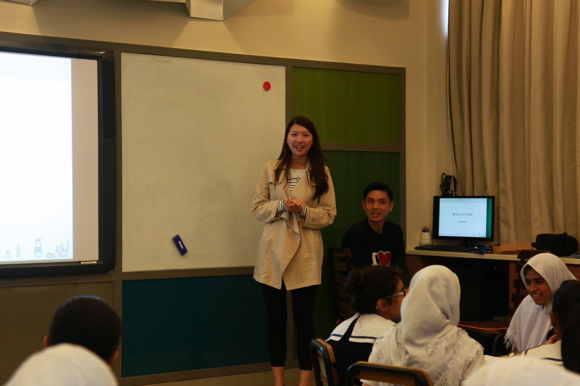 本校邀請王泳惠小姐於11月2日為學生大使進行服務接待培訓,培訓內容包括個人儀表、談吐、服務態度和應對技巧,課堂上導師即席示範,並邀請學生參與,同學們表現踴躍,課間氣氛熱烈。有25位同學委任成為學生大使,希望同學能夠成為學校和社區之間的親善大使,對外推廣學校。