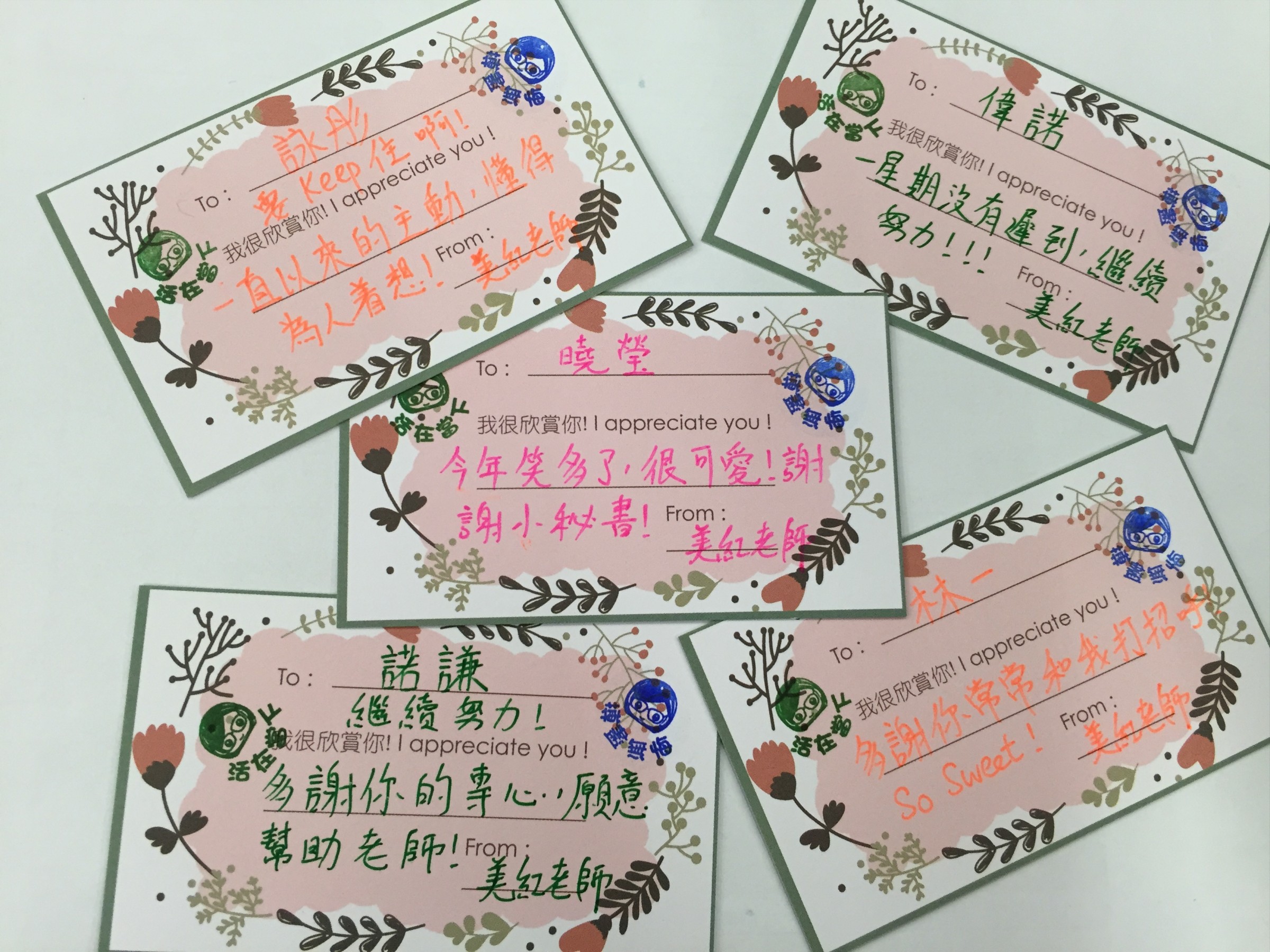 看見大家熱衷於寫卡給同學,看見大家收到卡時的興奮表情,看見大家熱切期待老師送卡的時刻,甚至有同學寫卡送給老師。這一切看在眼內,就是會感到興奮、窩心和感恩。