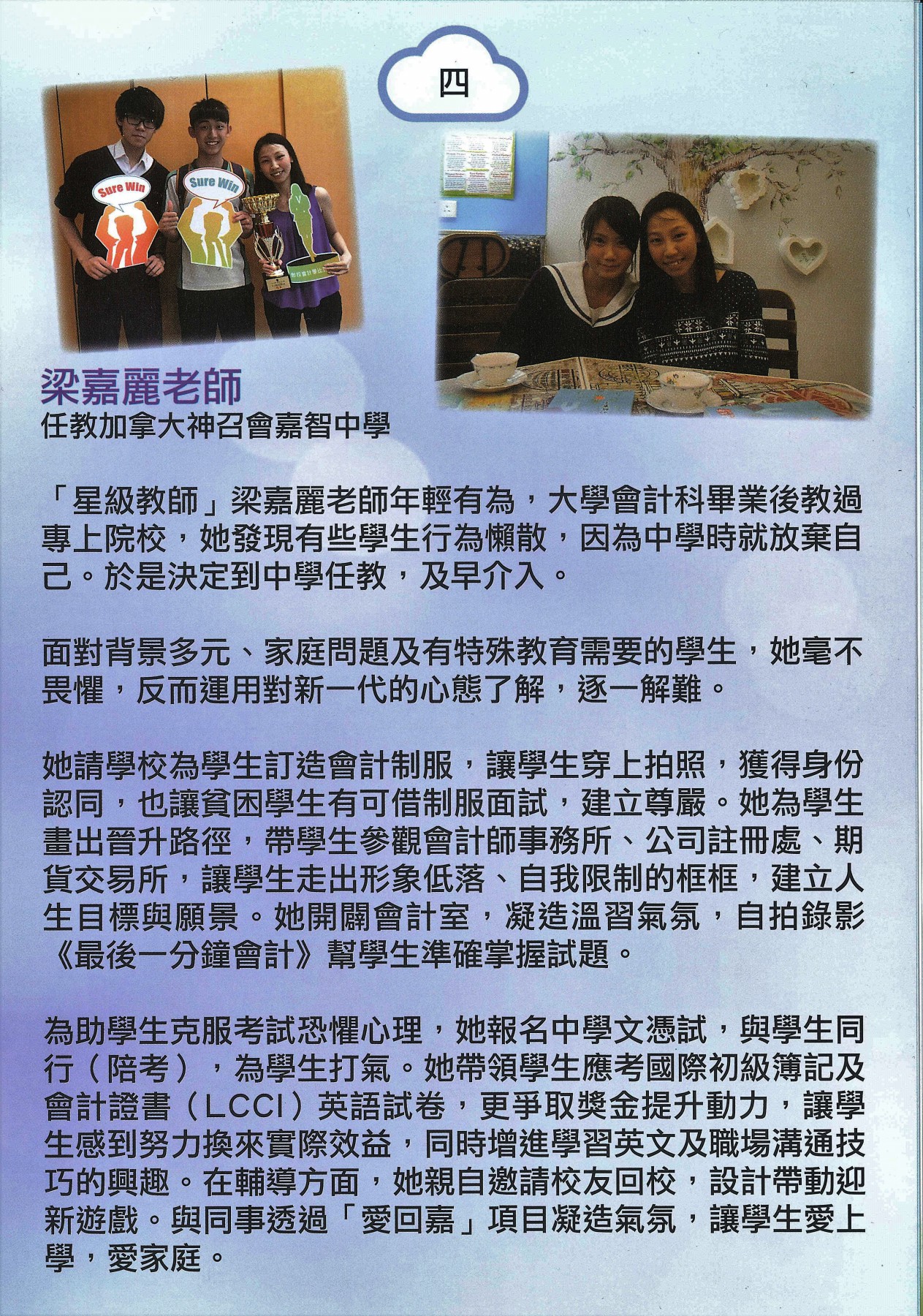 > 梁嘉麗老師獲司徒華教育基金「好老師表揚計劃」表揚獎