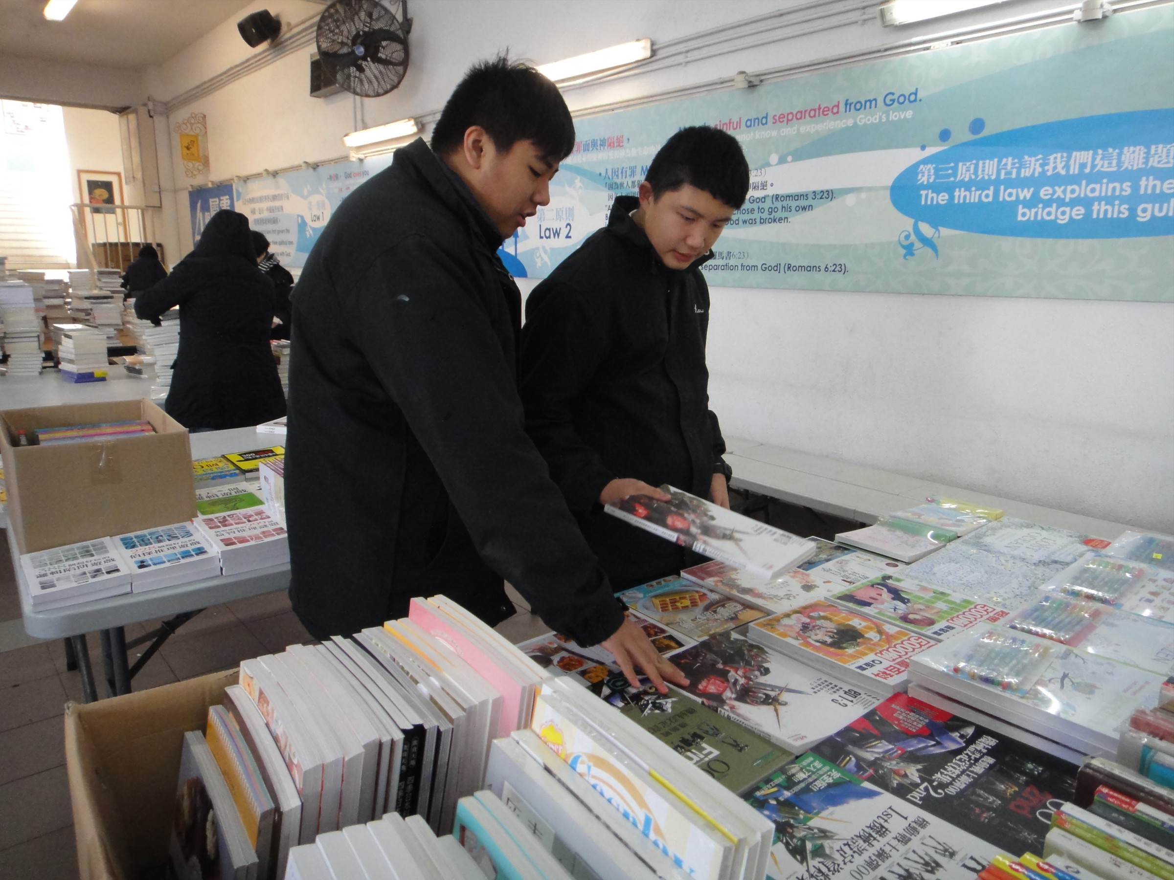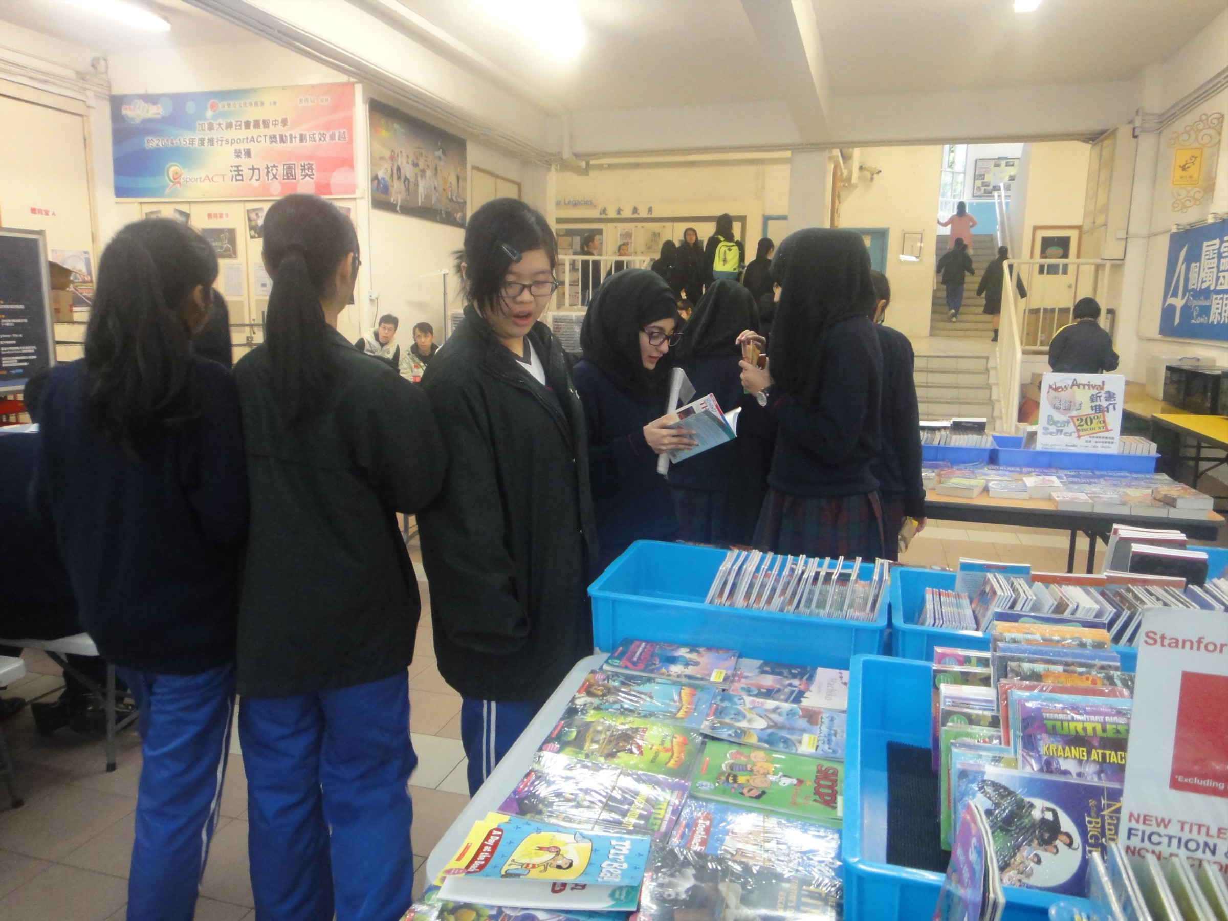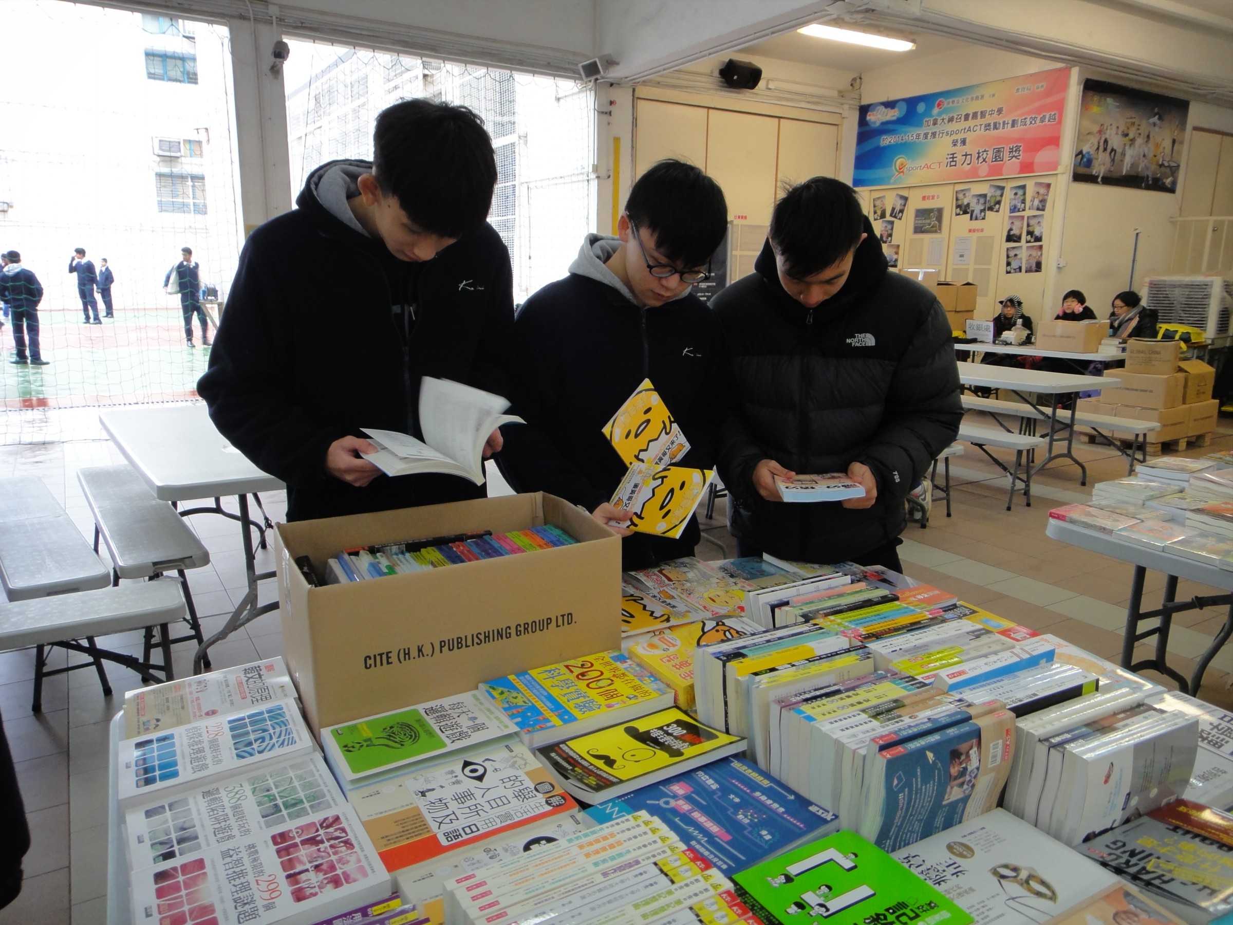 今次嘉智書展跟以往有點不同,中英文書展分開舉行,請了Stanford House舉行了一天英文書展,另外三天為中文書展,邀請了城邦(香港)出版集團有限公司到學校展覽,多人圍觀的必然是10元書攤,許多都是有質素的圖書,非常超值!專賣公開試參考書的導師出版社更特別安排一天到校展覽最新參考書,今次雖然遇著寒流襲港,許多喜歡閱讀的同學仍趁今次千載難逢的機會,爭相向老師索取書券買書!