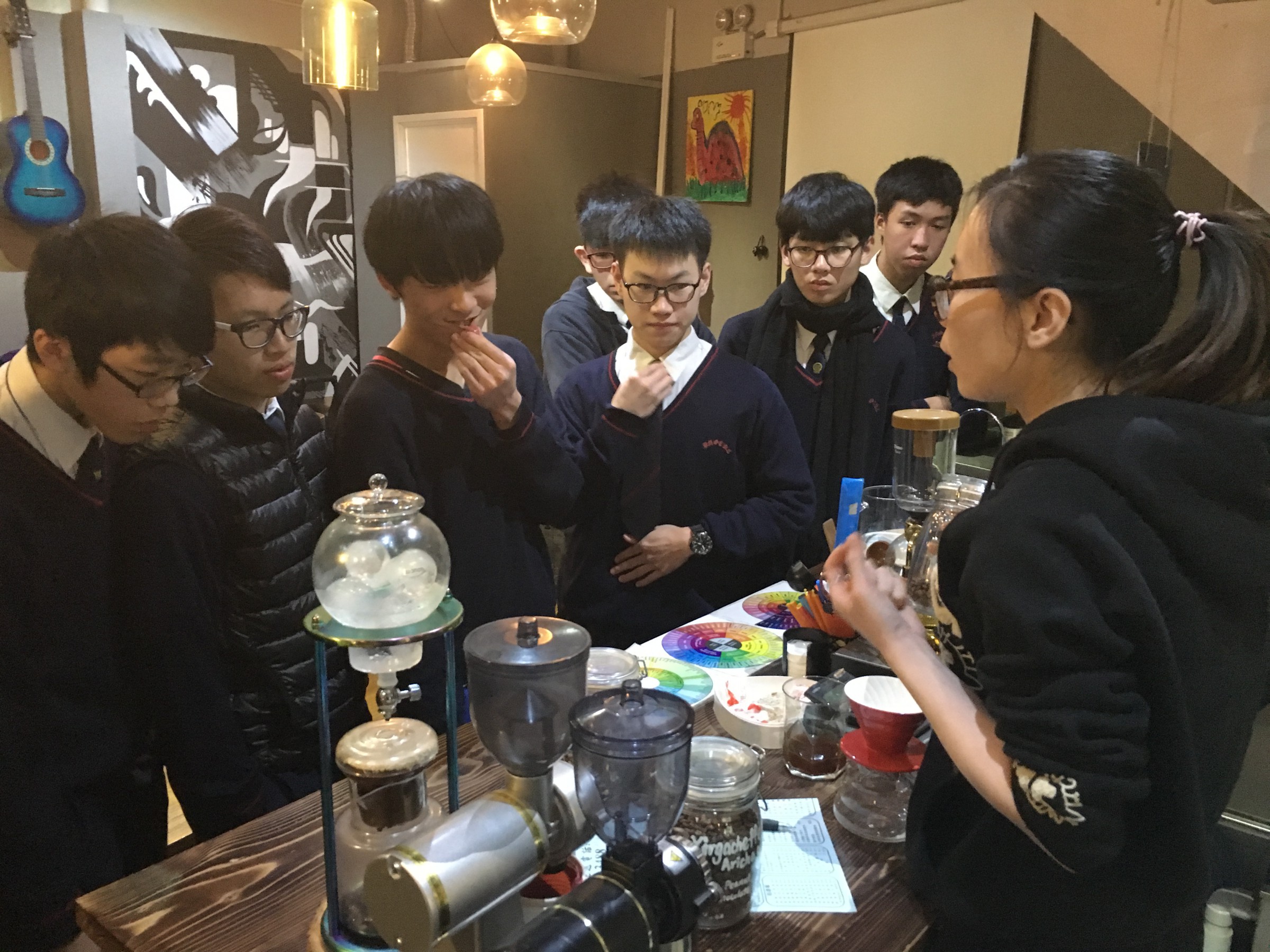 為了擴闊同學對各行業的認識,本校與女青年會蝴蝶灣綜合社會服務處合作,安排一系列生涯規劃的活動。本次課堂有5信班第二組「Teen才學堂」的同學到屯門虹橋Miss Coffee 參觀,當日咖啡店負責人分享她在由學習咖啡的知識、沖調、至實踐自己開咖啡店的夢想當中過程和遇到的困難,並鼓勵同學追尋自己的夢想。其後負責人教導同學介紹沖調咖啡的設備,亦品嚐各式咖啡4,同學親身嘗試咖啡拉花、咖啡上畫花。