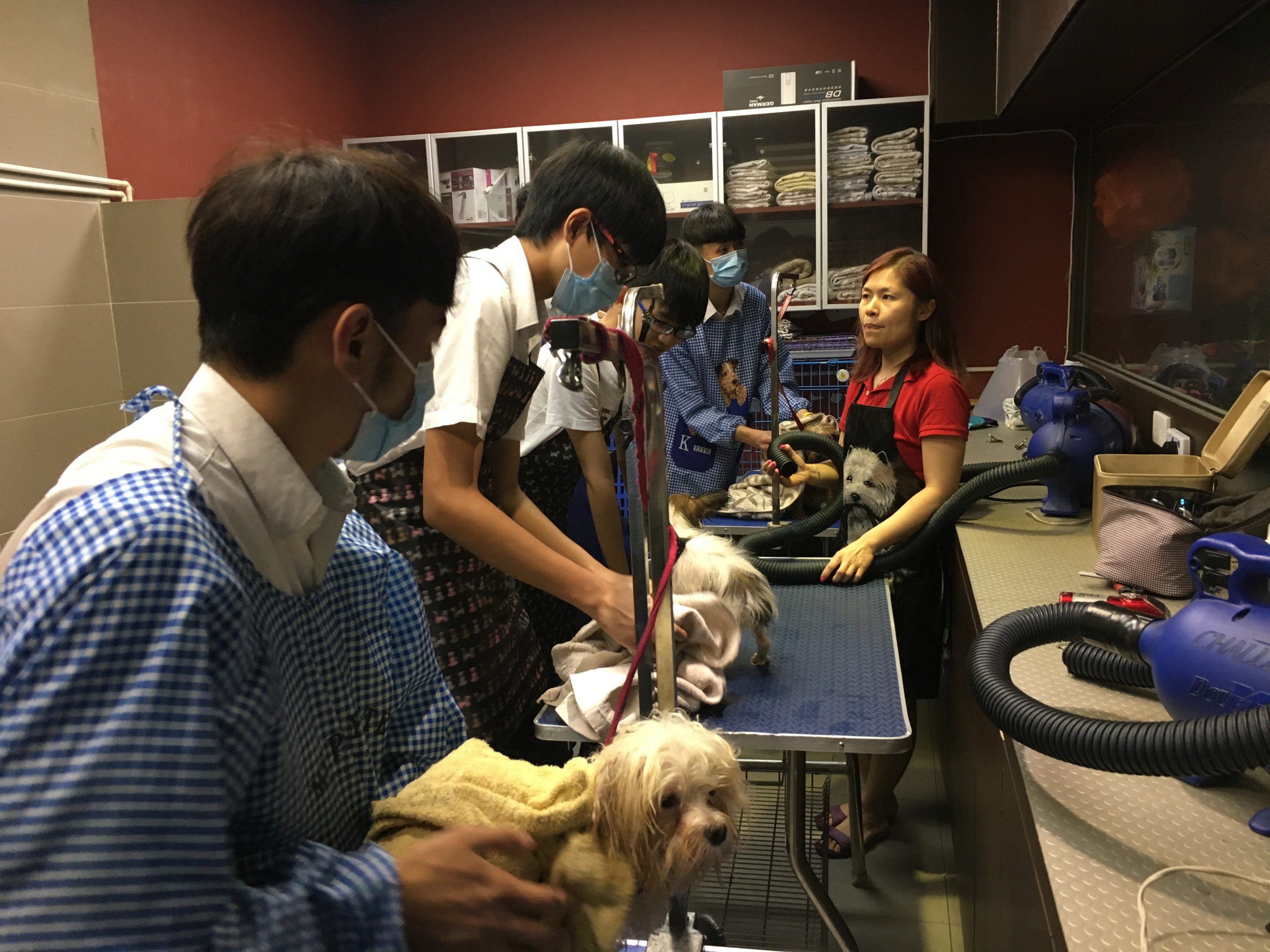 為使同學對將來就業有更多的認識,透過職業訓練,加深對自己未來的人生規劃 ; 本校特與救世軍合作,有中四級6位同學參加了「振翅高飛」計劃,本次安排同學參加一連兩節寵物美容課程。同學能與各類狗隻接觸外,導師在試範寵物美容技巧後,同學可親身替寵物完成整個寵物美容的工序,同學們都了解到寵物美容行業的工作前景和需具備的素質。