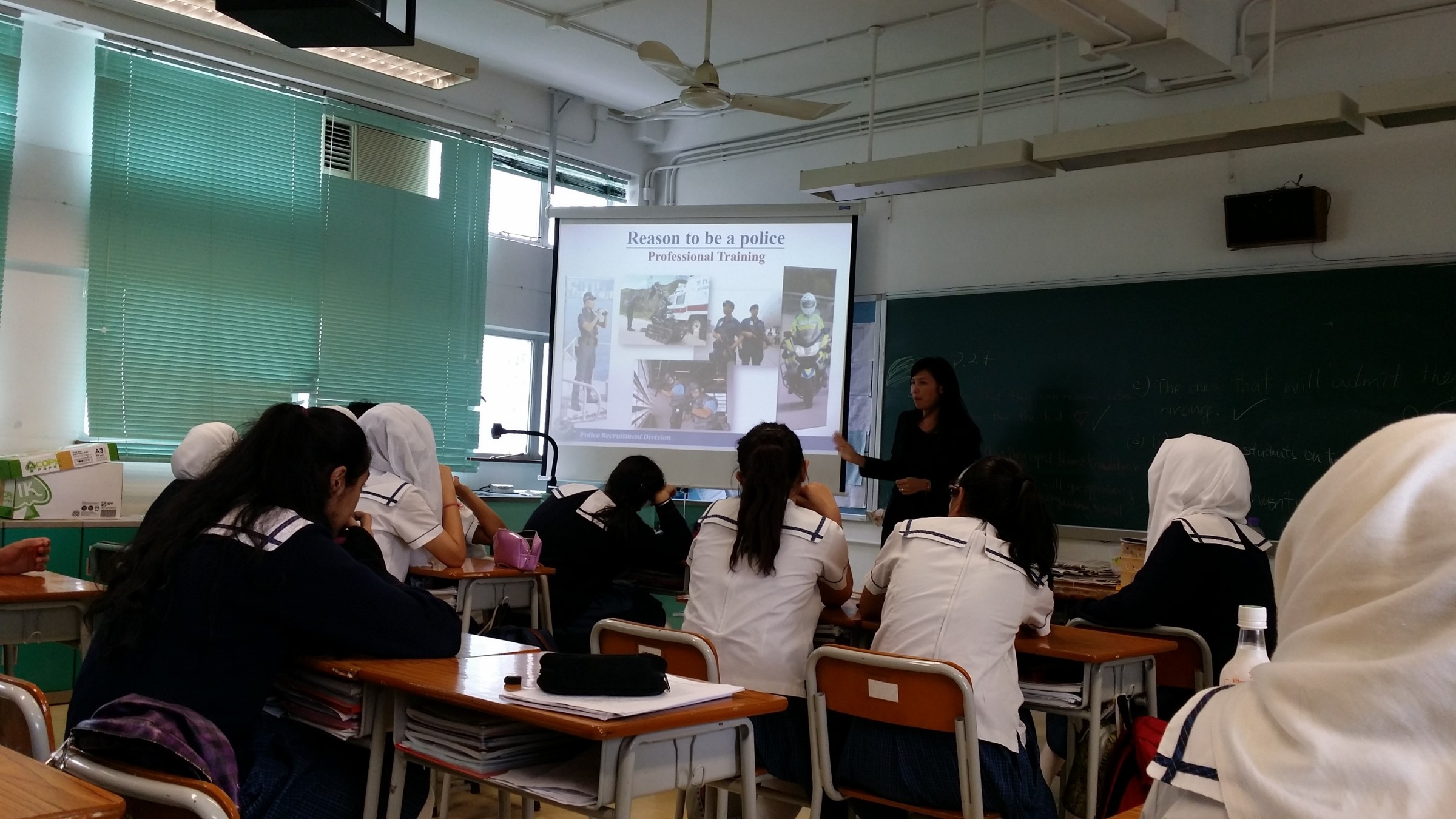本校為支援少數族裔非華語同學,讓他們擴濶視野,多接觸社會生活實況,故此訓導組舉辦講座,在5月17日邀請了警務署人員及其非華語同事,向中五級非華語同學介紹有關政府職位工作情況及報考資格,而特別講解警隊工作,當中更透露每年也有成功招聘非華語男士及女士,最後由老志堅訓導主任致送紀念旗作道謝。這次活動令非華語同學明白紀律部隊是一項具挑戰性及前景光明的工作,是值得考慮投身的一項終身事業。