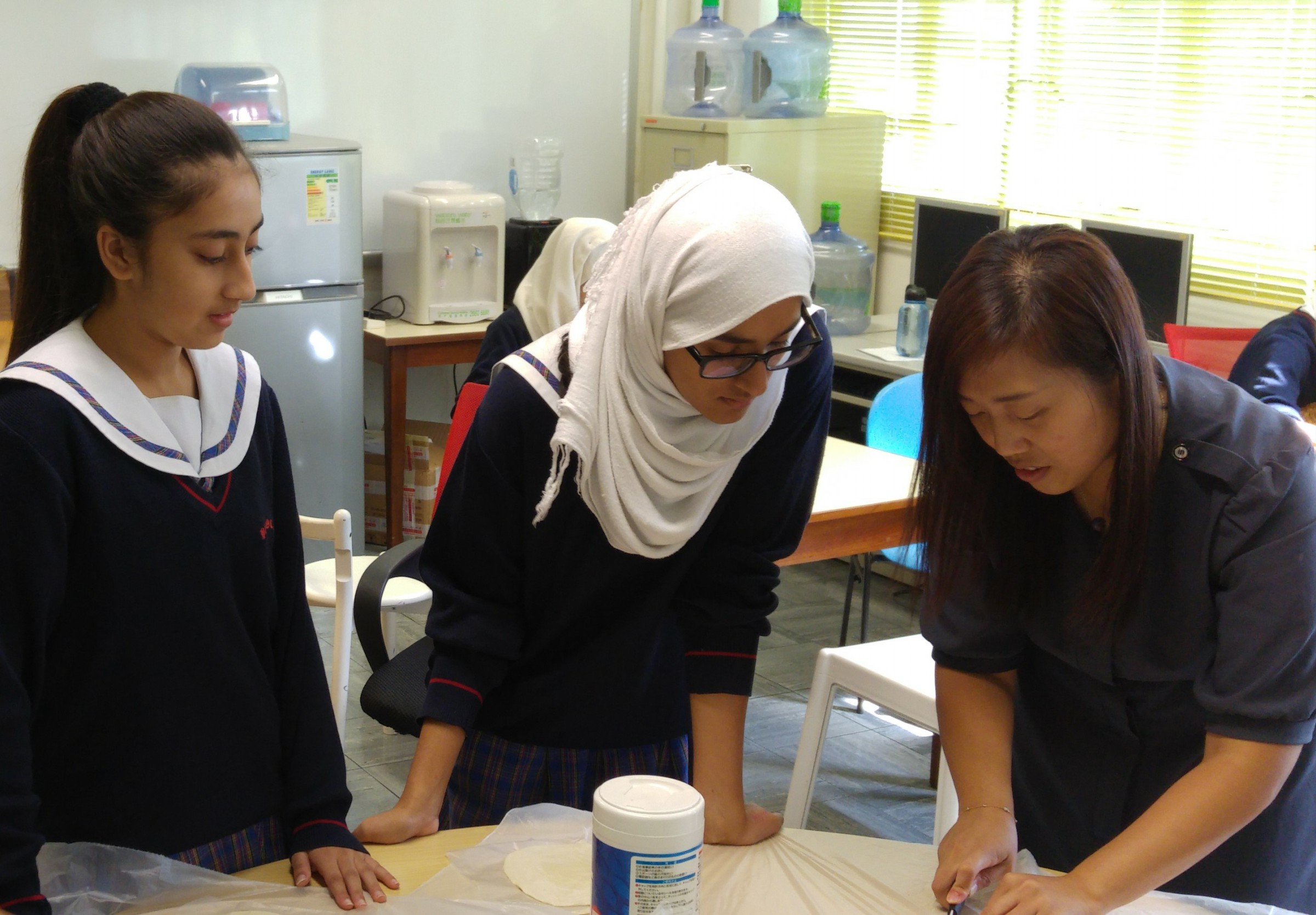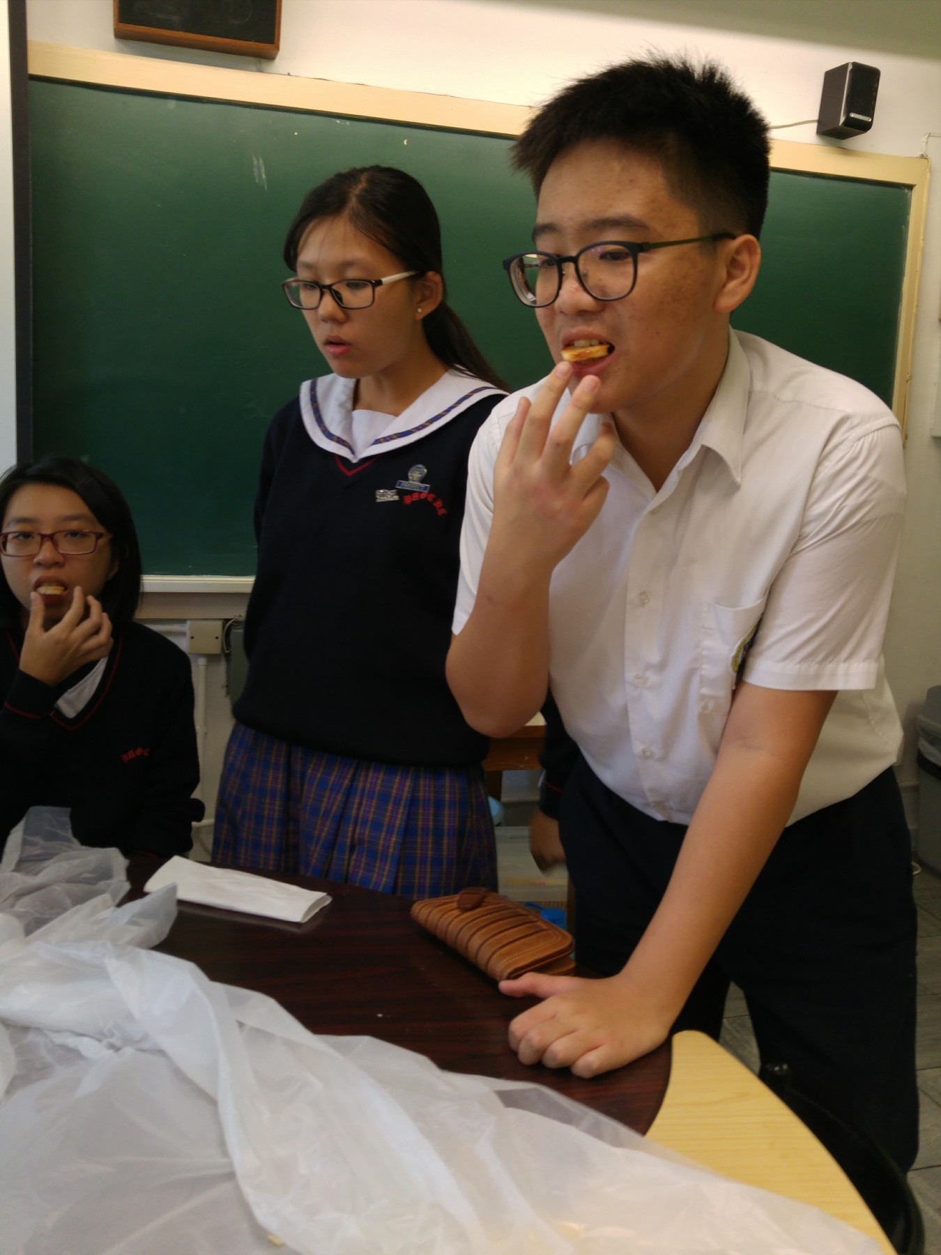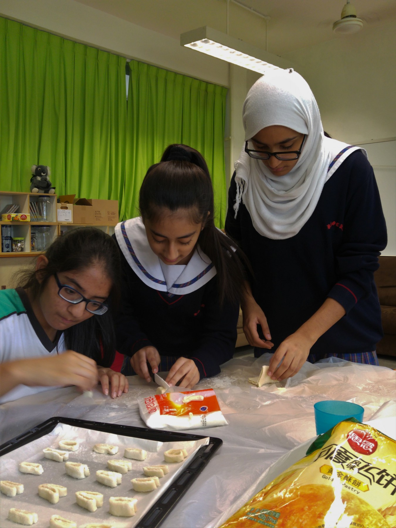 是日午間活動,社工與同學一同製作蝴蝶酥。過程中,同學細心觀察,動手一步一步完成。製成品出爐,同學更即時和朋友及老師一同分享。