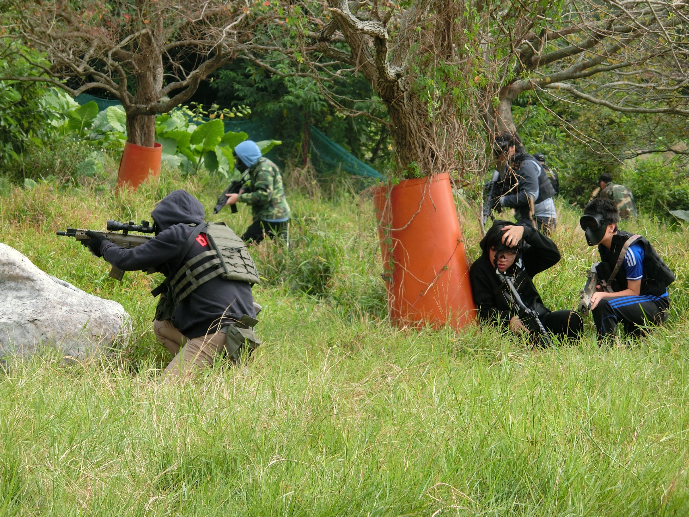 War Game導師班的同學在聖誕假期間帶領一班新學員來到元朗一個戶外War Game場地進行實戰訓練。開始前同學經已十分興奮和緊張,因為戶外場地比室內場地更具挑戰,面對草地、泥地和空曠的戰場,導師班的「師兄」帶領一眾「師弟」運用CQB的射擊技巧,例如掩護射擊、火力壓制等應付不同的挑戰,而同學之間亦需要彼此合作和配合才能克服難關,完成訓練。