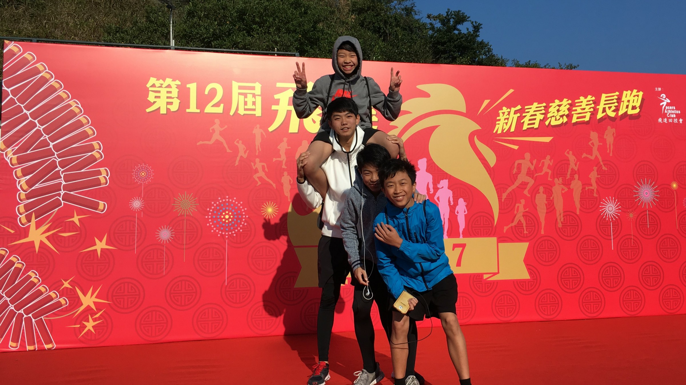 今年新春慈善跑假山頂芬梨道舉行,當中以山路為主,上坡下斜較多。輔導組黃敬嚴老師帶領三信班翁梓淳同學及余晞和同學參加了7.5公里的賽事;而二信班李梓揚同學、池梓鏘、梁進賢同學則參加4公里項目,當日有近千選手參加,一眾同學翹首以待,全力完成賽事。寒冷的氣溫,陡斜的陂道,都是對同學們的考驗,雖然衝線一刻,上氣不接下氣,但仍難掩那份堅毅的神情。