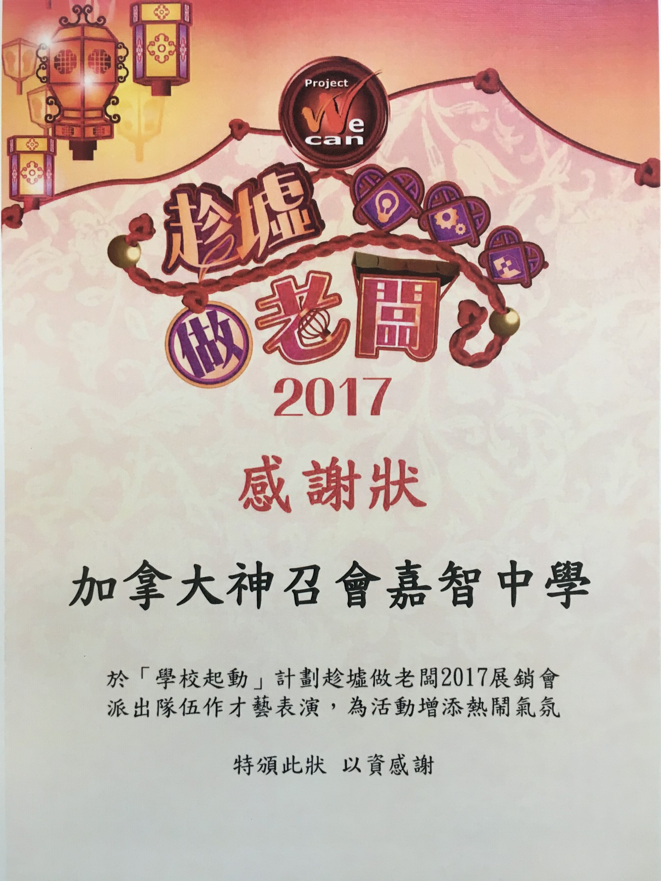 Project We Can學校起動計劃的聯校「趁墟做老闆」展銷會活動,一連三日由10/2至12/2假荷里活廣場舉行。本校跳繩隊與兩間友校合作表演花式跳繩,於開幕禮作啟動儀式表演;而展銷會期間本校亦派出舞蹈隊作現場表演,讓遊人欣賞。