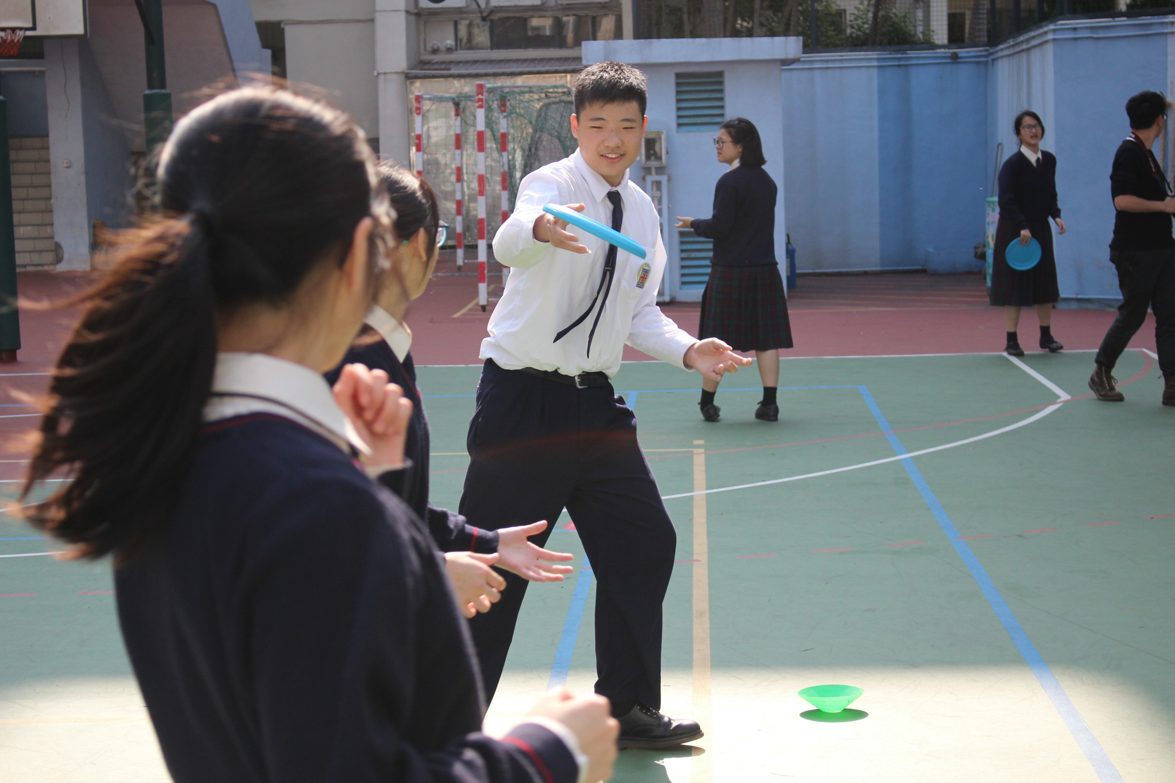 On 28 February, all our form four students joined the Frisbee training session conducted by two native English coaches. In the session, our students felt the vitality and passion of the two coaches in playing Frisbee. Doing the warm-up exercise together, our students were given a useful talk about the basic skills of playing Frisbee. Trying out tossing a Frisbee disc gave our students a taste of the best element of Frisbee. The experience they gained even opened their eyes when they learnt to get a game going. Their Frisbee skills improved under the coaches’ guidance by listening to the English instructions given. About morality, the coaches showed our students the importance of team spirit and respect in a game. This session was such a valuable life lesson for all the student participants.