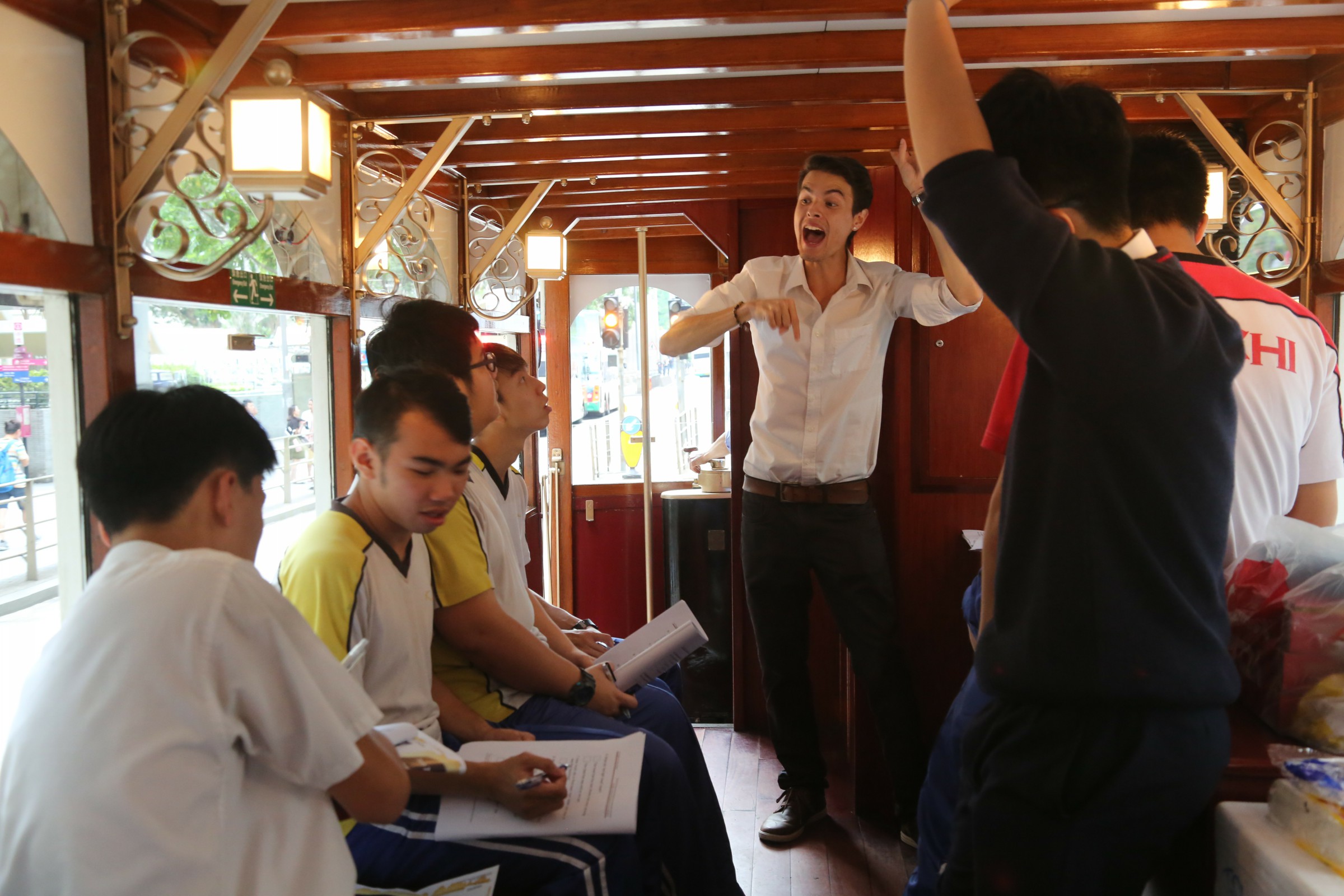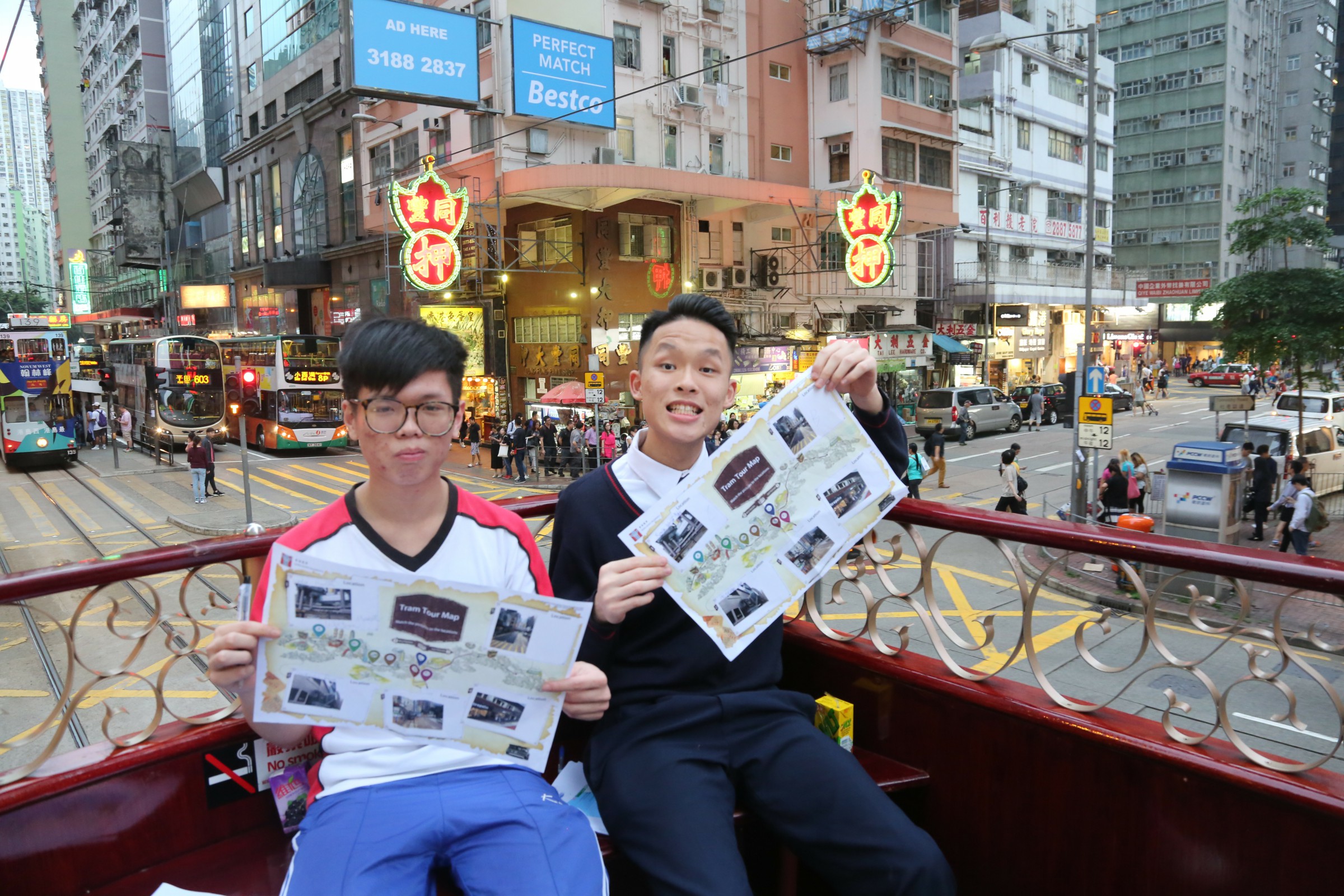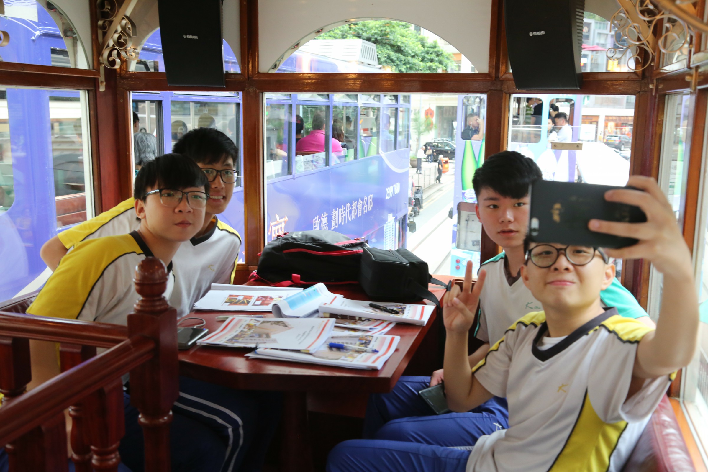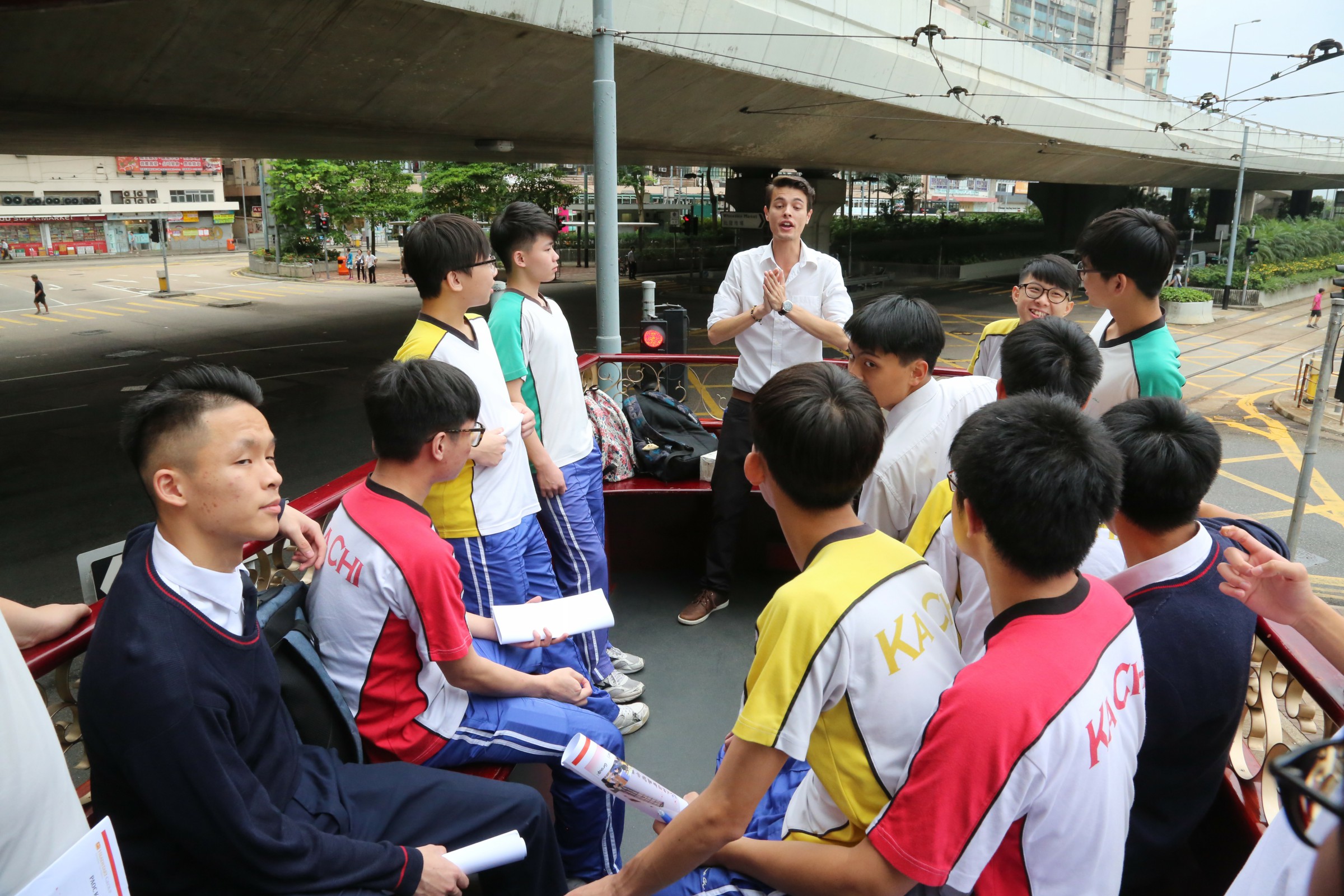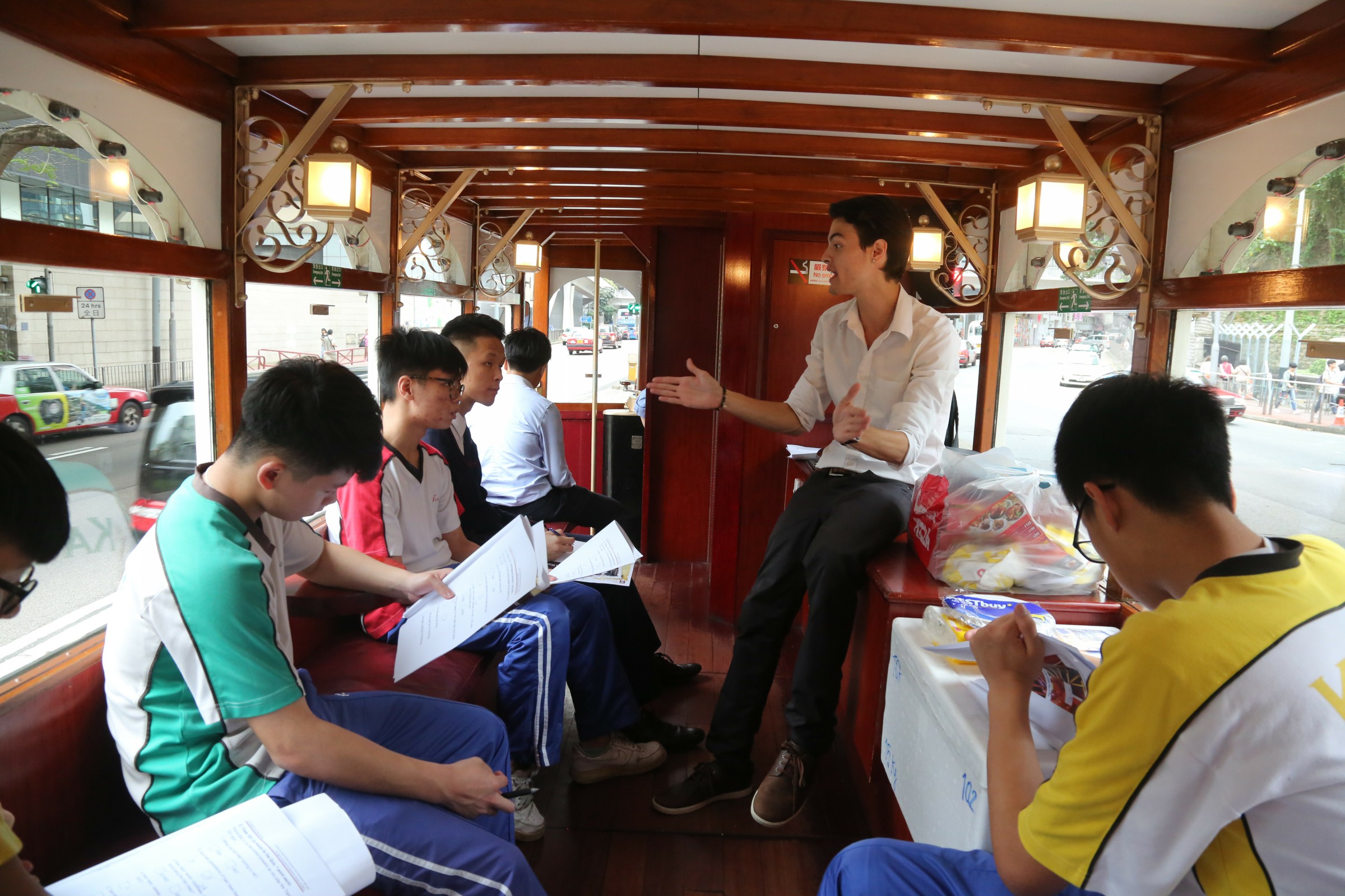 On 19 May, a big group of form 5 students hopped onto a unique 1920s style open-top tram to explore Hong Kong Island between day and night in an action-oriented English tour. The native English teacher in the tour allowed our student participants to savour the impressive street views and at the same time, to know the authentic local tales in English. Students were also asked to join a competition in which they needed to complete a few different tasks to check out the parts of the tram, the tram stations, landmarks as well as the history along the tram route. The journey in this heritage tram is well-organized between historical storytelling and amazing sightseeing of Hong Kong Island. Students found it rewarding to learn the English vocabulary and take the amazing photos.