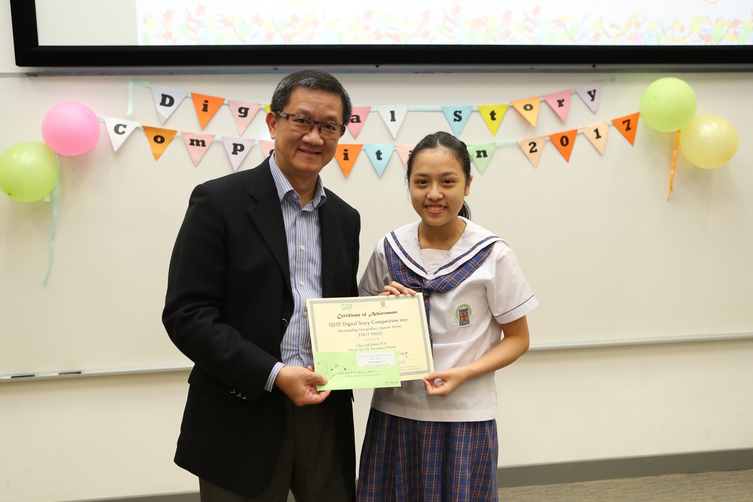 2H Choi Lok Kwan has won the first prize of the Outstanding Storyteller (Junior) in Digital Story Competition. Students attended the prize ceremony and joined the prize-winning stories appreciation workshop. It was a treasurable chance for students to better their language skills and, at the same time, mingle with students from other schools through language games!