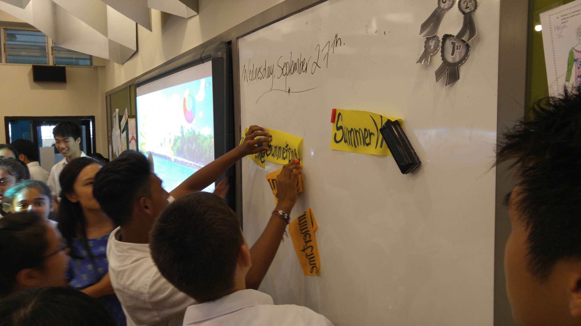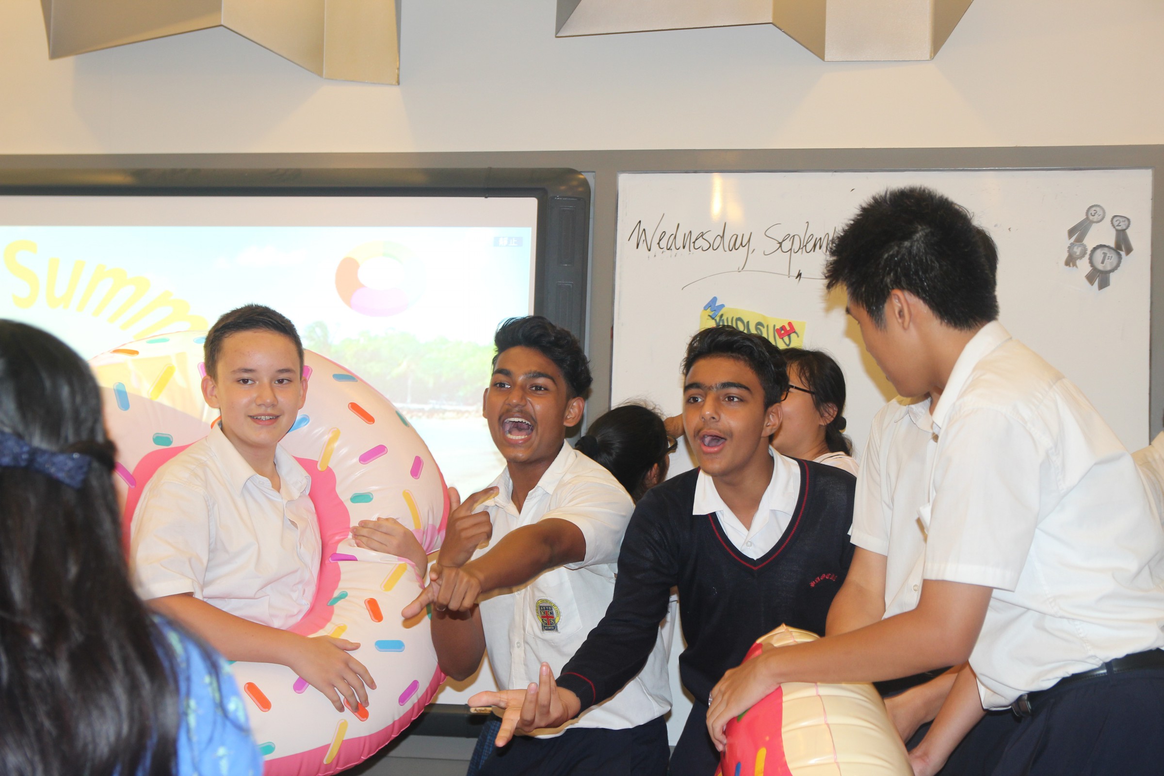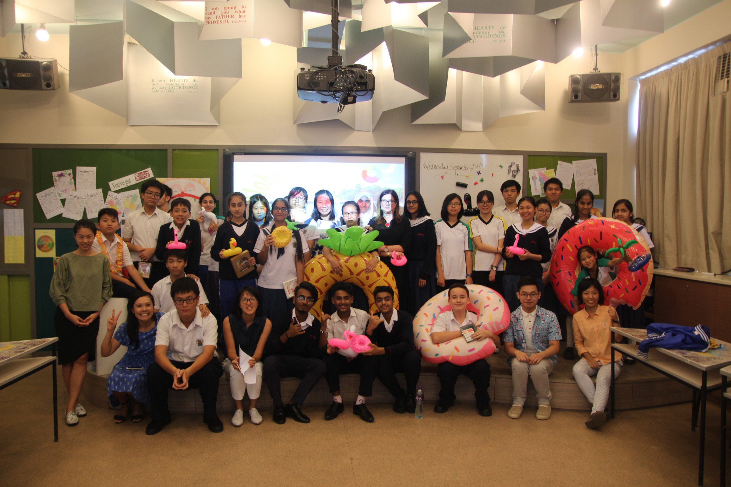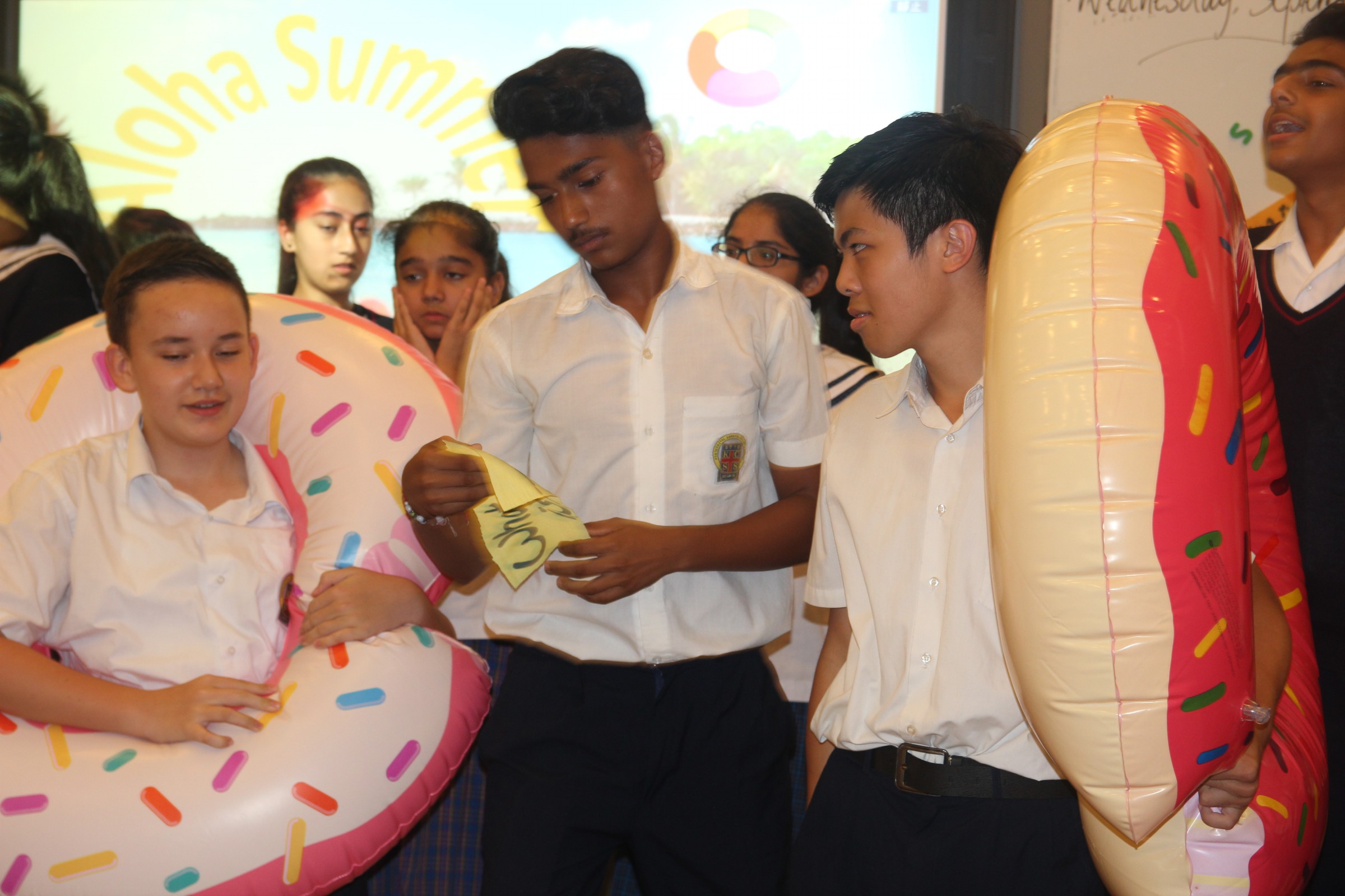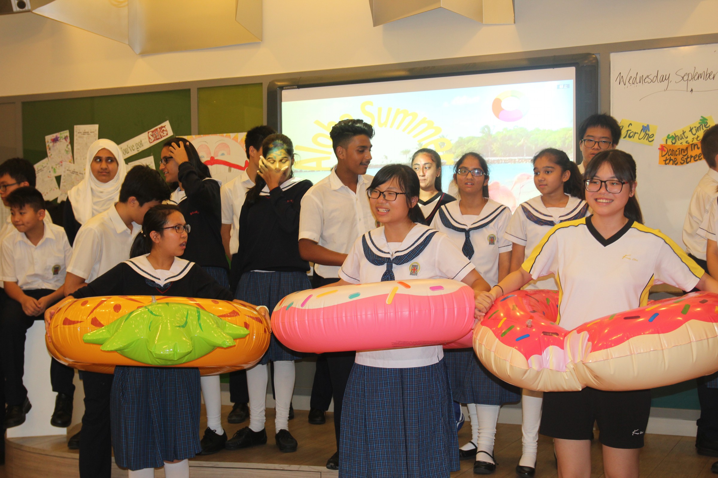 We kicked off our lunchtime English activity series with the theme ‘Aloha Summer’. By it, we mean we have been having a summer with love, compassion and mercy. To celebrate this, we prepared some summer songs for students to guess the songs’ names. They were so excited for our Aloha Summer.