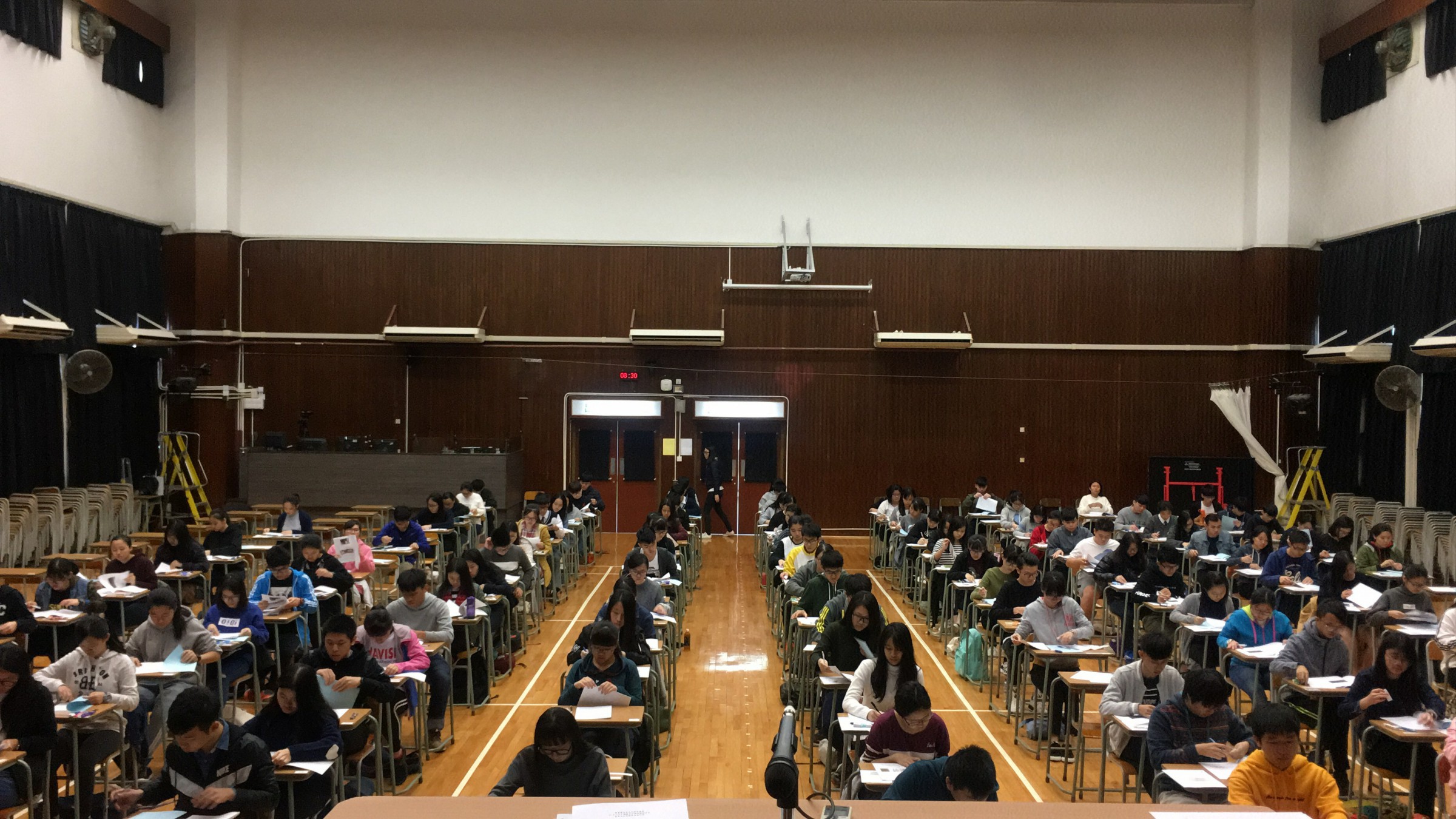 又本年度十二月二日中國歷史科聯校模擬試全港共十二個試場(分別在小西灣、筲箕灣、調景嶺、秀茂坪、九龍灣、何文 田、葵涌、屯門、天水圍、粉嶺、大埔、沙田),本校亦借出禮堂作為試場之一,參與考生接近二千人。