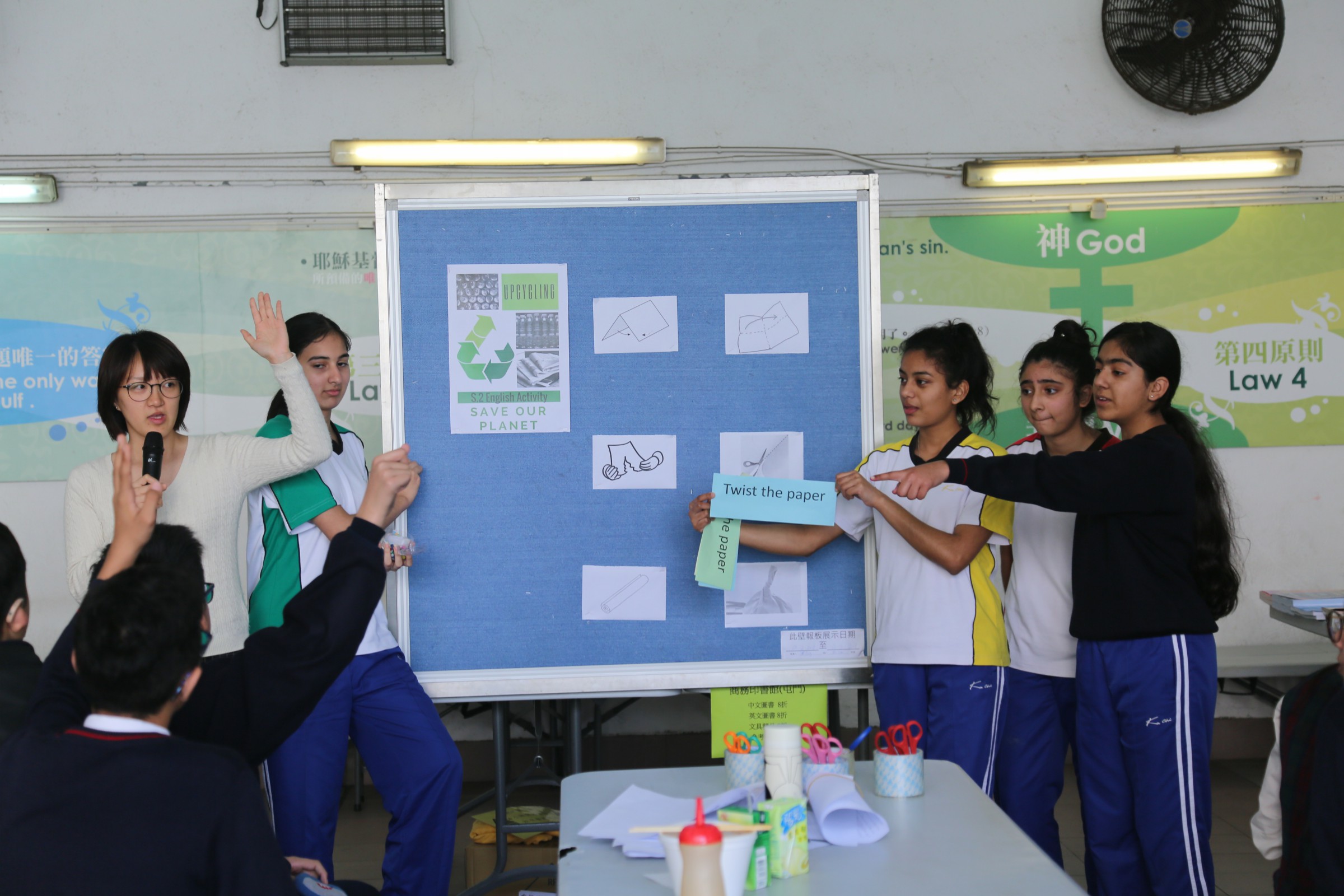 Having the topic ‘Upcycling’ in the lunchtime activity on 28 February in 2018 was the highlight for our form 2 students. It is also viewed as an extension of our form 2 English curriculum as they have been learning the concept of upcycling, a way to make useful things like new furniture or objects out of old and unwanted material, in the unit Saving Our Planet. This unique experience challenged our students’ thinking and gave them an amazing memory in learning English.
