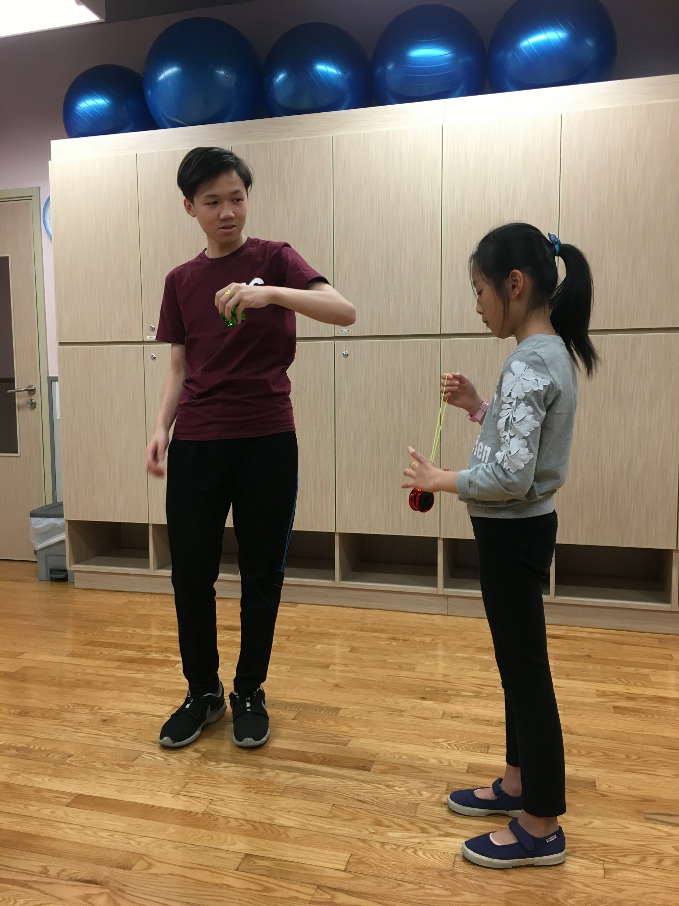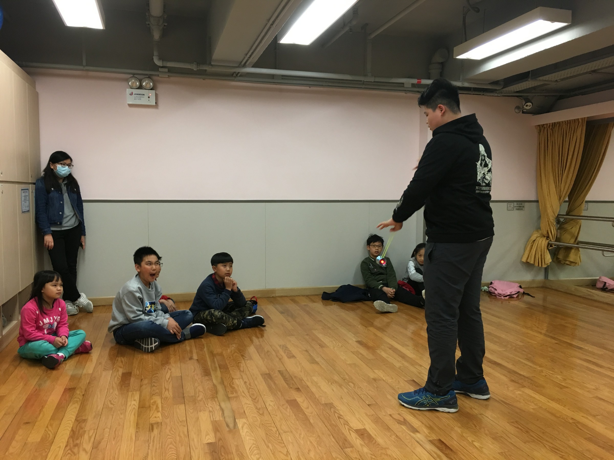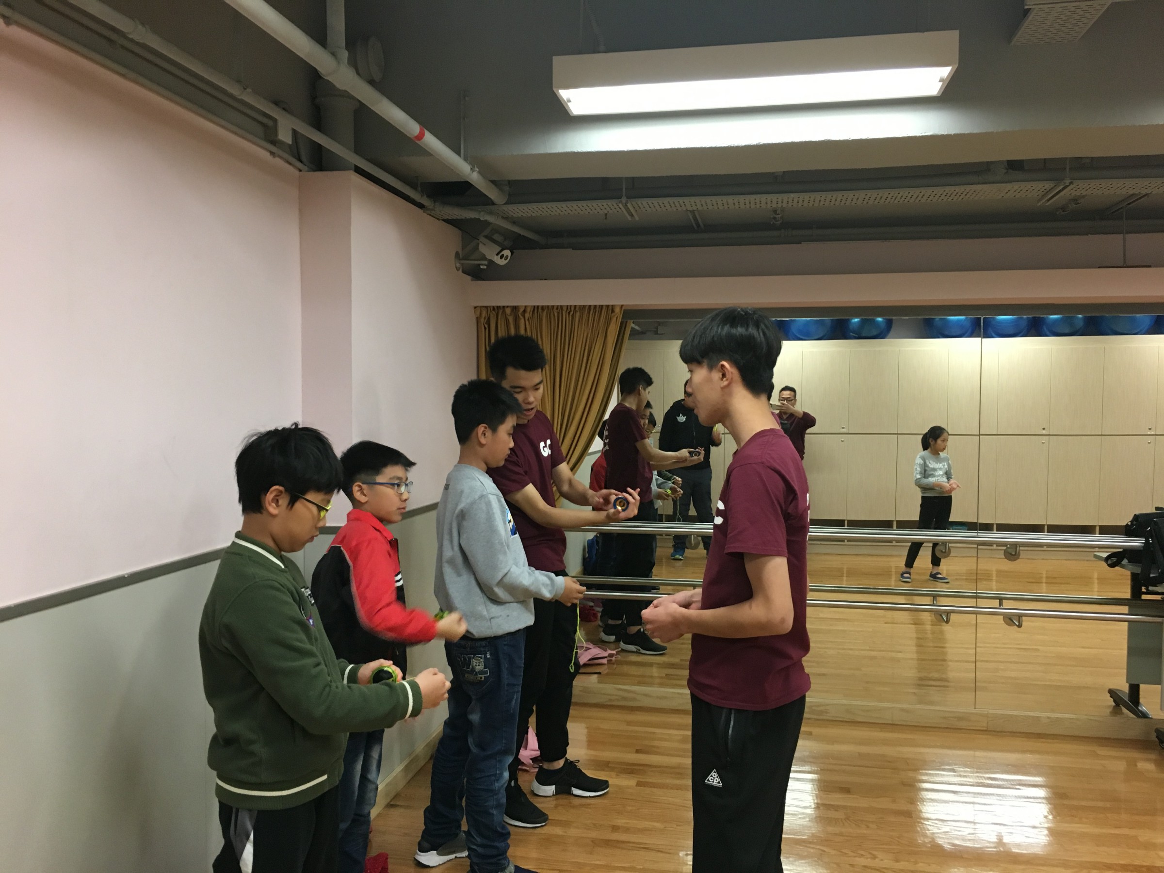 到達中心便立刻分配崗位,同學們也很快便與小朋友打成一片,他們很耐心的教導小朋友,就如大哥哥般與弟妹相處,顯得駕輕就熟,揮灑自如,小朋友也專心練習著。是次活動讓一眾搖搖隊的成員發揮所長,回饋社區,透過教學相長,認識自己,建立自信。