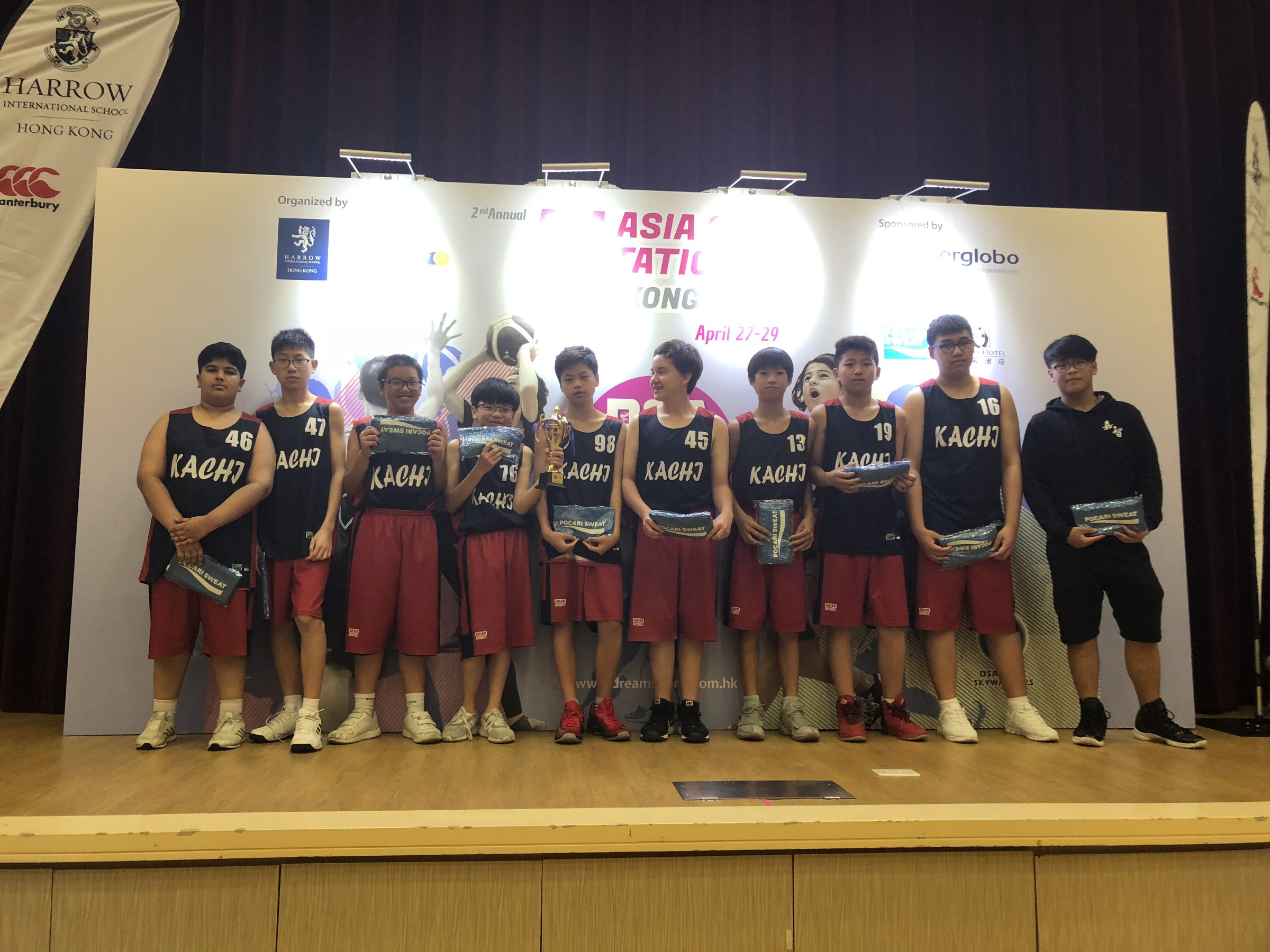 中一、中二籃球隊隊員,一連3日參加了夢幻教室(dreamsports)舉辦的DSA Asia cup Invitational籃球交流,學生在這3日活動中,與哈羅國際學校(Harrow International School Hong Kong)的學生同場比拼,切磋球技,交流籃球心得。