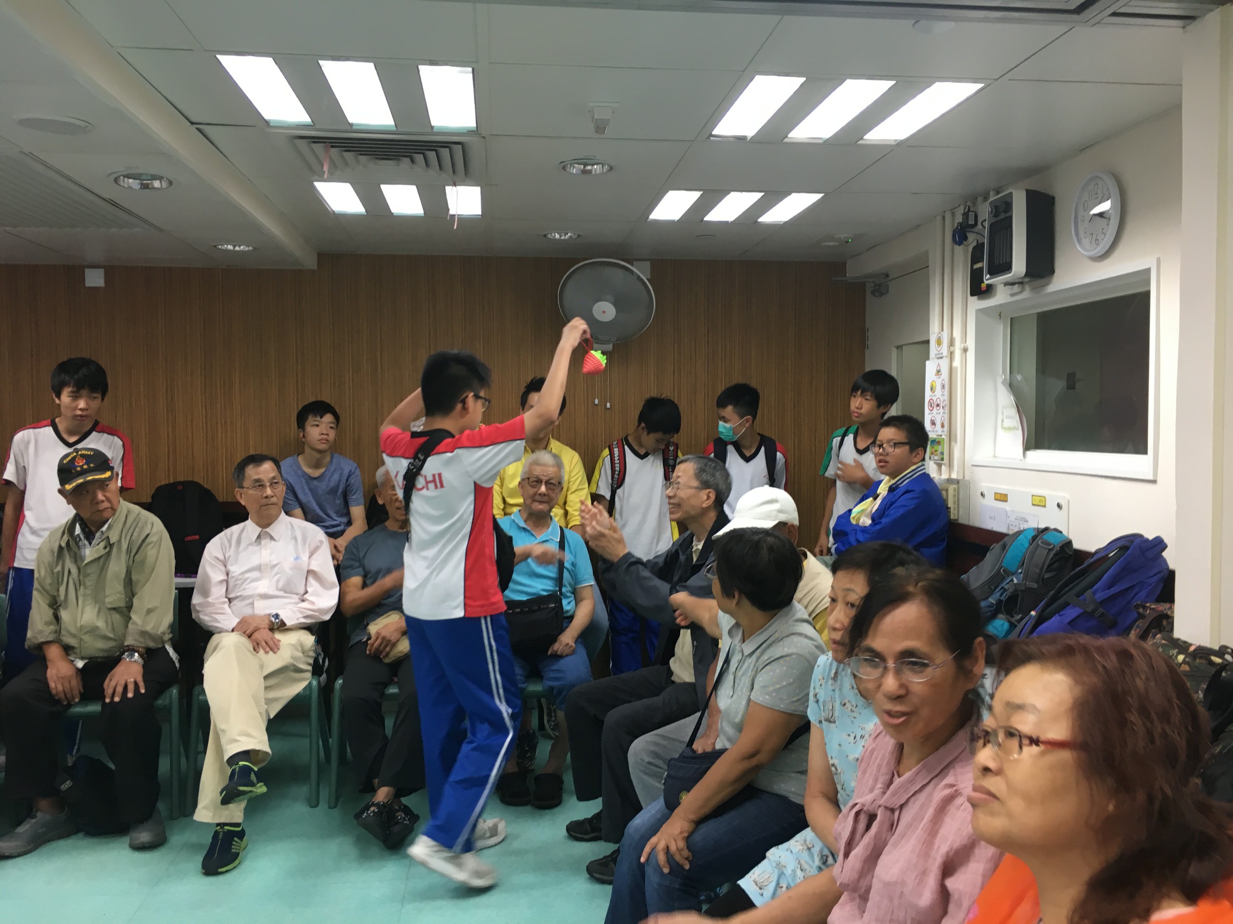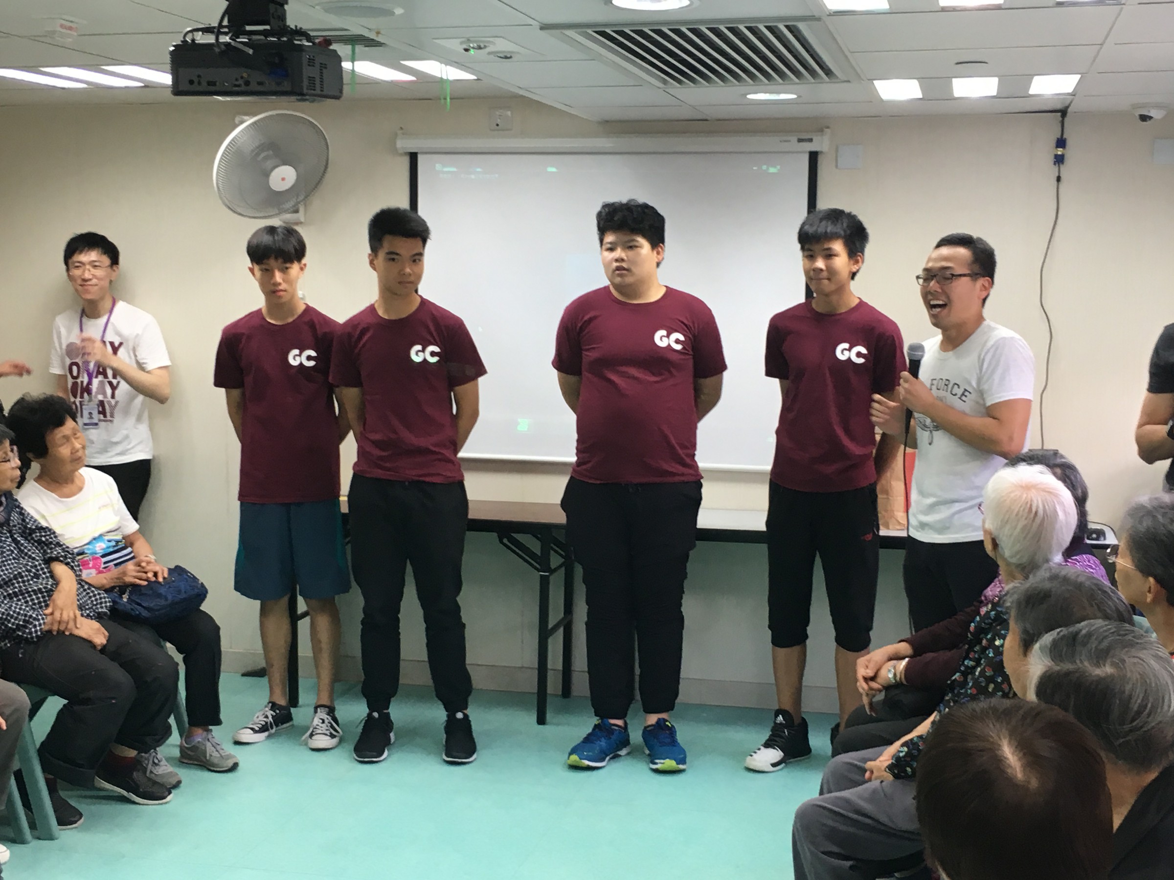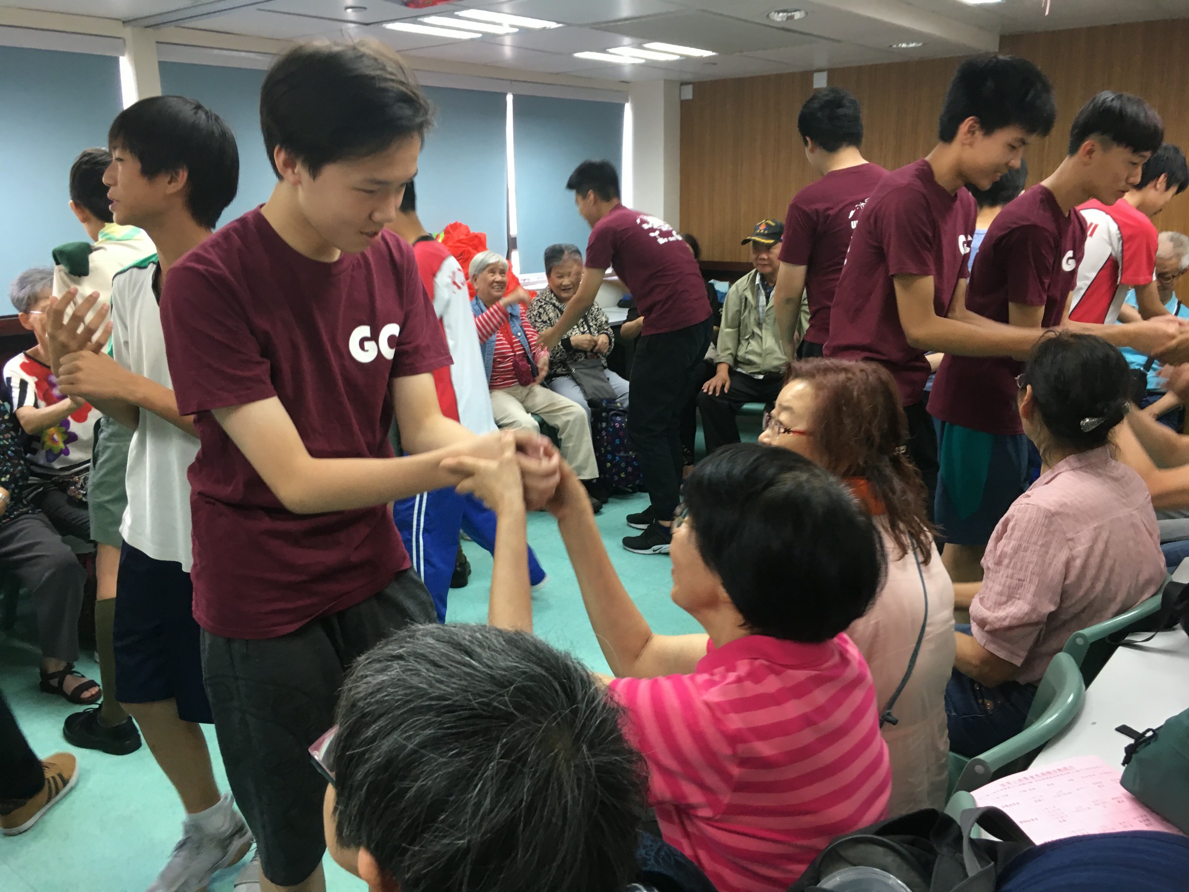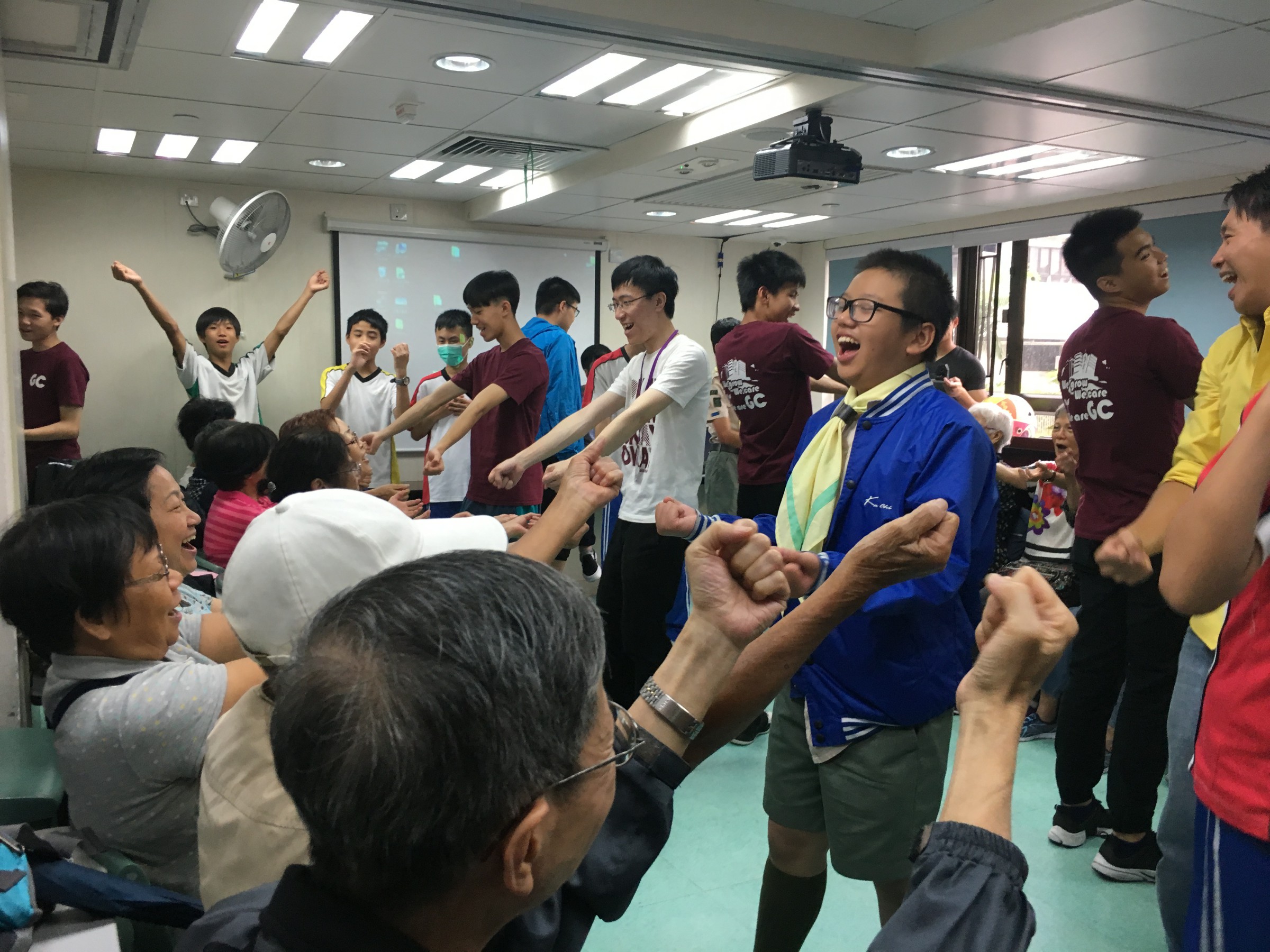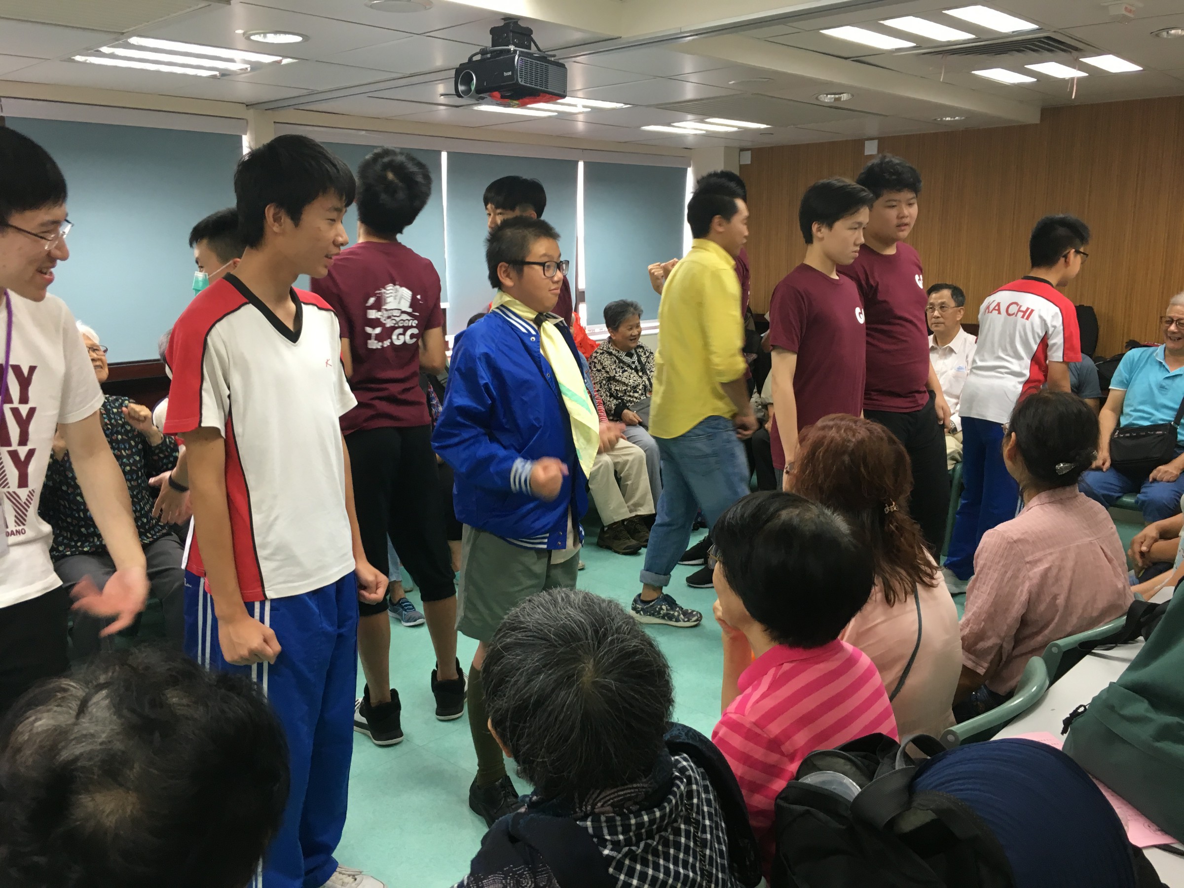 同學按原定流程教授「大笑瑜珈」,部份同學第一次做義工服務,難免腼腆,但難得他們仍保持笑容,很快就興一眾長者打成一片。及後一同玩遊戲,派小禮物,又與他們談天,從長者的笑容中可看到他們感受到關懷和溫暖。