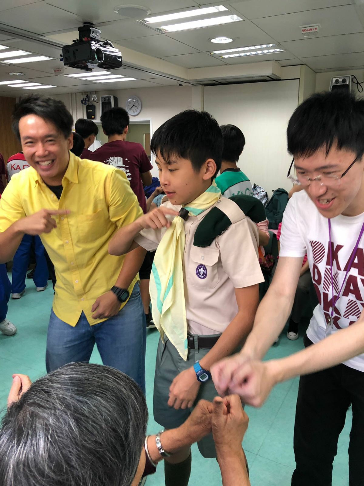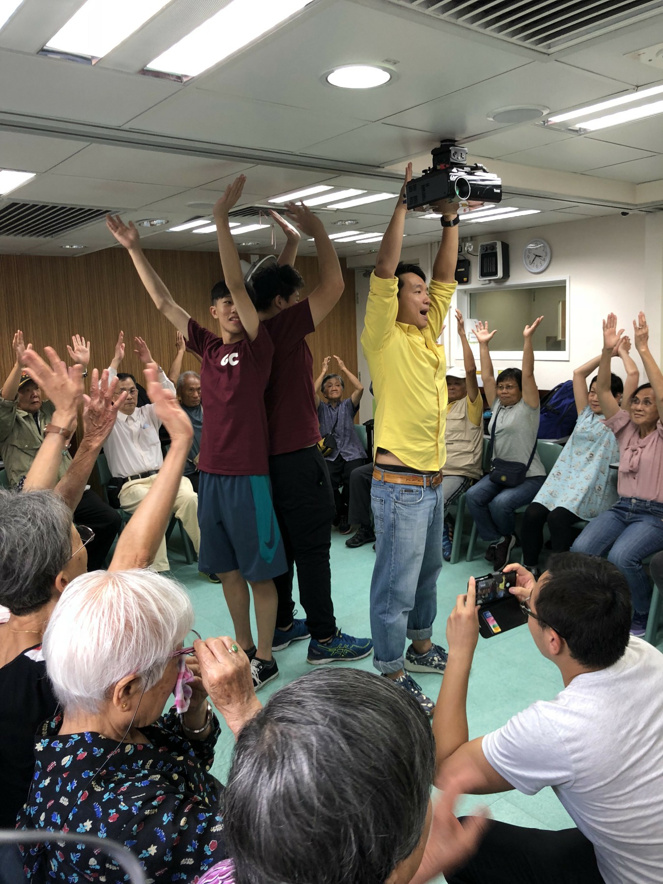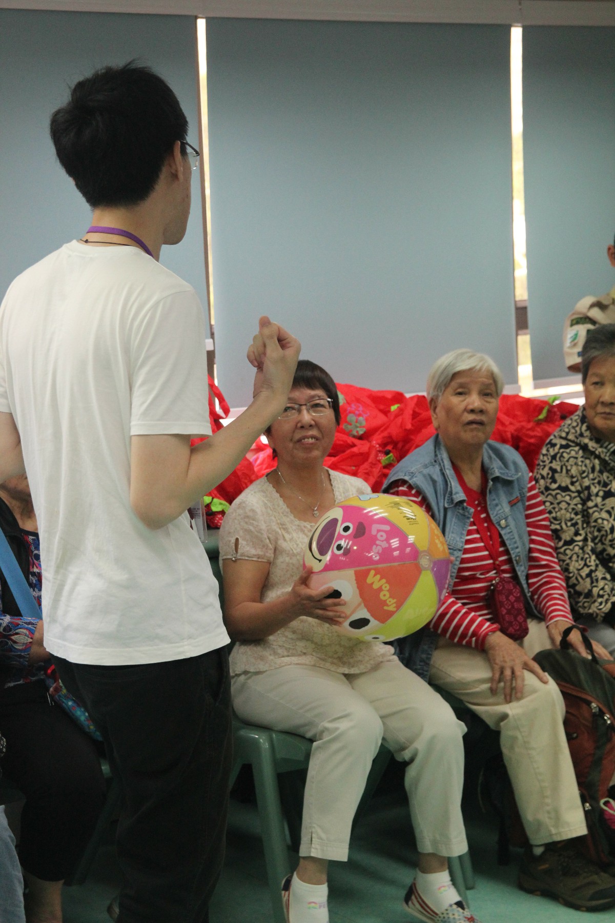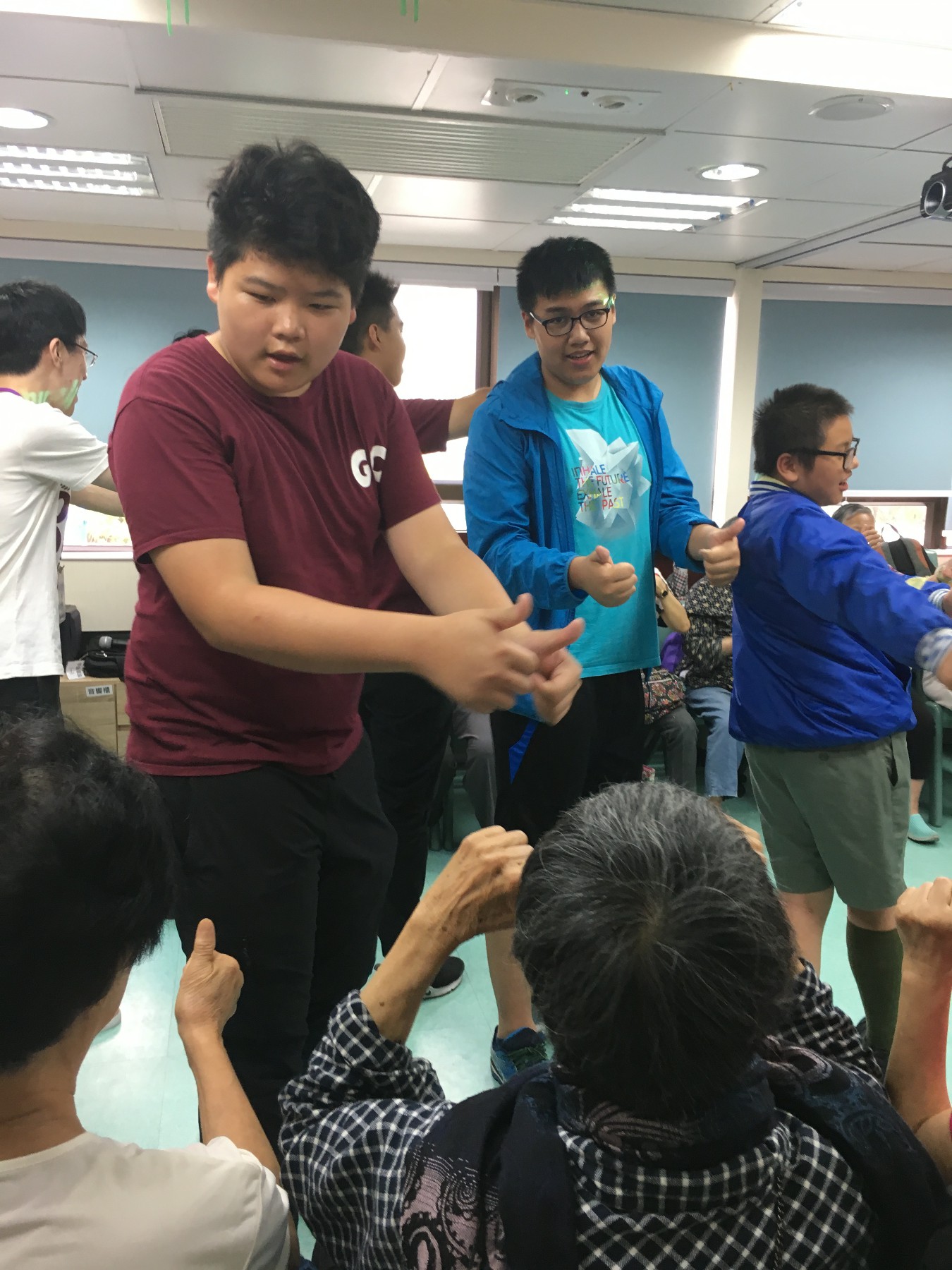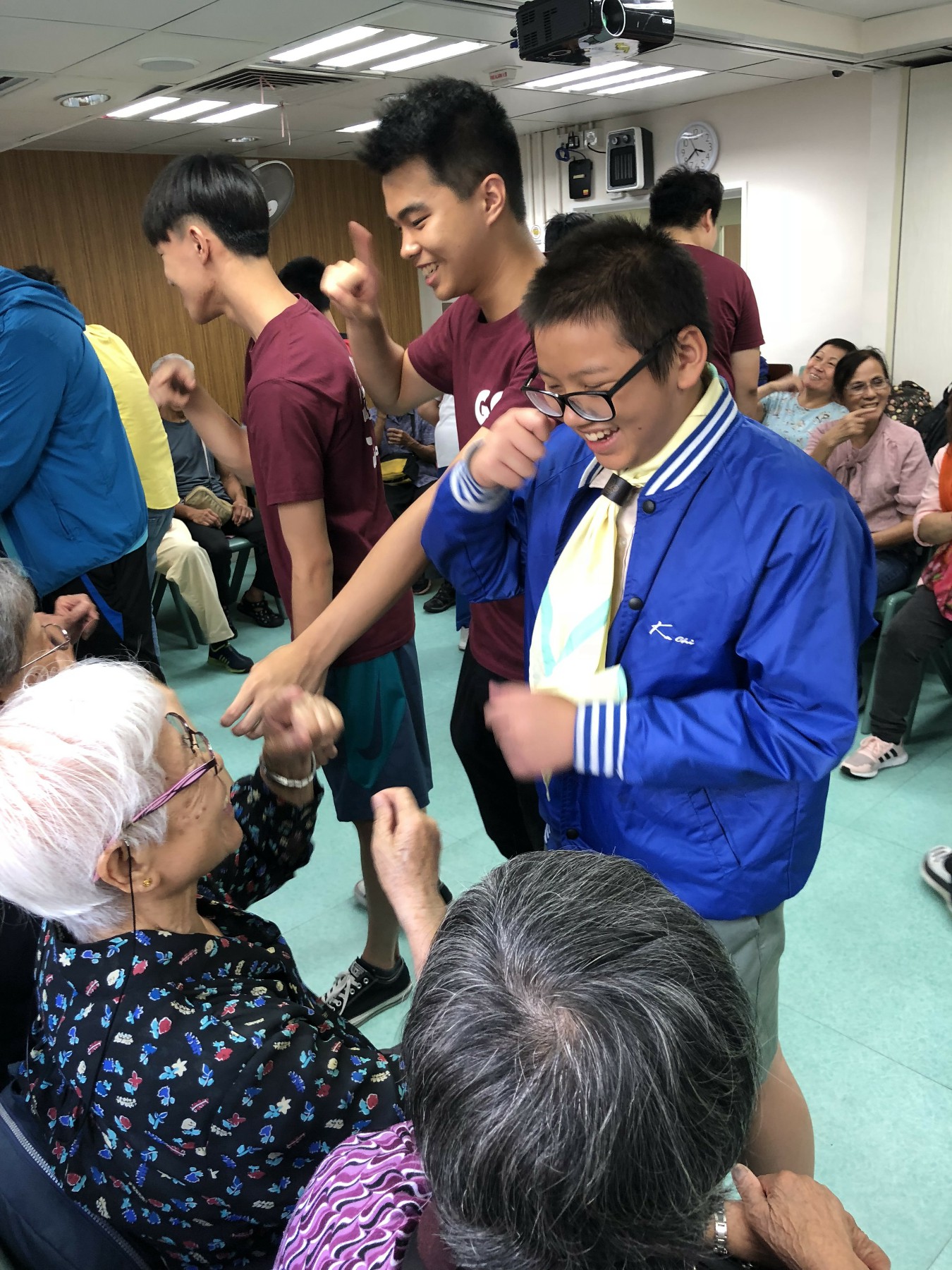 同學按原定流程教授「大笑瑜珈」,部份同學第一次做義工服務,難免腼腆,但難得他們仍保持笑容,很快就興一眾長者打成一片。及後一同玩遊戲,派小禮物,又與他們談天,從長者的笑容中可看到他們感受到關懷和溫暖。