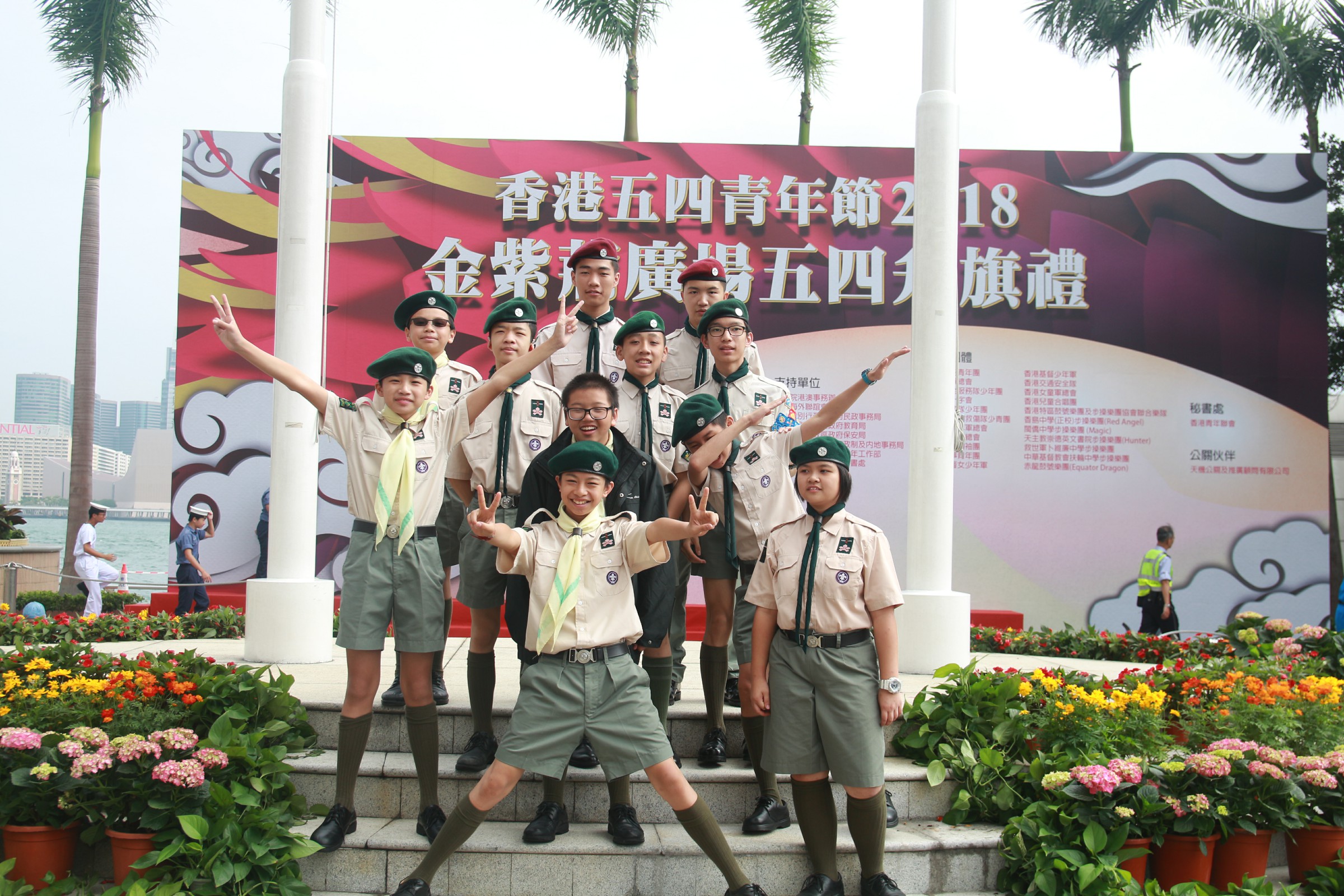為紀念「五四運動」99周年,本校童軍代表香港童軍總會,出席灣仔金紫荊廣場五四升旗禮。
