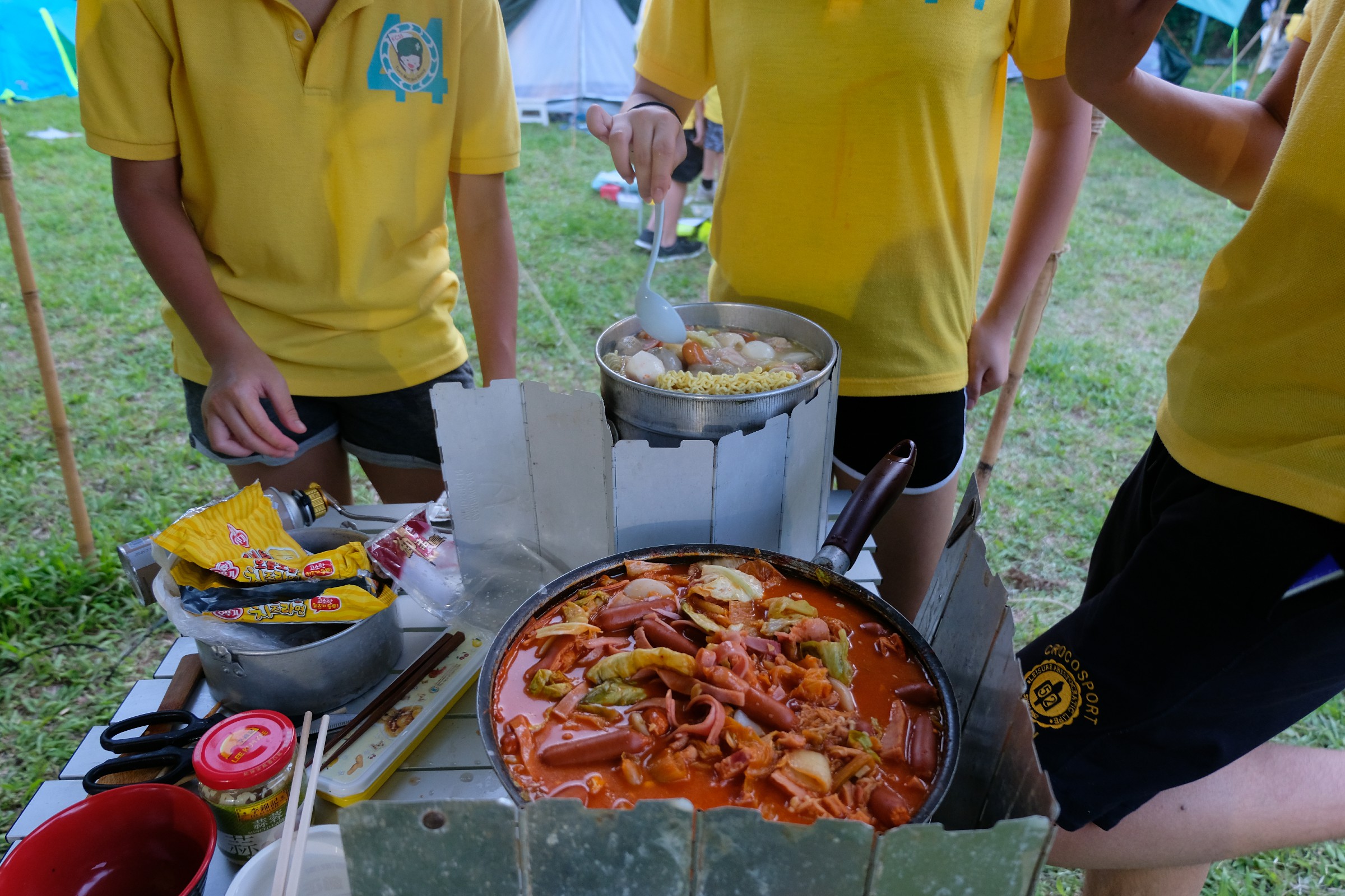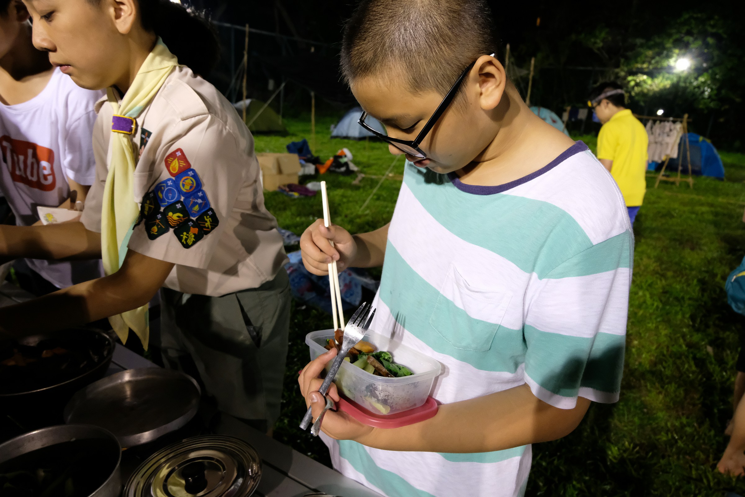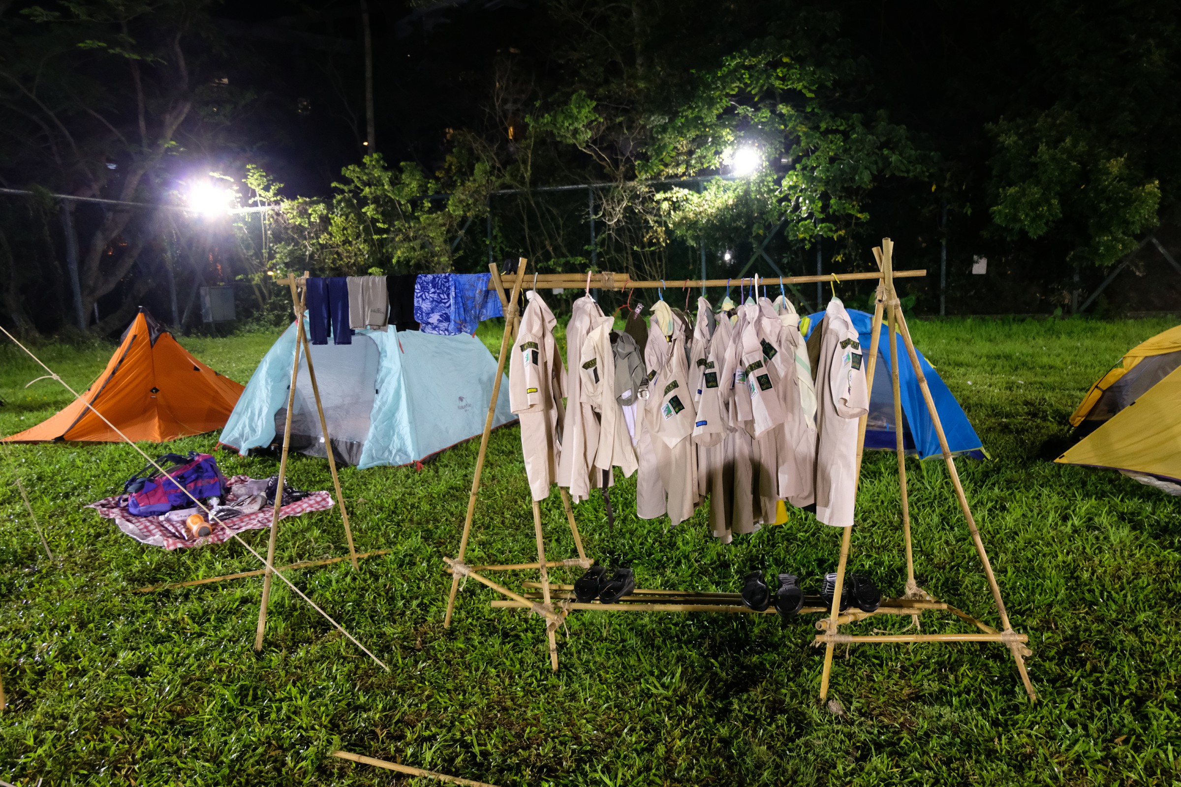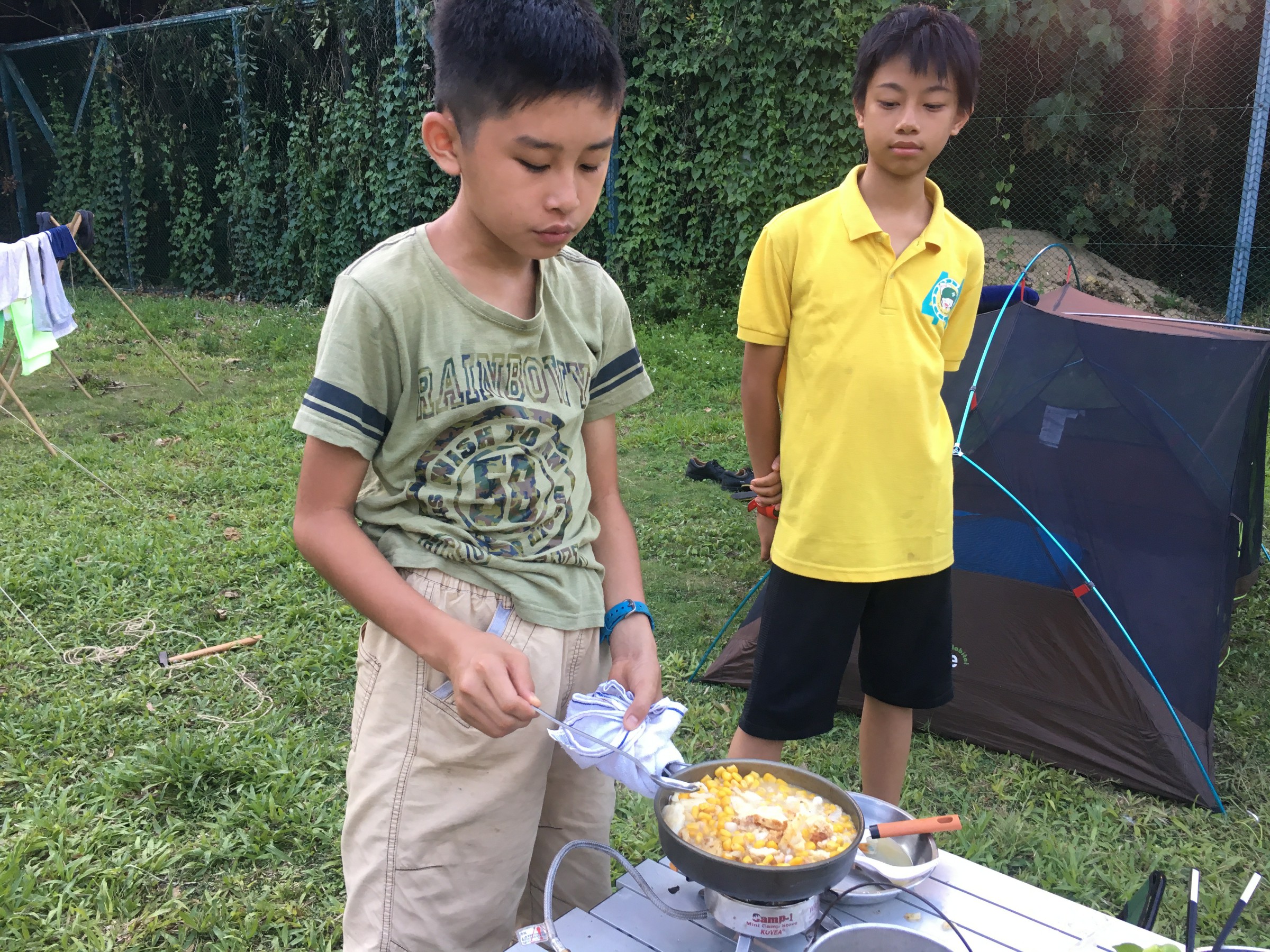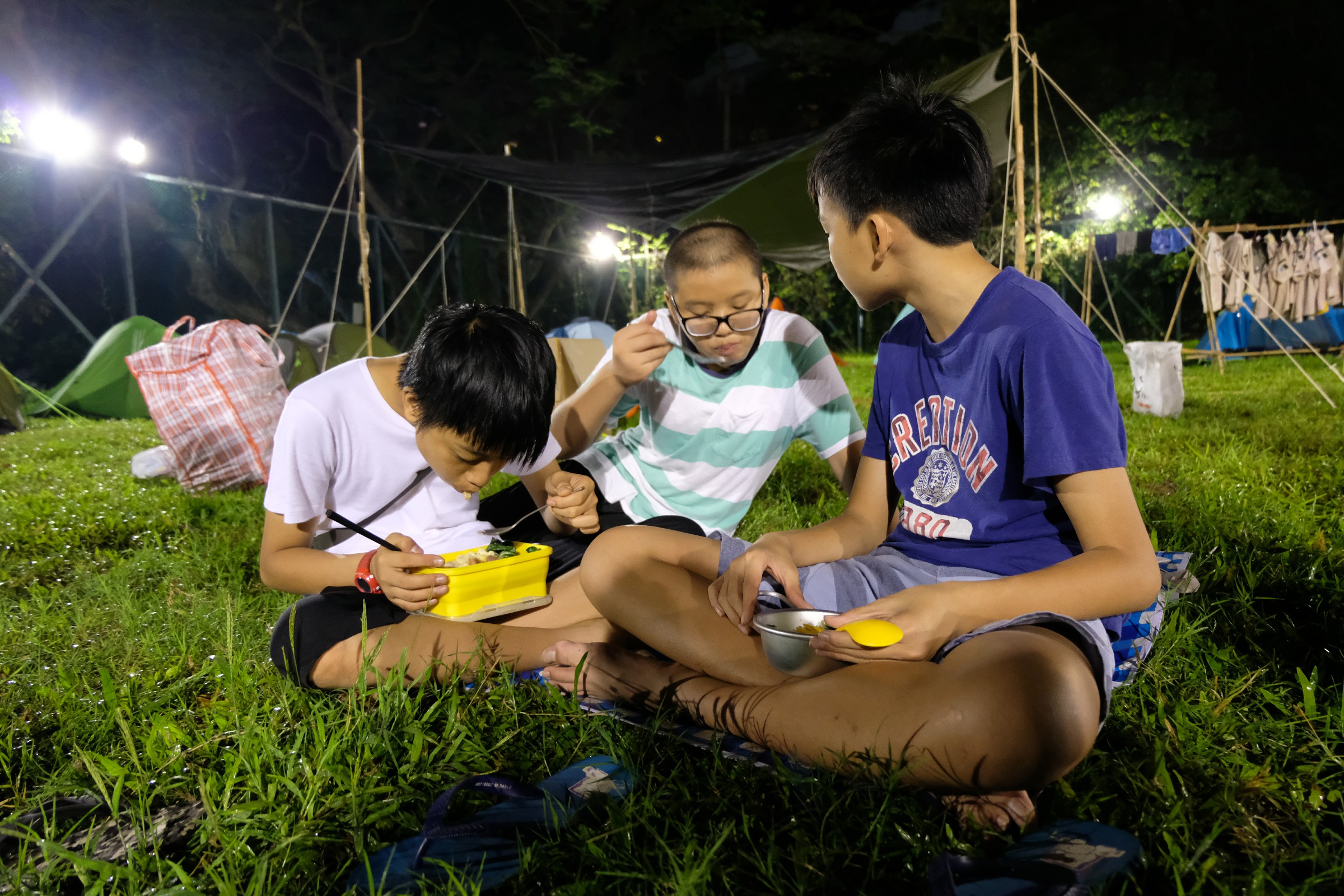 青天當被,蓆地而眠,把大石當枕頭,露營生活是最愉快。學校畢業禮服務後,我們立即揹起背包去露營啦,在三日兩夜裡,確實是非常的酷熱,但!好玩就是好玩,一起煮飯,一起健行,一起唱歌。
