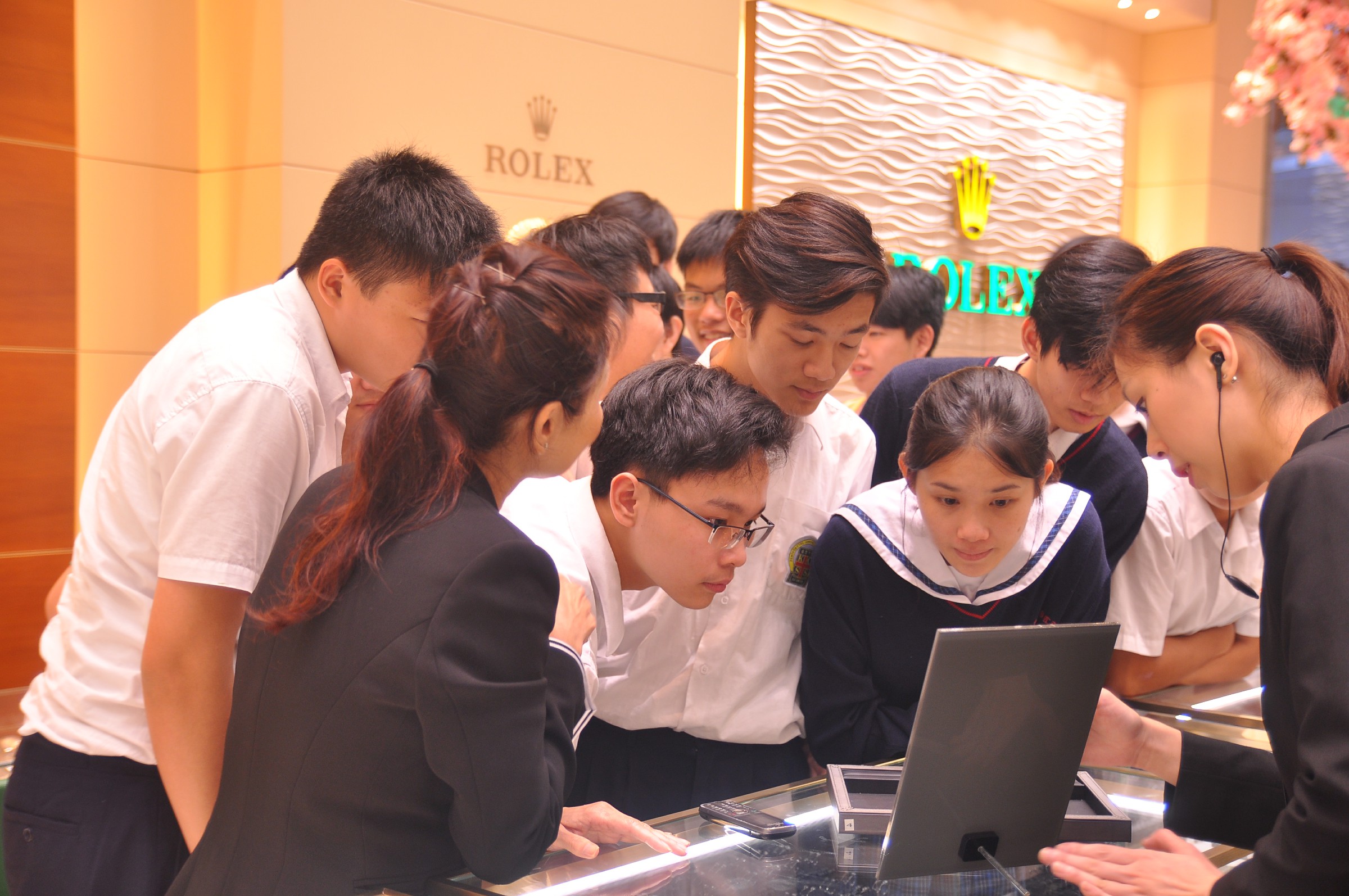 本校第三年參加 「學校起動」計劃,英皇珠寶集團為本校的合作顆伴。當天帶領16位中五級學生前往中環英皇鐘錶珠寶門店參觀,由市場部、人事部的英皇珠寶同事籌辦和接待。