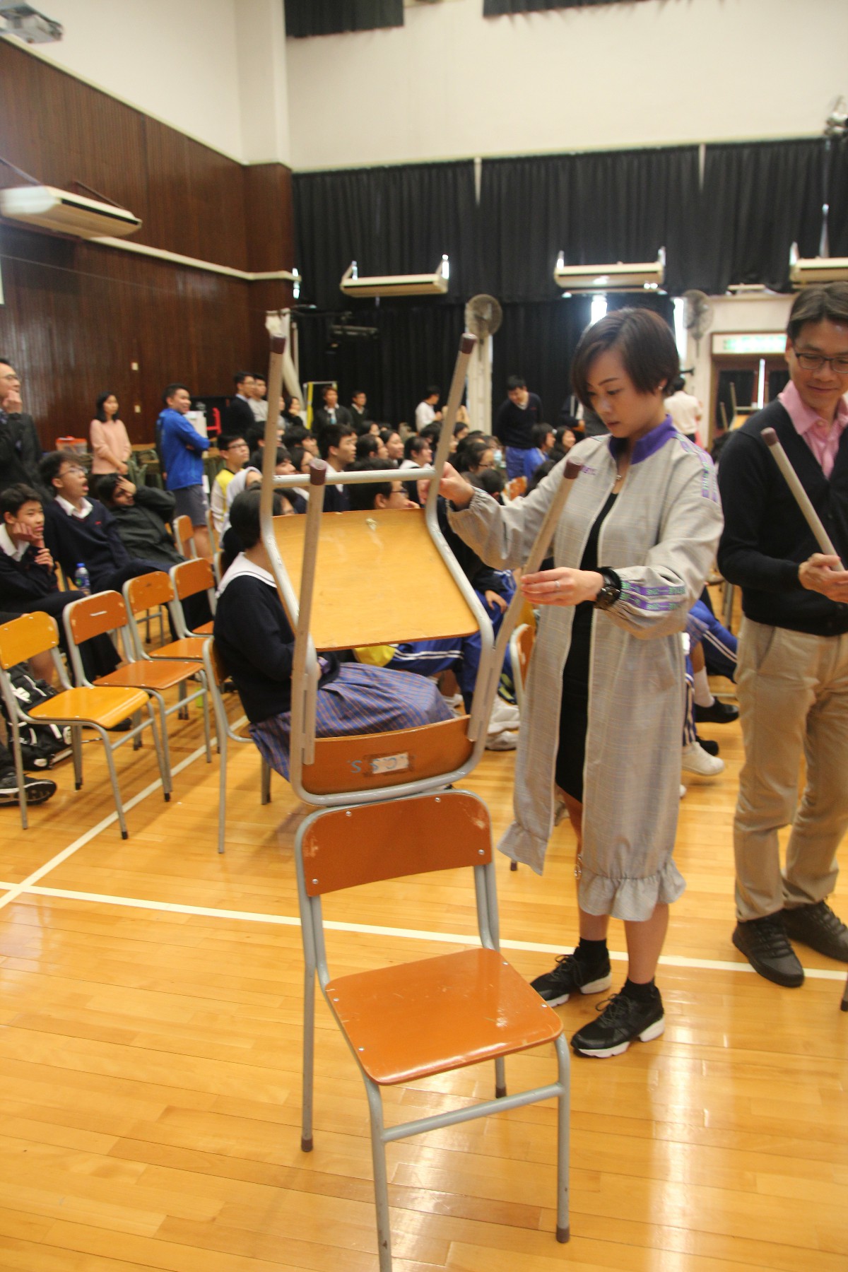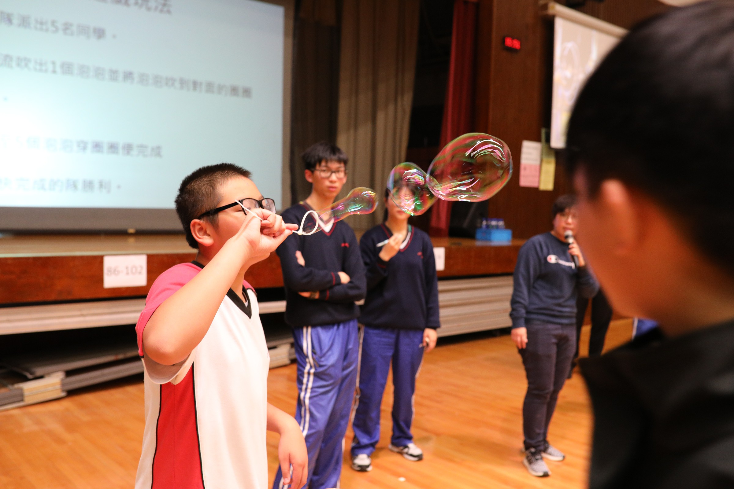 ![]() 學校為提高學生對科學的興趣,本校舉辦每年一度的趣味科學周會。由校內科學科老師籌備各個有趣科學的遊戲,分別有「重心大考驗」、「水瓶翻轉」、「魔幻泡泡」,用趣味及活潑的方式介紹重心力、平衝力、表面張力的科學知識,增進學生學習科學的興趣,以提高學生對科學的關注和興趣。 |