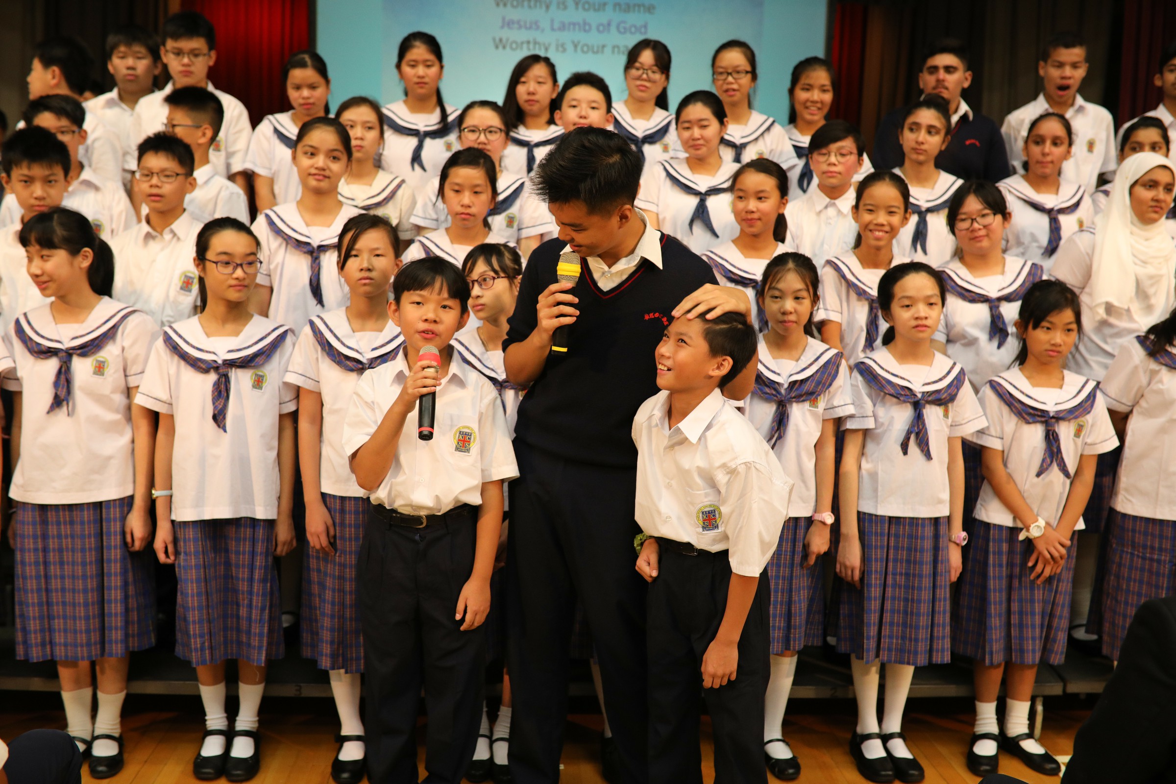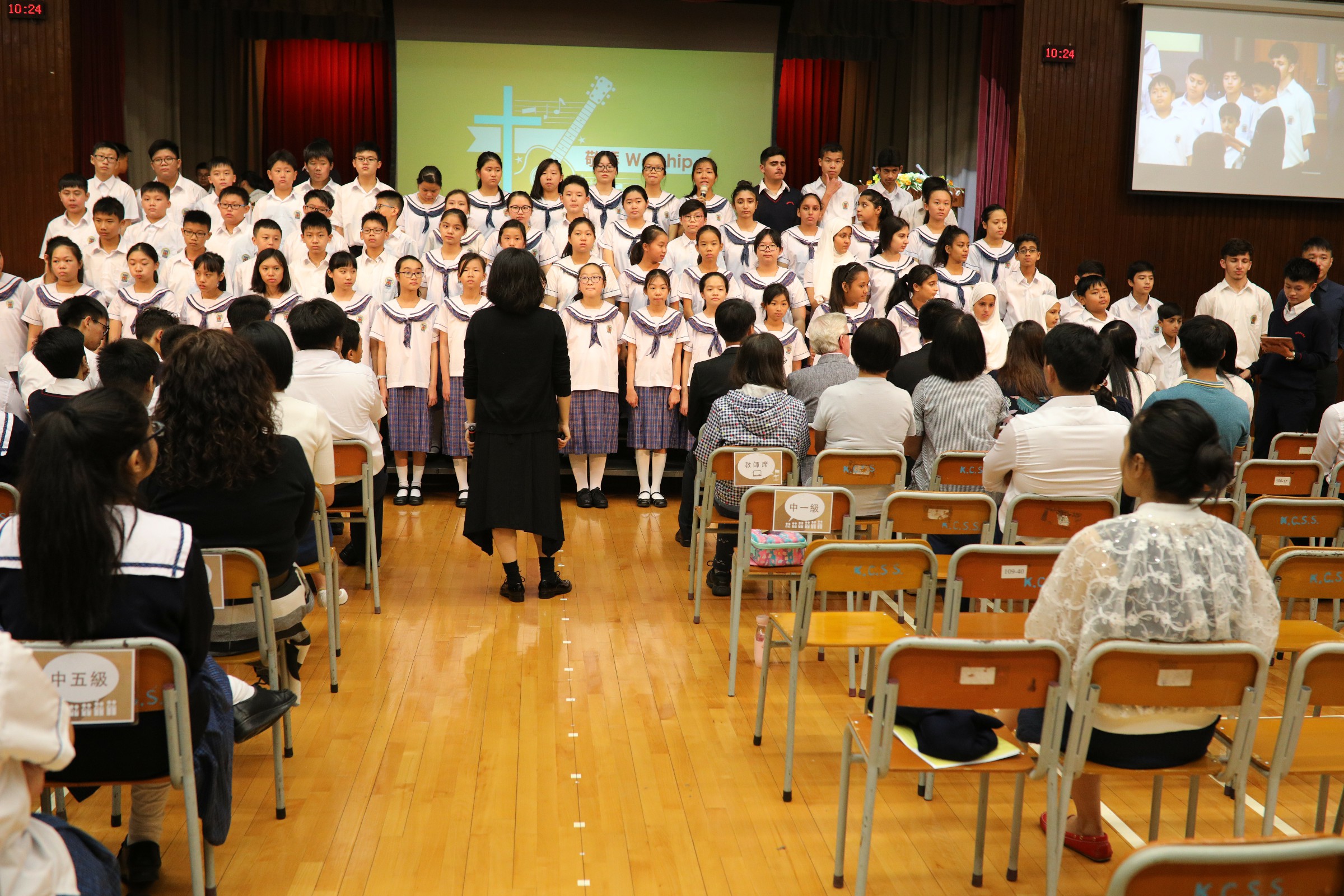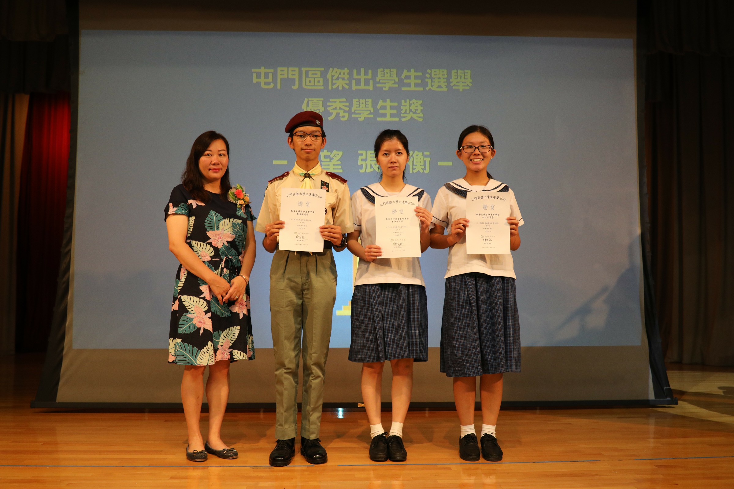 之後由家長校董李麗霞女士頒發獎項給富服務精神的同學。一年一度的開學典禮在一片感恩的掌聲中完結,