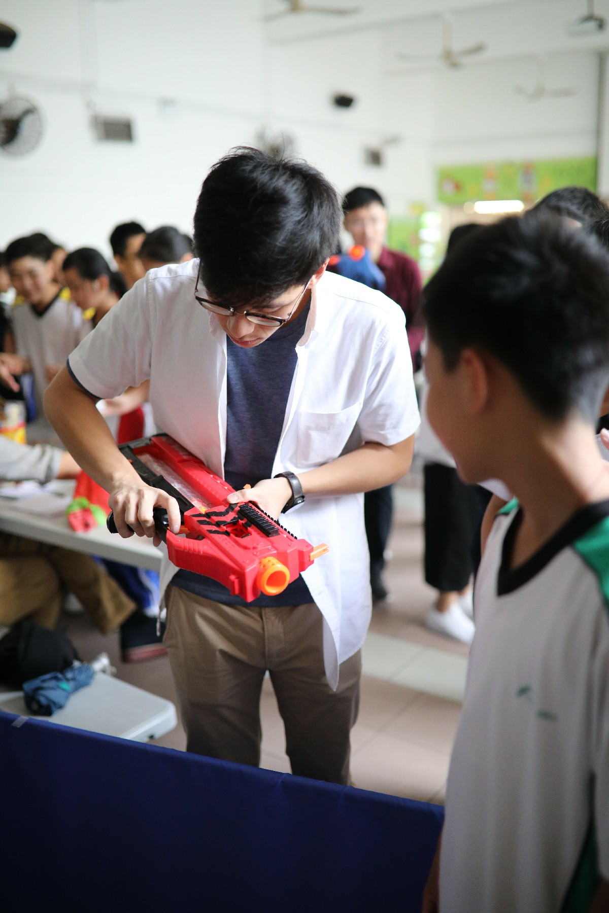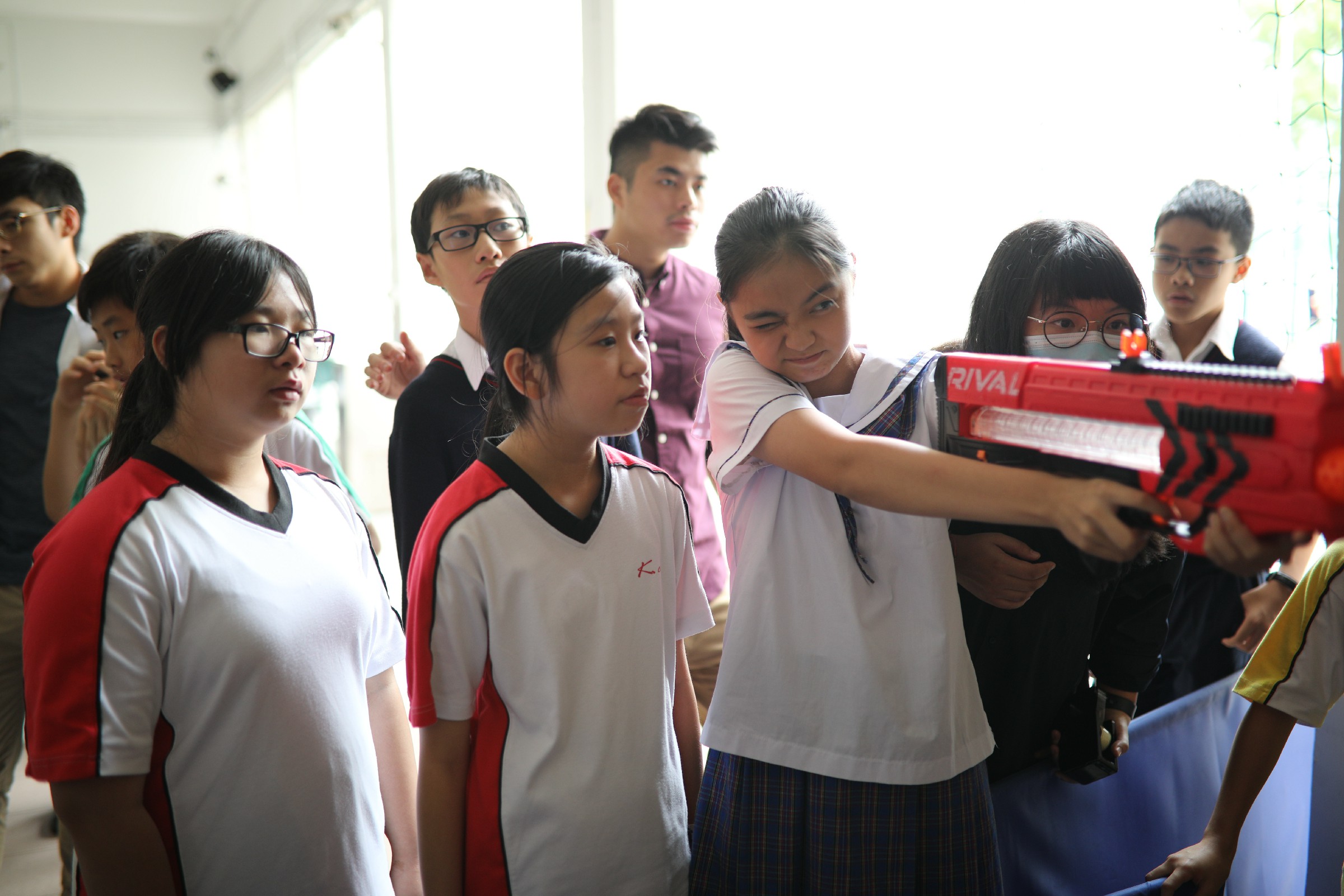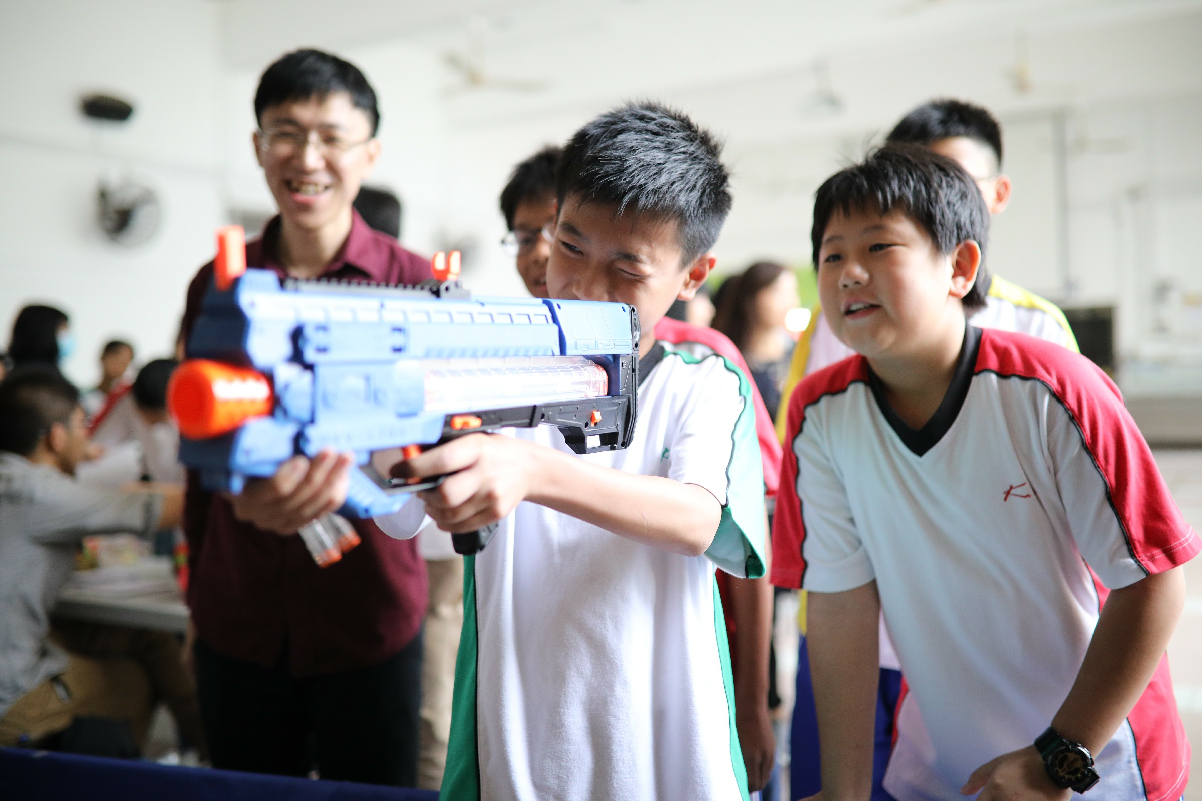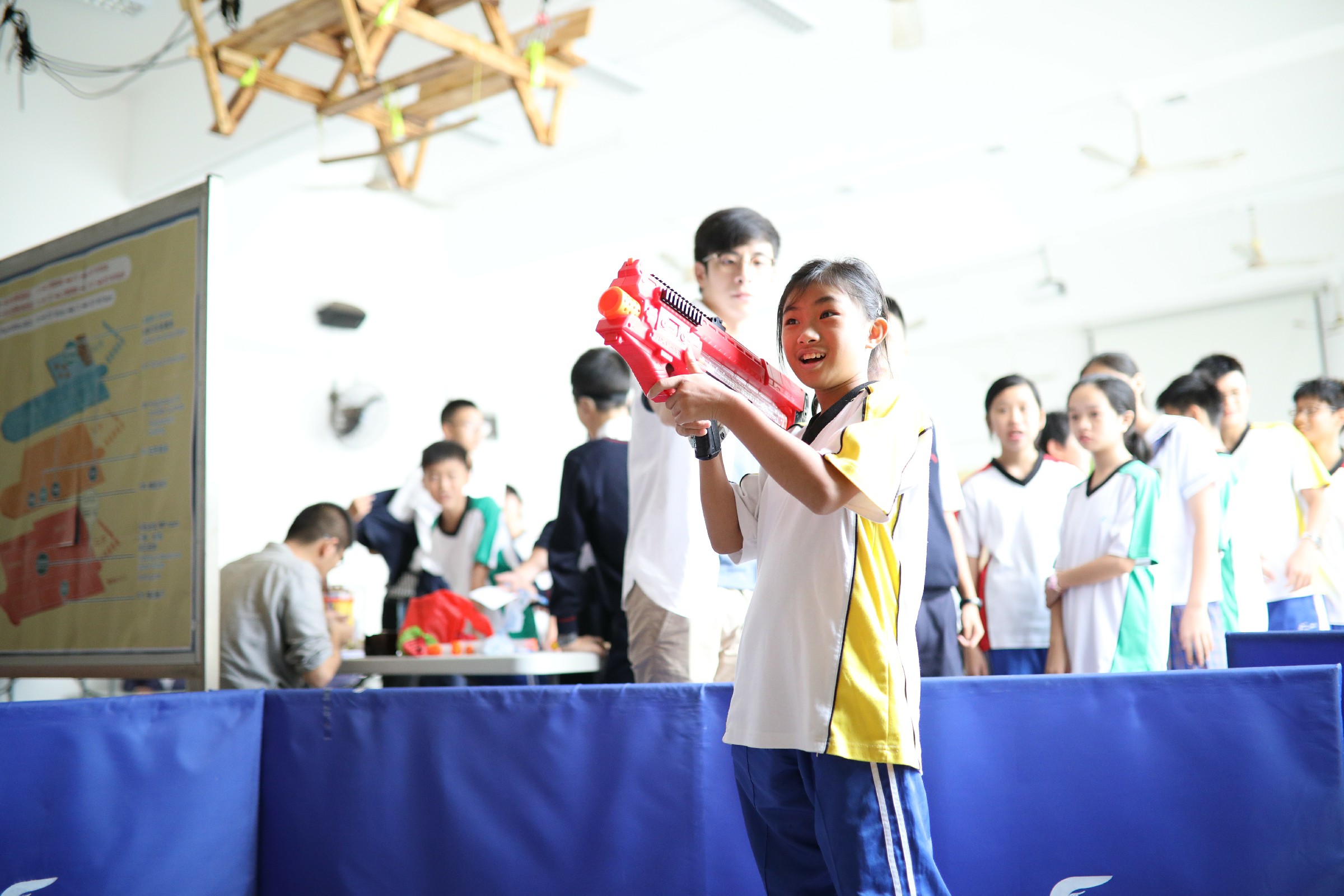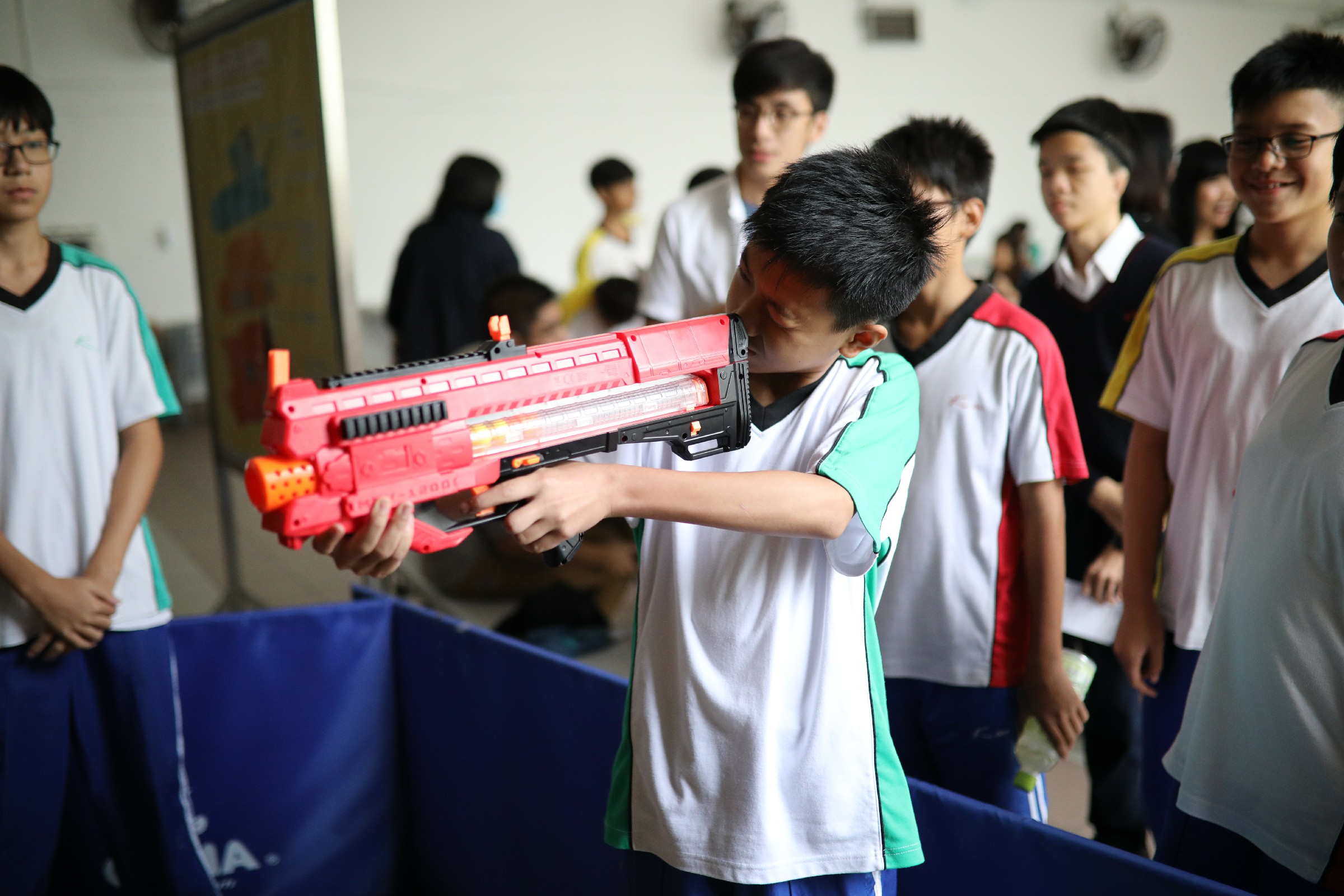 活動一開始,一班充滿活力的同學便走到攤位,透過問卷向我們分享他們的減壓心得,並將自己的一些壓力來源畫在白紙上,準備參與我們的遊戲。每名同學也可以將象徵壓力源的畫紙掛在架上,並用Nerf子彈槍射倒它們。有時候,一些簡單的遊戲、與朋友一起閒逛聊天、靜看心靈勵志書籍,也可以協助我們減壓。相信嘉智的同學也能夠像今天的活動一樣,用他們的力量擊倒負面壓力,繼續健康成長。