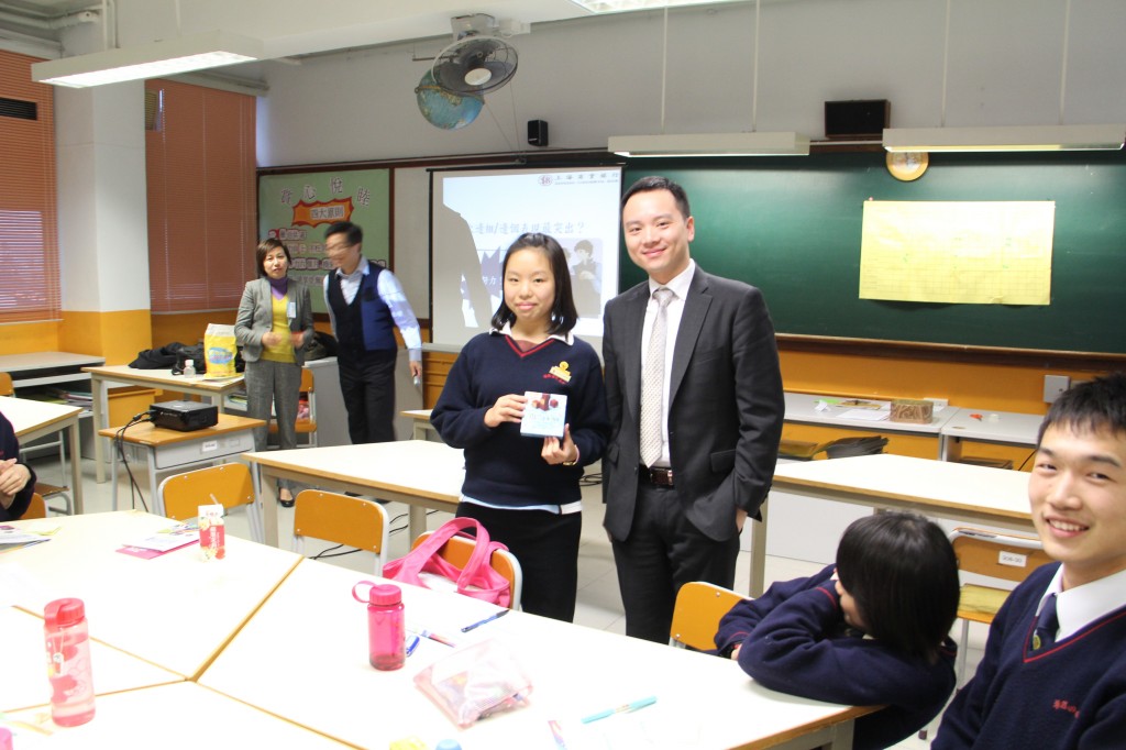 上海商業銀行今年與本校結連成合作伙伴,派出五位公司大使蒞臨本校,舉辦六次工作坊,與三十多位同學藉著集體遊戲、經驗分享、匯報分析、模擬面試、實地參觀等互動活動,讓學生有機會從社會人士身上學習如何面對逆境接受挑戰,裝備自己計劃未來,尋找工作路向,表現優異的同學更可在活動獲取證書及不同獎項。