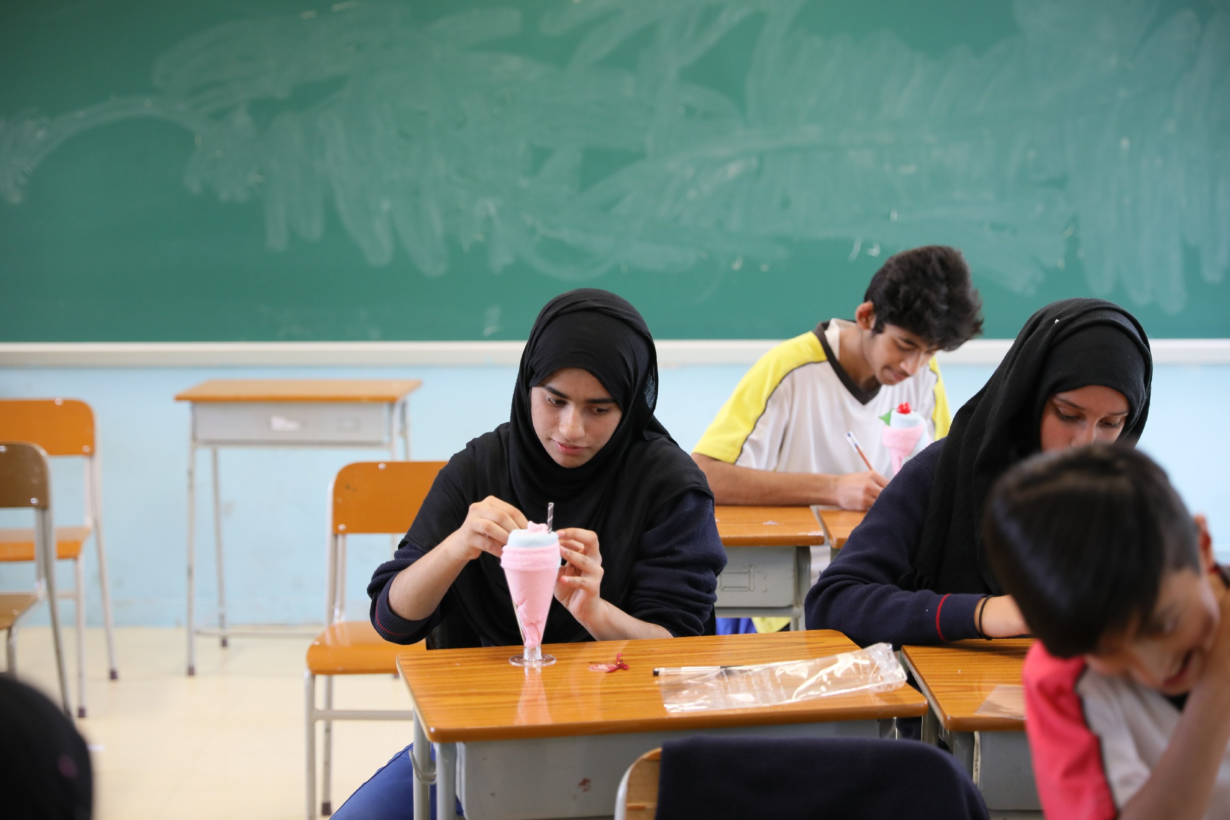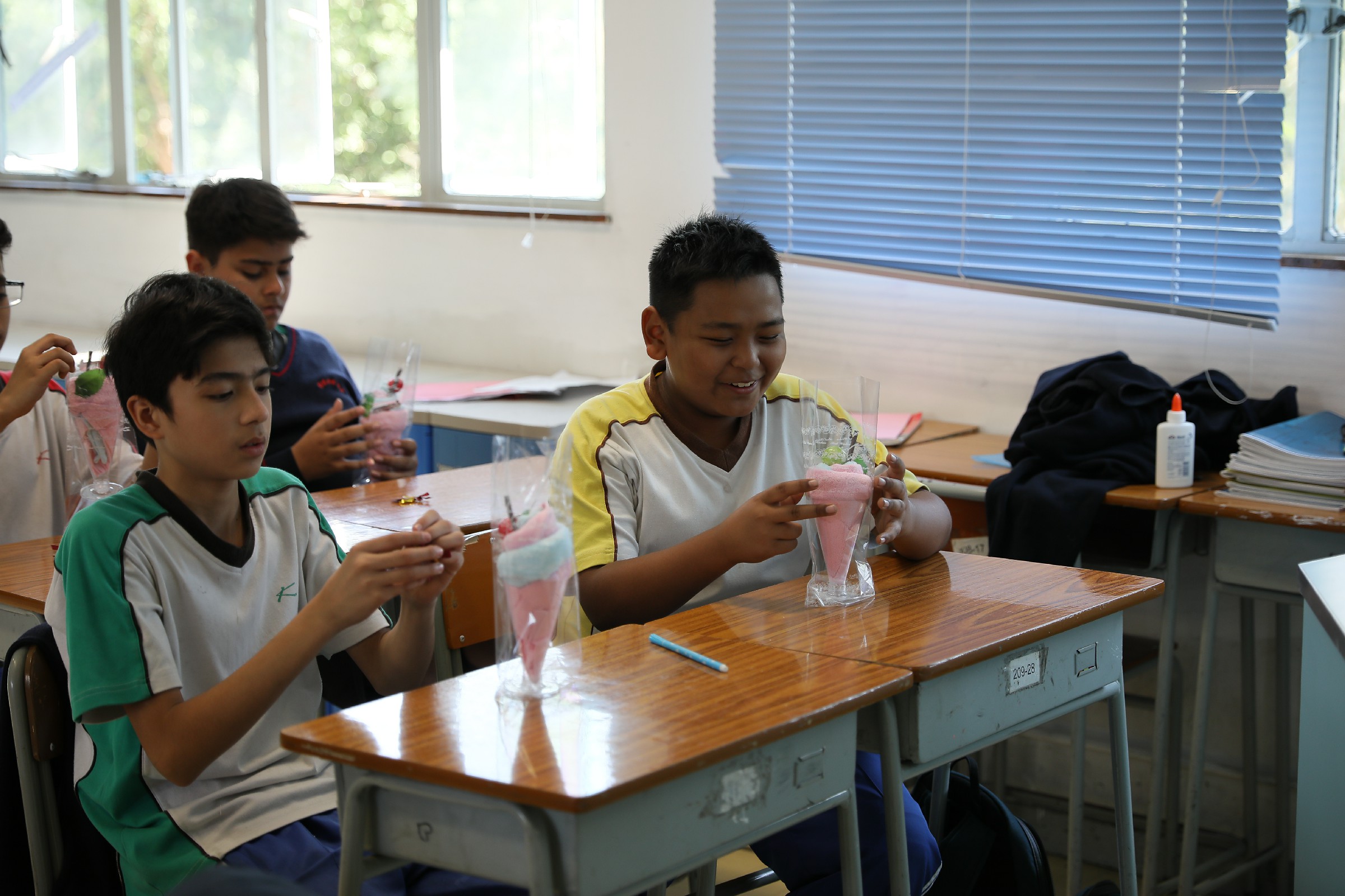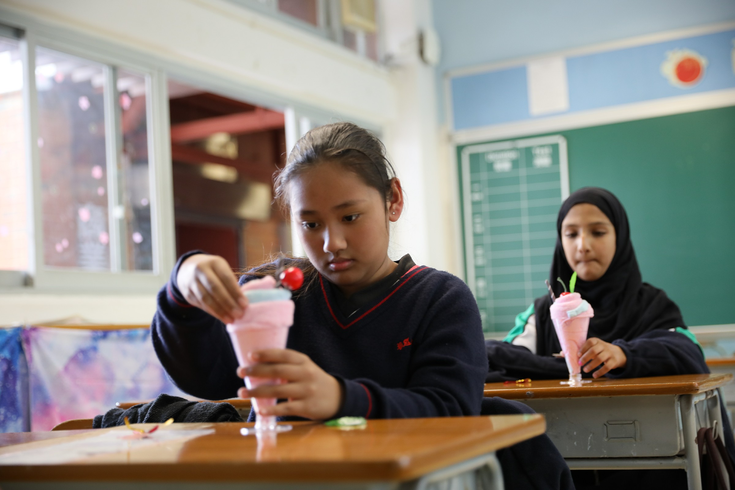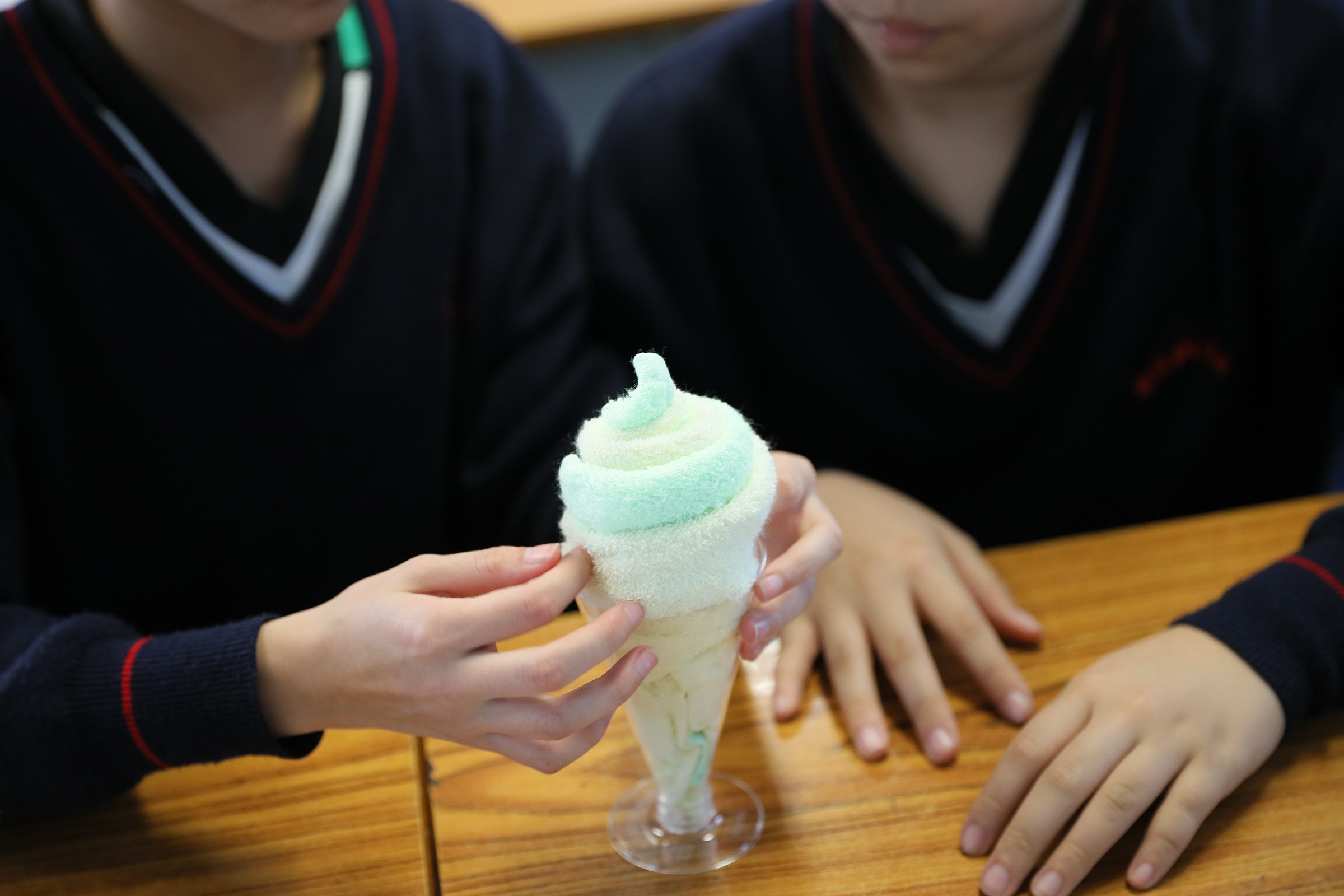 利用手帕及各項材料,製作成車厘子雪糕杯,再寫下道謝說話在感謝咭上,準備在家長日當天,在家長與老師面談時,