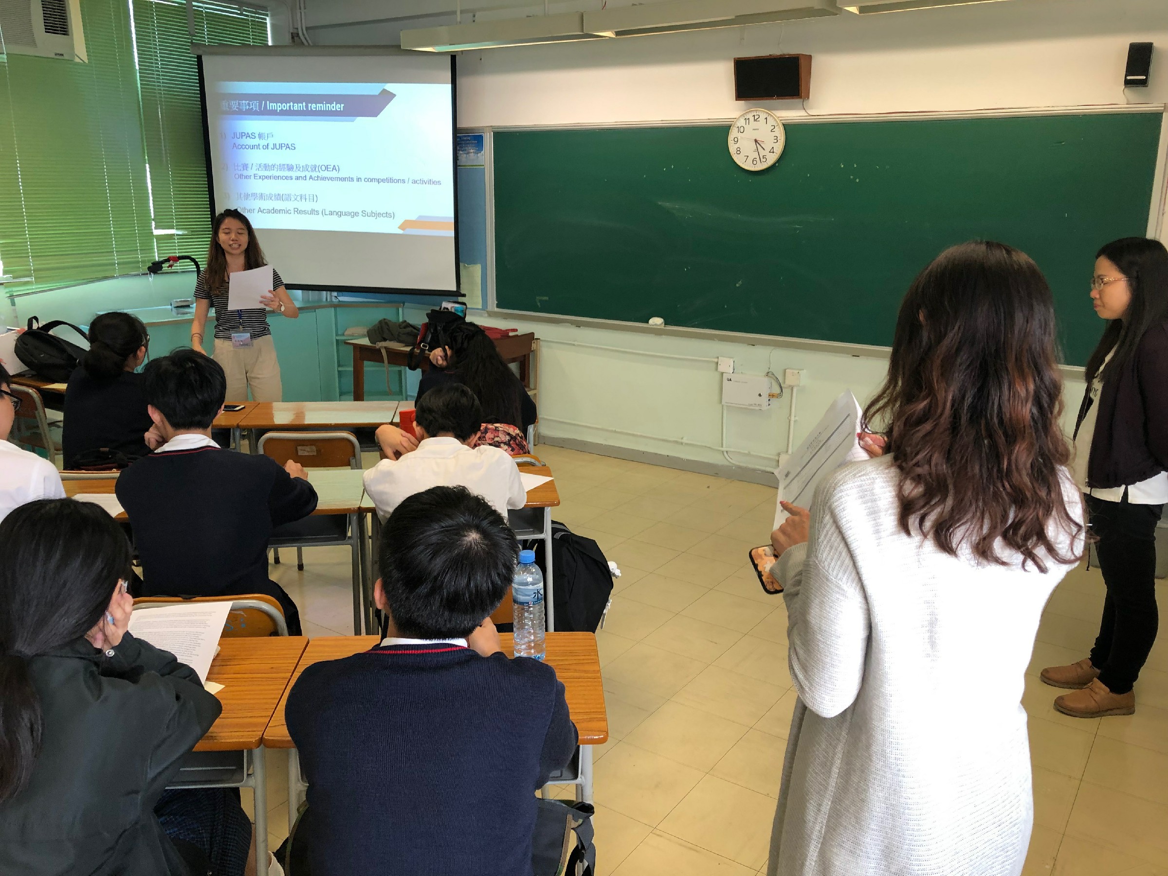 理工大學的大學生透過WeCan,與本校連繫合作,派出理大學生來到嘉智中學,為中五級的尖子作升學就業介紹。分別在五月十日、五月十七日、和五月二十四日進行三次升就分享會,內容主要是理大學生分享對於升學前路的分析探索、以過來人的經驗指導同學,令同學藉此更清晰各大學的報讀及收生情況,幫助他們歸納眾多的升學資訊。