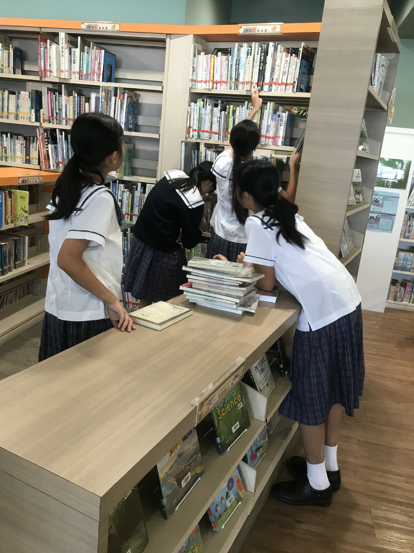並火速地把手上一疊一疊的圖書逐一放上書架,有隊伍更能於限時內完成!
