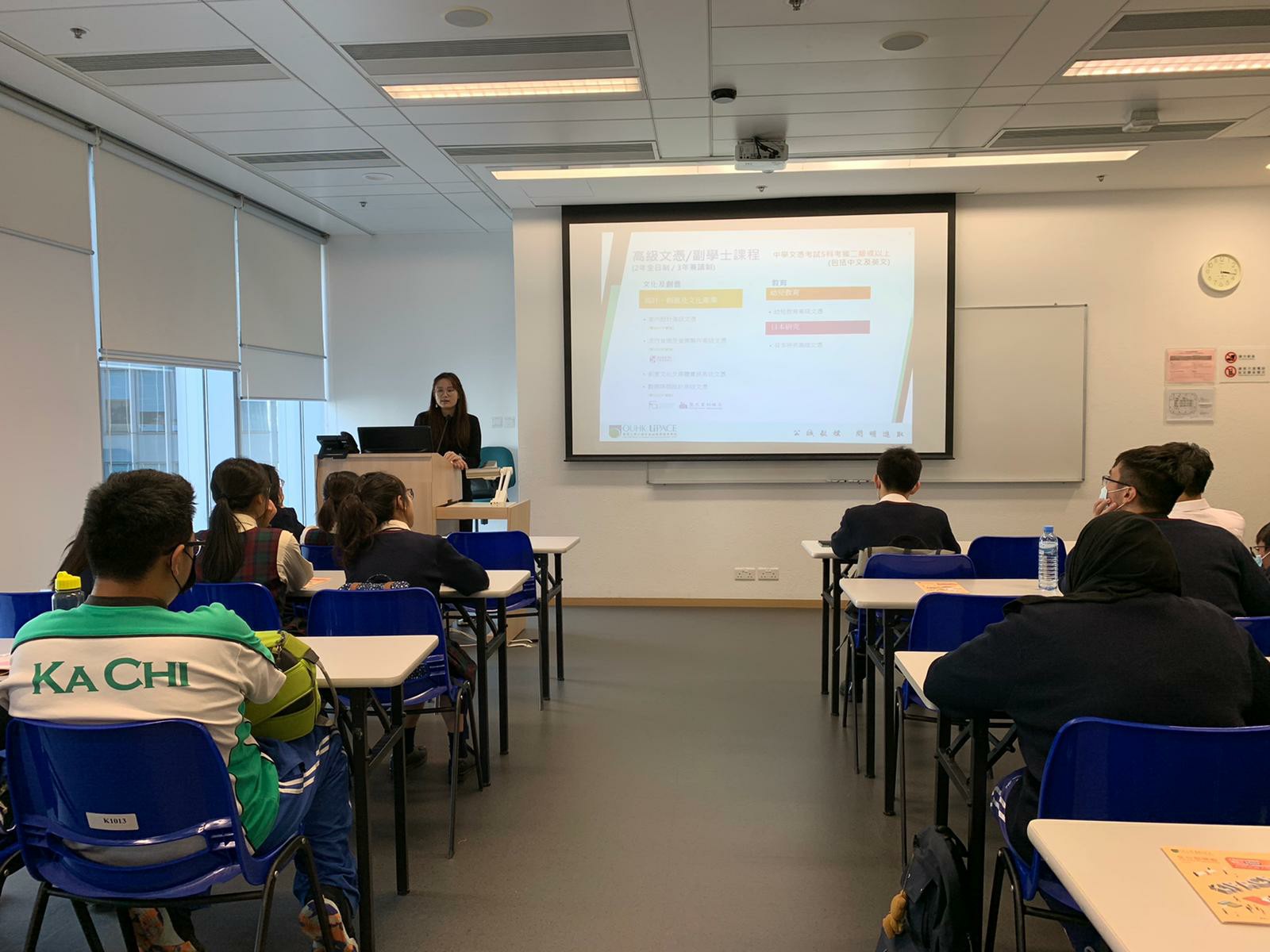 為幫助同學對將來就業有更多認識,讓中六學生透過親身接觸社會,加深對自己未來的人生規劃,學校在1月7日安排了中六級學生參觀香港公開大學李嘉誠專業進修學院,了解酒店、航空及護理等學系,由導師講解各學科學習內容情況、入學要求、又親自嘗試心肺復蘇,以至觀看模擬病房內及模擬機艙的各項設備等,是次活動令同學獲取最新有關升學的資訊,更了解升學前路。
