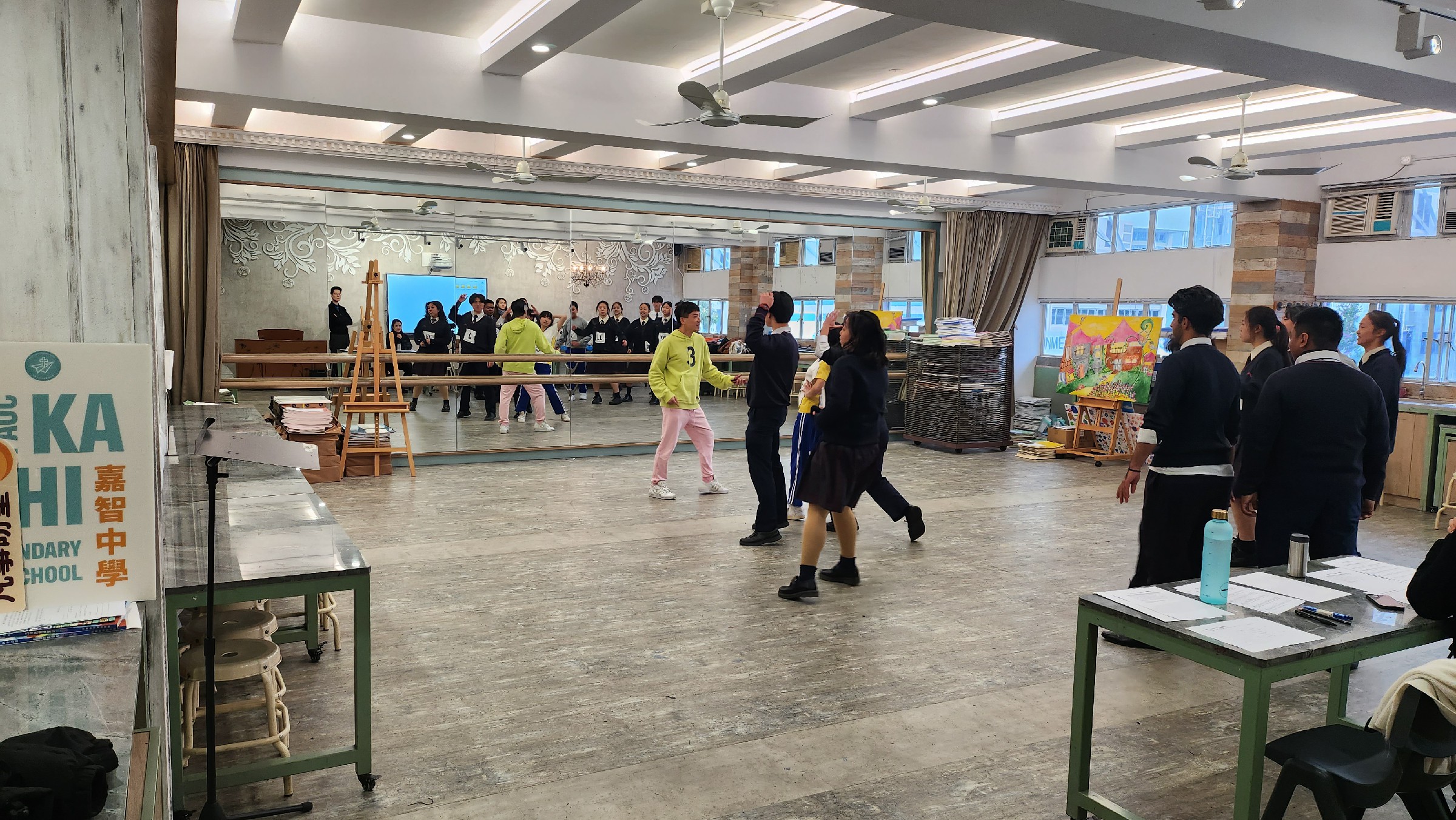 葉潤霖Henry Yip(舞蹈教練)及嚴翠芳Josephine Yim(EXCEL總經理)前來為同學進行面試。
