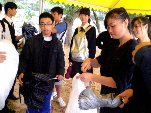 「第一次在濛濛細雨的天氣下清潔海灘,感覺輕鬆、愉快。當見到手中一袋滿滿的垃圾,再遠望清潔的海灘,心中感到莫名的滿足。」 蘇家寶老師