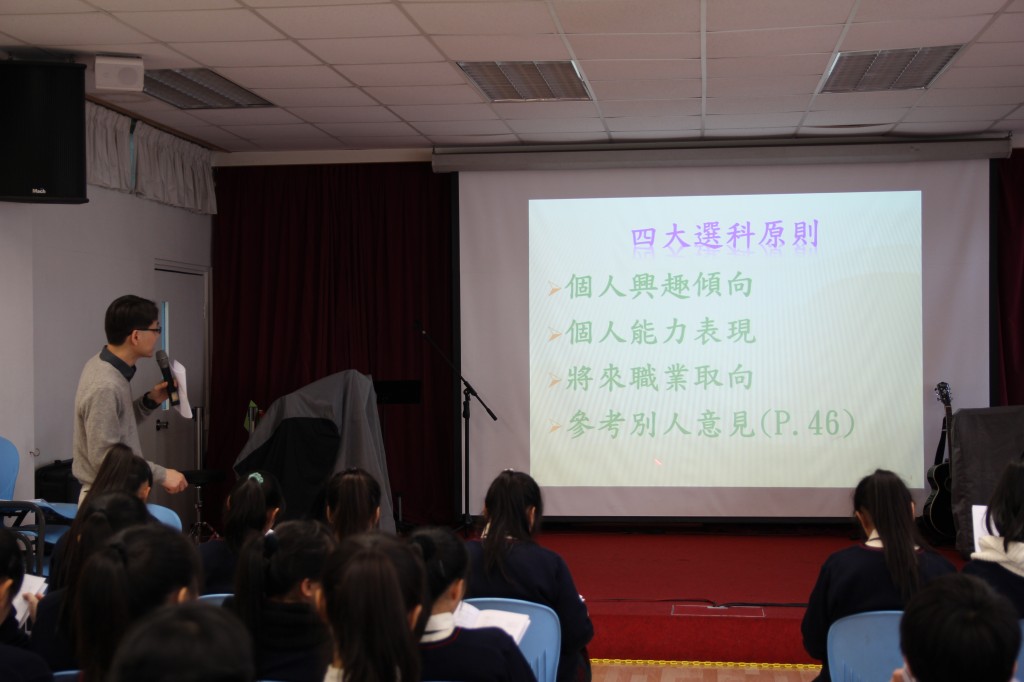 今年已全面推行334新高中學制第三年,為使中三同學能進一步認識和了解新學制,本校將分別為中三同學舉行新高中學制選修科目講座。內容包括簡介本校新高中科目、選擇新高中的因素、本校選科程序及有關甄選政策。目的是使同學能掌握更多的資訊,並按自己的能力及興趣,周詳地考慮各方意見,為中四選科作出適合的部署。