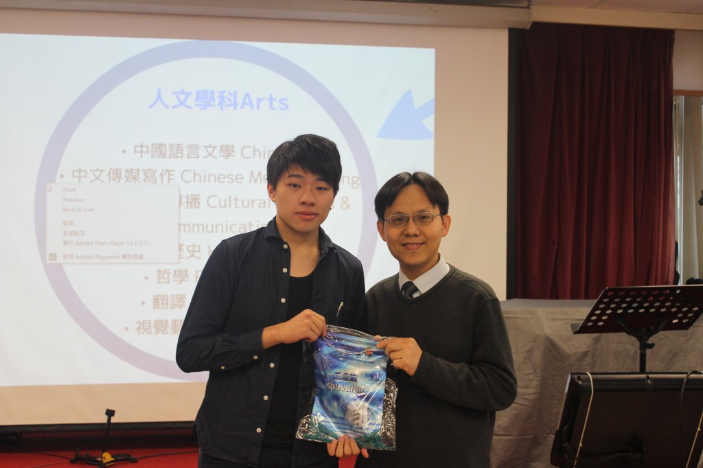 升讀大學的校友不少, 今天特意請來任教嶺南社區學院的校友--朱建慧小姐及現就讀中大哲學系的周禮灝同學, 請他們分享任教及就讀大學的點滴, 以勉勵學弟妹: 「要俾心機讀書, 以便將來升學。」