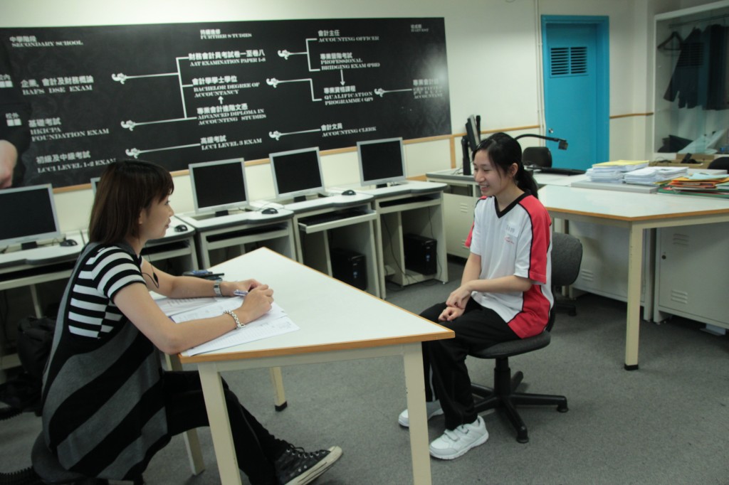 本校為使同學對將來升學及就業有更多的認識,故參加花旗集團「成功在望獎勵計劃」,在5月14日舉辦工作坊的主題是模擬求職面試,接近三十位中五級同學參加,在3份工作中安排選取其中1份工作,以作應徵見工,分別是店務員、行政文員和活動助理員。同學需撰寫申請表及履歷表,3位花旗大使擔當3份工作的面試官,同學應徵那一份工作,首先便要逐個同學與花旗大使進行個人面試,及後再要所有應徵該份工作的同學作小組面試,最後由有關花旗大使總結同學應避免的毛病及要注意的地方,同學藉此親身體驗見工的緊張心情及困難,從而改善自己短處,準備未來的前路。