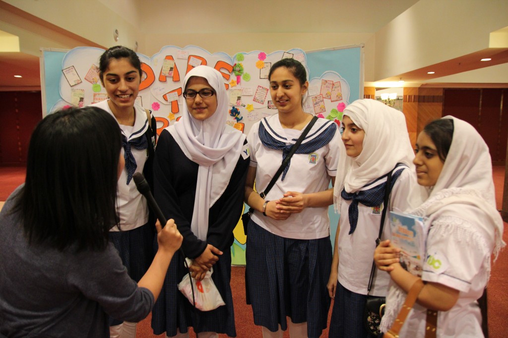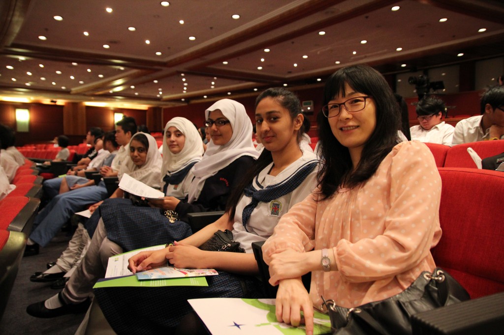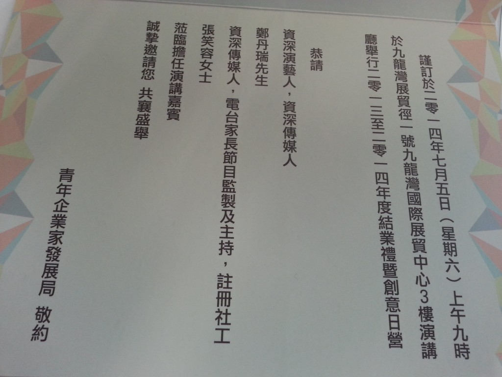 中四愛班全班非華語學生參加「商校家長計劃」,7月5日(星期六)在九龍灣國際展貿中心演講廳出席結業禮,其中古可恩同學在台上接受司儀訪問,分享當中的得着及感受。