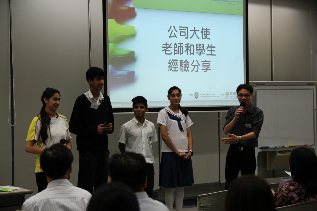 本校參加了2014年度青年企業家發展局的「商校家長計劃」,與第建服公司結連成合作伙伴,派出公司大使蒞臨本校,舉辦六次工作坊,學生表現優異,投入認真,故奪取兩個獎項,分別為「最佳合作商校伙伴」及即場「最佳演繹」,學生被邀請於2014年7月09日在九龍塘教育局作分享介紹該計劃,當日有50多位出席者,包括青年發展局董事、各公司大使及學校老師。當天由中四愛班沙力同學、田新華同學、畢艾美同學、古可恩同學及兩位老師出席分享,簡介商校計劃及分享感受,同學表現鎮定自如,獲得在場嘉賓及老師讚賞。