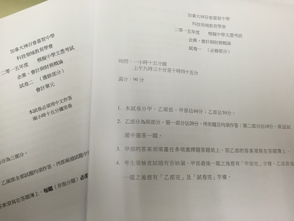 科技領域教育學會:聯校企業會計及財務概論科考試