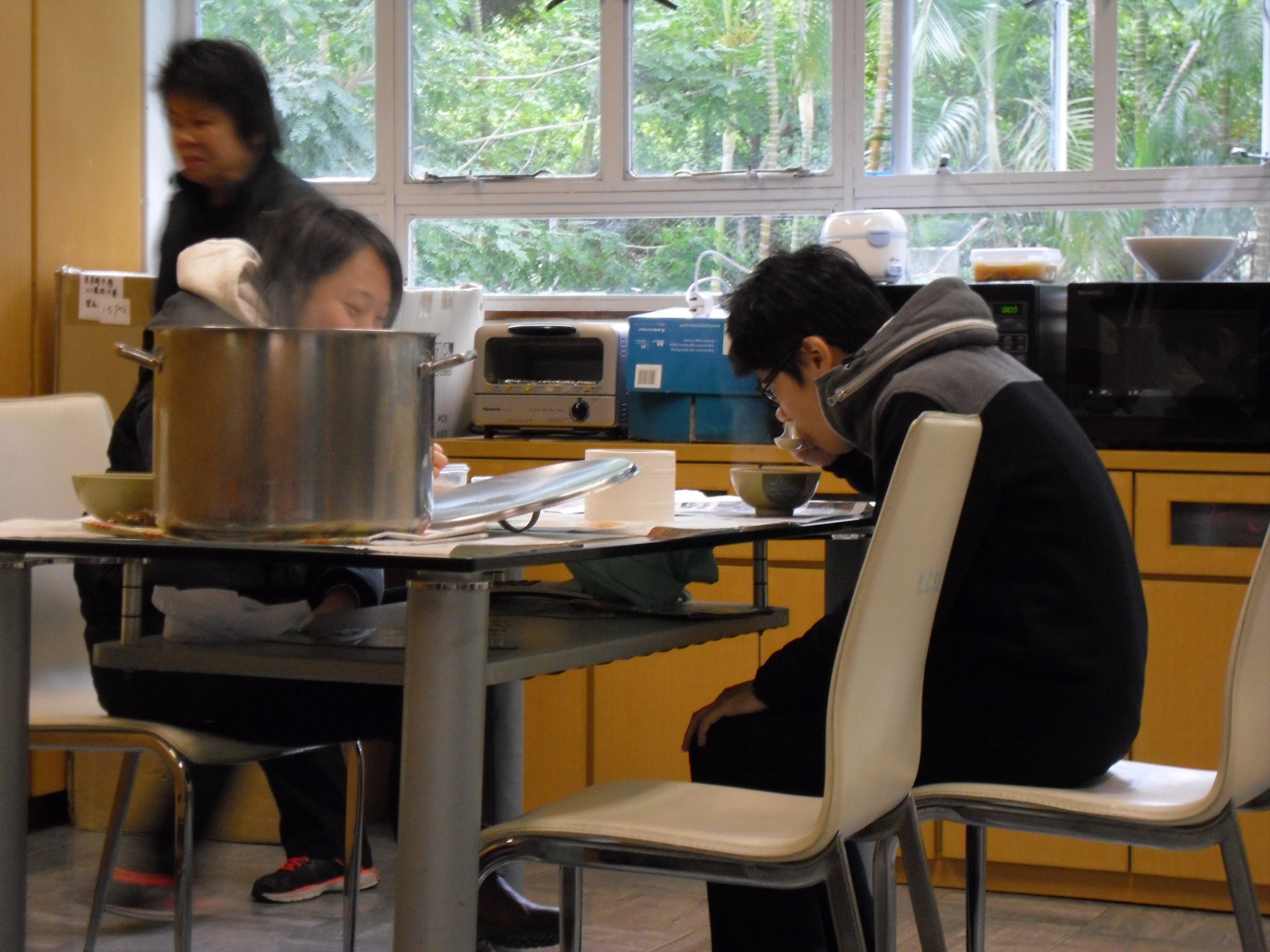 看看老師及校工們喝得多滿足!因他們都在喝着暖暖的窩心湯水!多謝神召會屯門堂的姊妹及家長們,為我們預備兩大鍋滋潤的湯水,就是放足靚料,熬足幾小時的粉葛紅蘿蔔赤小豆扁豆蜜棗排骨瘦肉湯!謝謝她們對本校上下同工所付出的愛心。