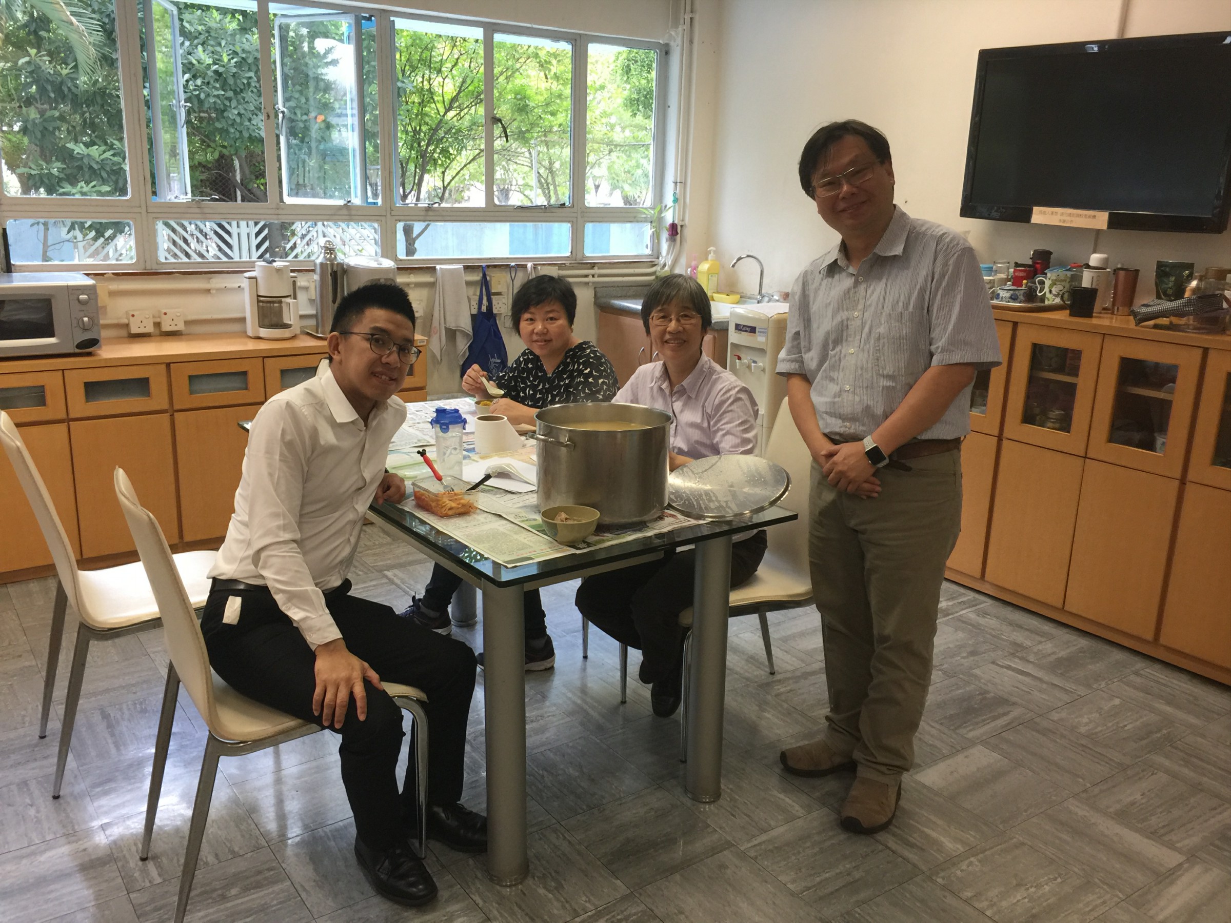 時間過得真快,又到四月濕熱的日子!感謝神召會屯門堂的姊妹及家長們,為我們預備兩大鍋既窩心又滋潤的湯水!今日的佛手瓜紅蘿蔔瘦肉排骨湯十分好味,看看我們喝得多滿足的樣子,就是最好的證明。她們選料上乘,熬足幾小時,真是感謝她們的愛和付出。感恩!