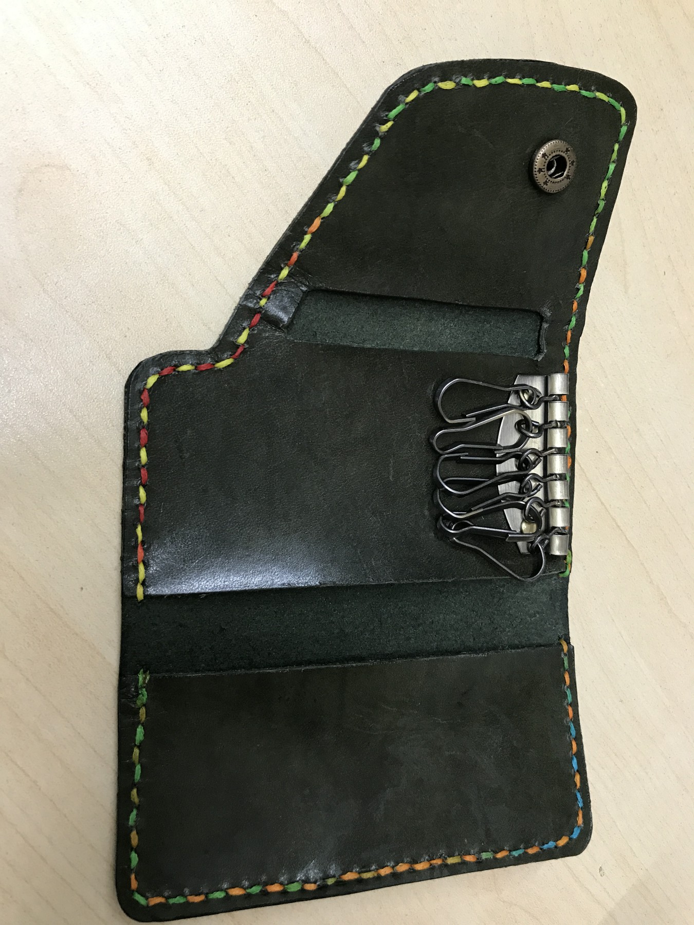 皮革十分實用,可作鎖匙扣及皮套用,有美麗的圖案,再經家長們一針一線用心地縫製,看看製成品多美!
