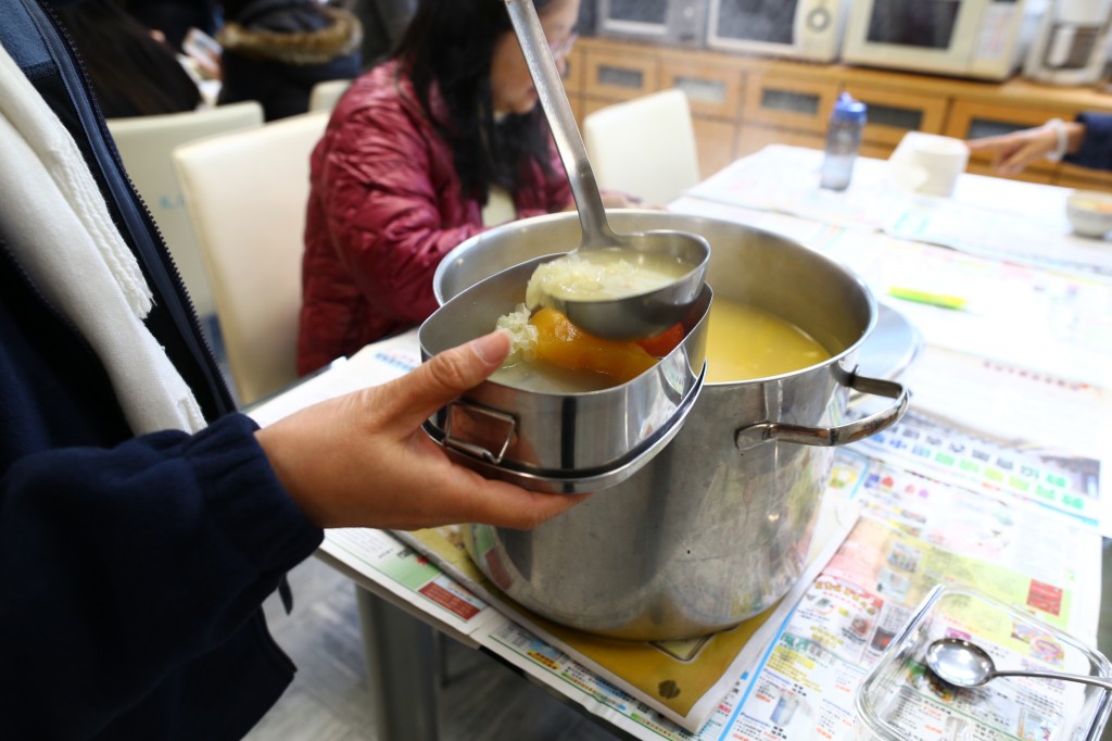 多謝一班家長在嚴冬送上兩大鍋熱騰騰的木瓜雪耳豬肉湯,他們除了放入靚湯材料外,更投入大量時間及愛心,才熬成這鍋香噴噴的靚湯,再次感謝他們對本校上下同工的關心及愛護。