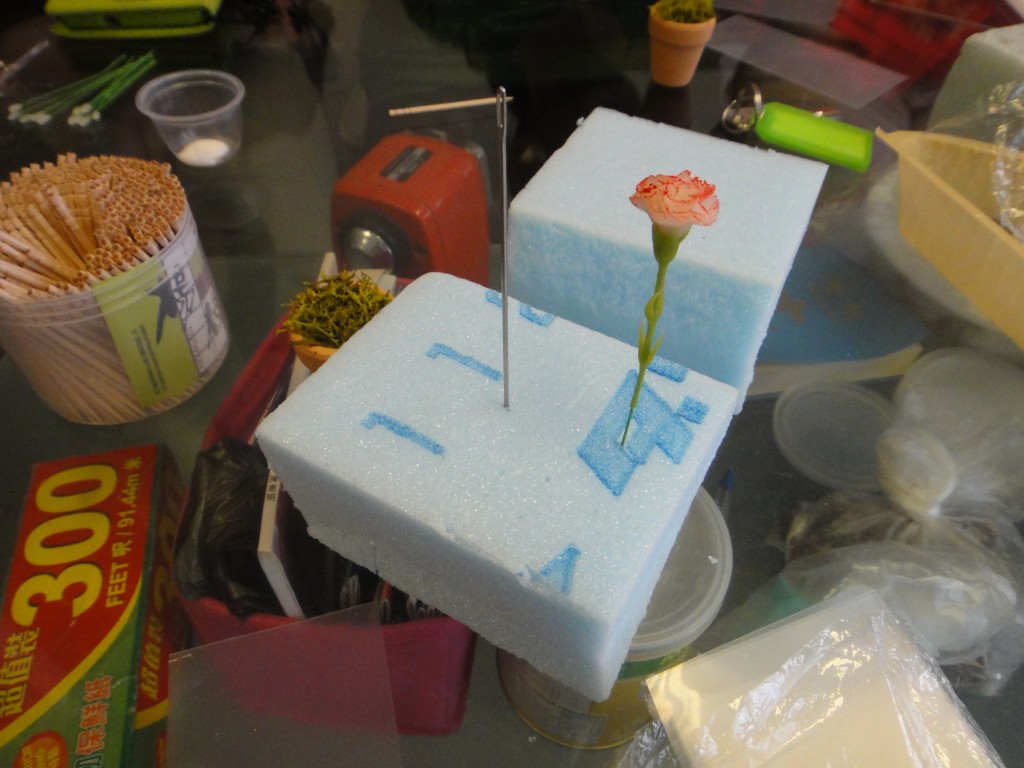 別以為麵粉花製作只是隨便用上幾個麵粉團搓成便行,原來那是非一般的麵粉團,是要用樹脂黏土或輕黏土為素材的;還要花上心思及時間,製作完成待風乾後加上色澤,便可歷久不變。