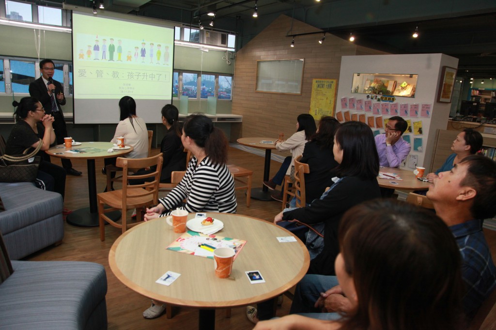 因此,我們乘著學校舉辦家長晚會,輔導組亦舉行了「愛˙管˙教」分享會,邀請了我校的教育心理學家黃諾豐先生主講,並以茶聚形式,與家長共聚了一小時。