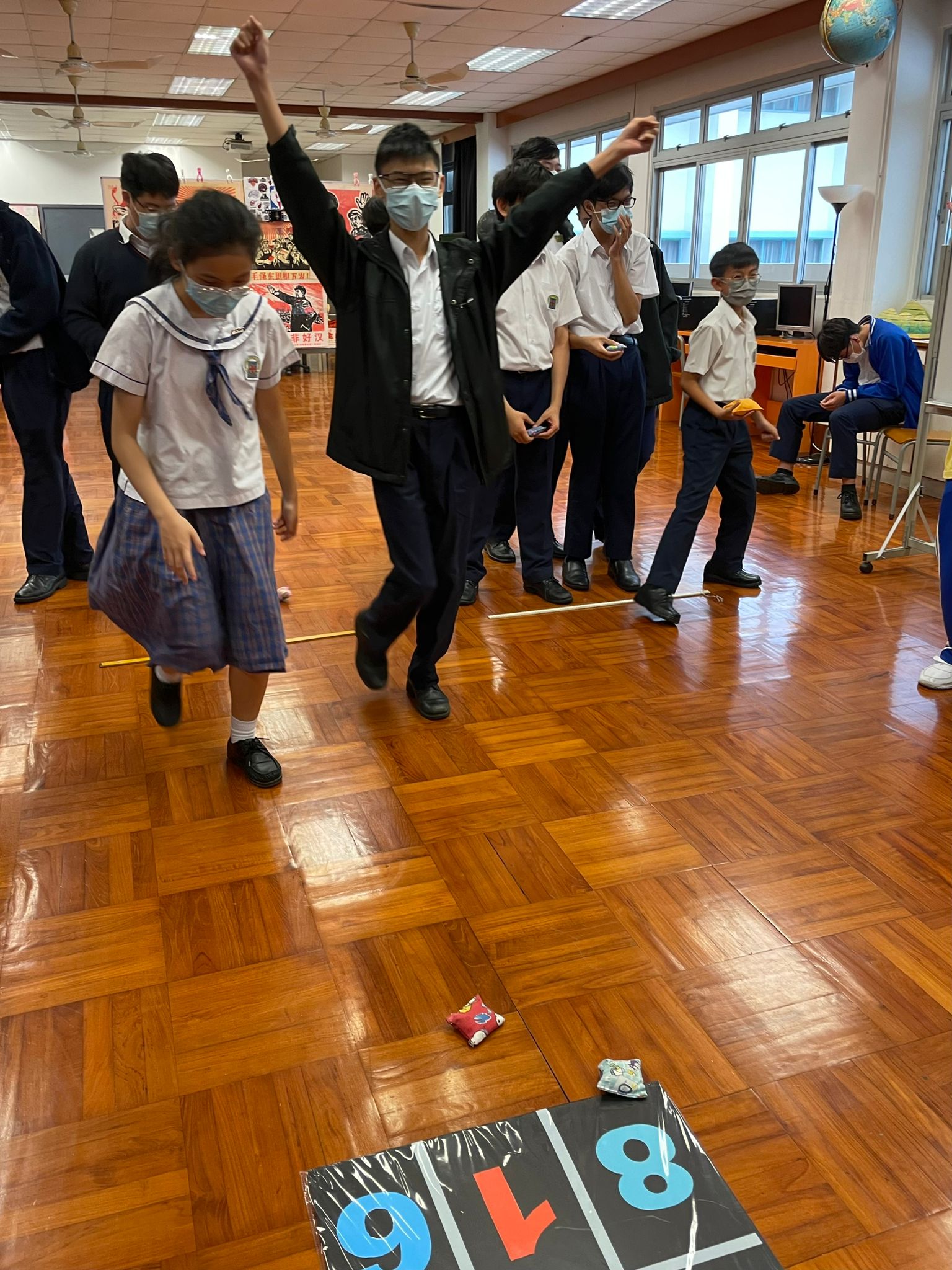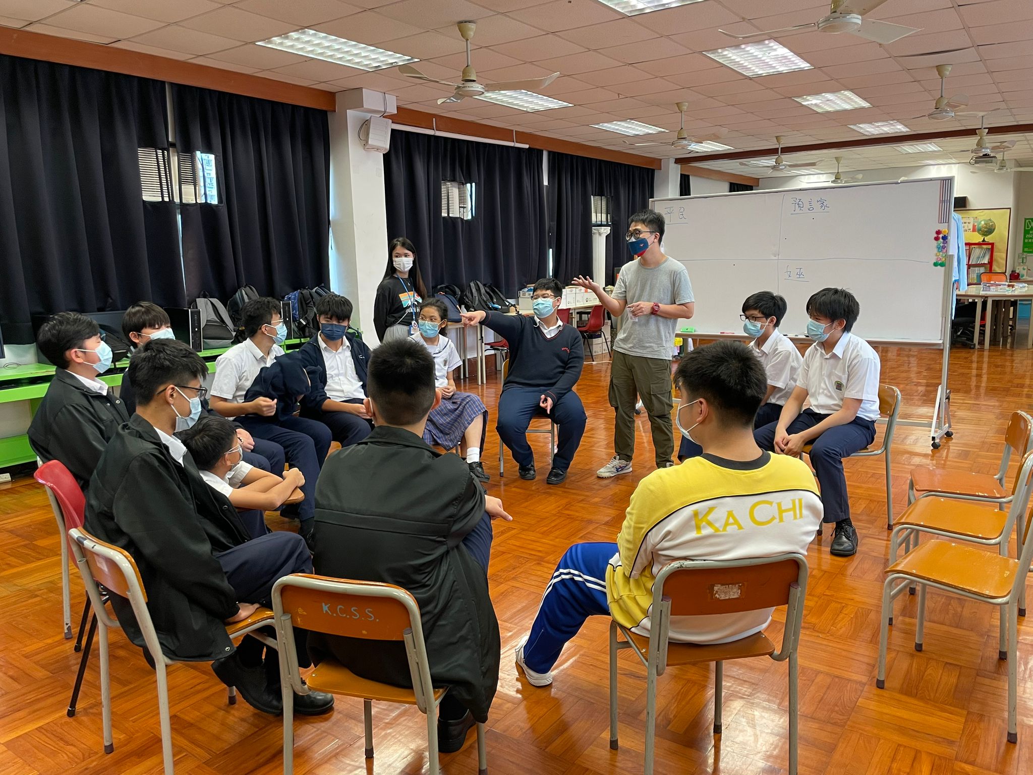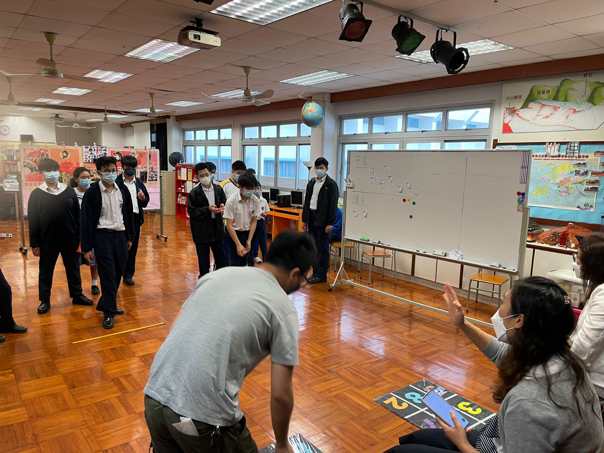 活動開始我們先回顧上次的主題,同學們先分辨出《狼人殺》每個角色的特點,例如「團隊精神」、「批判思考」、「邏輯思考」,「領導能力」、「溝通能力」及「判斷力」等。然後,大家分爲兩組進行另一個活動,同學們利用豆袋掉向九宮格數字,在限定的次數中取得目標分數,數字最接近目標的組別勝出。經過幾輪激烈的比試後,勝出組別分享心得,原來擅長數學的隊員每次投擲前都會計算分數,再讓擅長投擲的同學掉向相應數字。他們透過這個活動明白訂立目標的重要性及技巧,做事前需制定目標,再思考及計劃如何向目標前進,才能成功達成目的。
