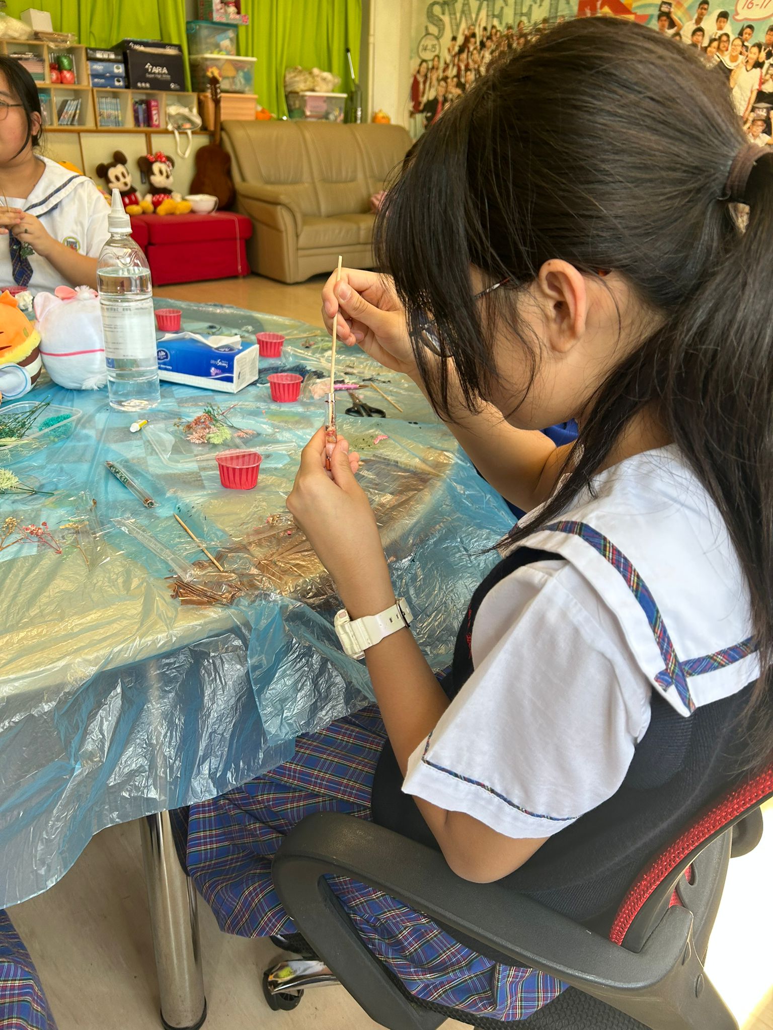 學校準備踏入考試的準備期了!在考試前最後一次的午間活動,輔導領袖生們為同學帶來了浮油花筆製作,輔生們協助同學一同製作屬於自己的浮油花筆,更發揮創意拍攝下每一位同學的成品和笑容,記錄同學豐富多彩的校園生活!希望同學使用獨有的浮油花筆,一起為上學期的考試加油!同學們,一起努力吧!