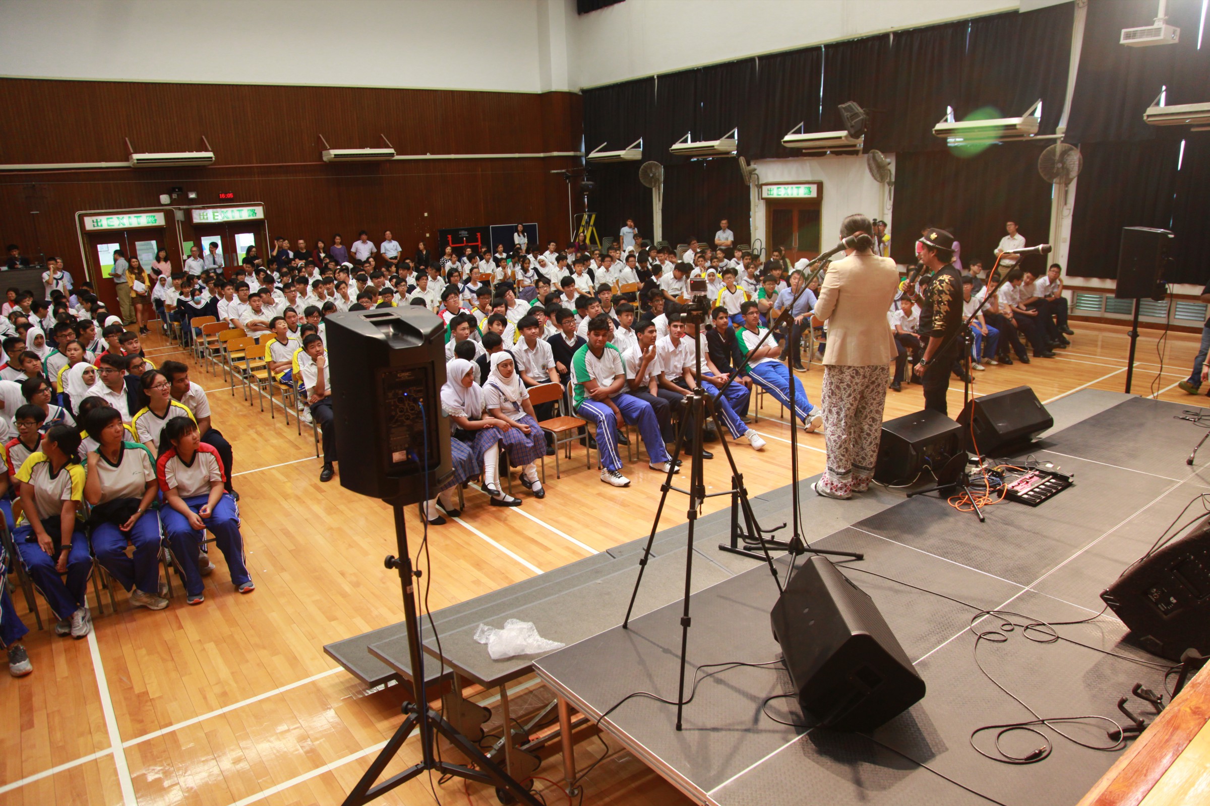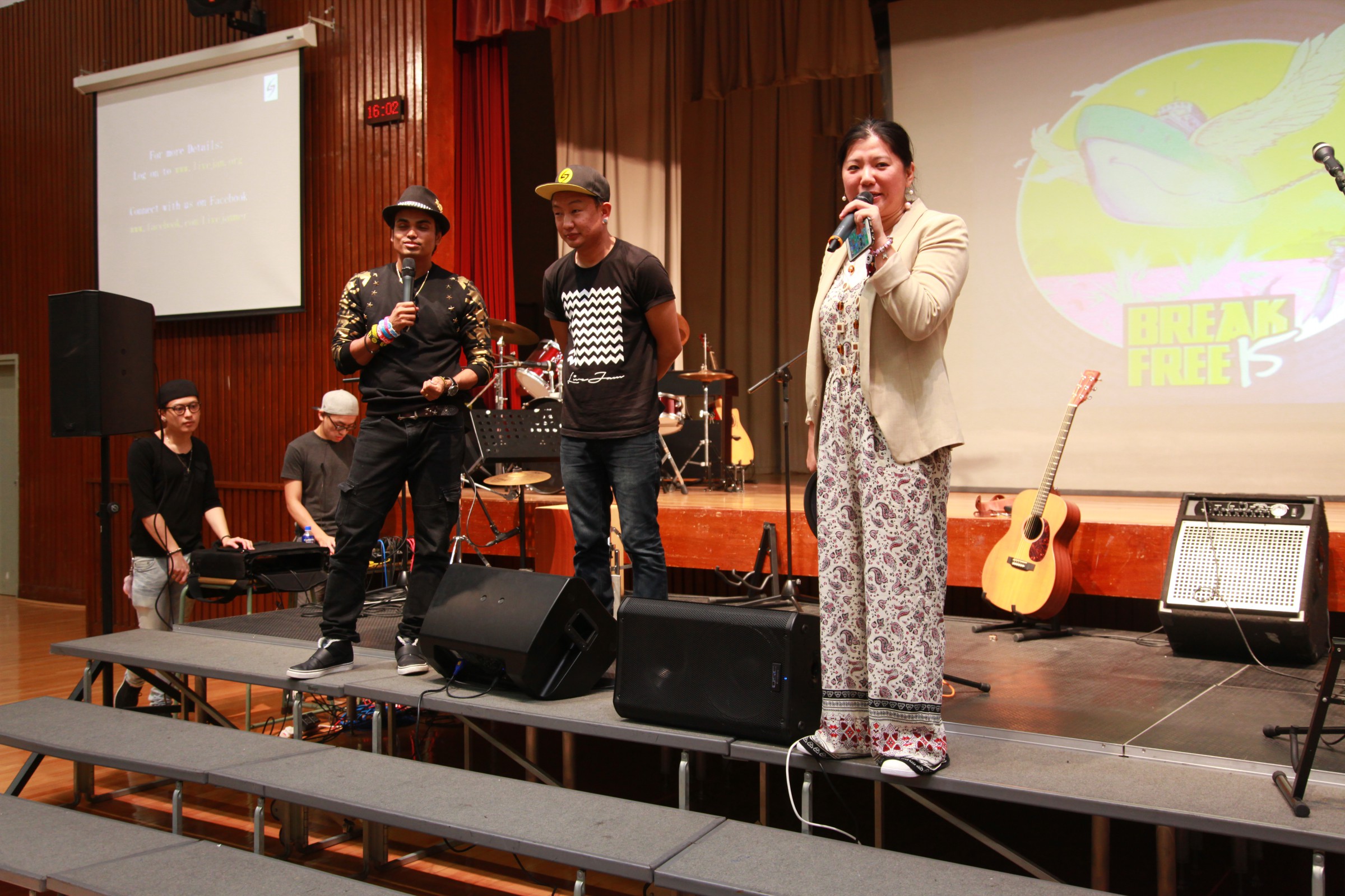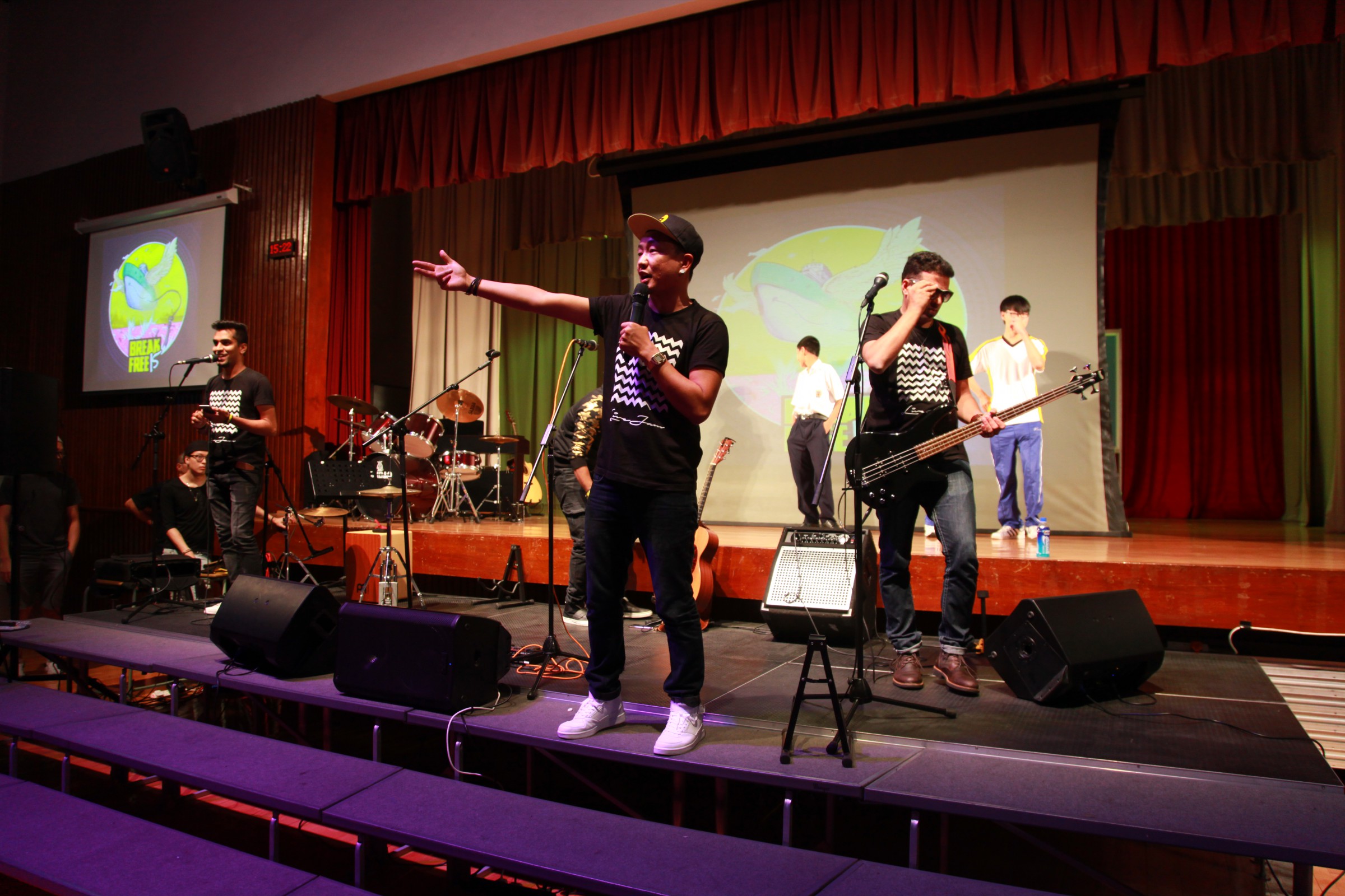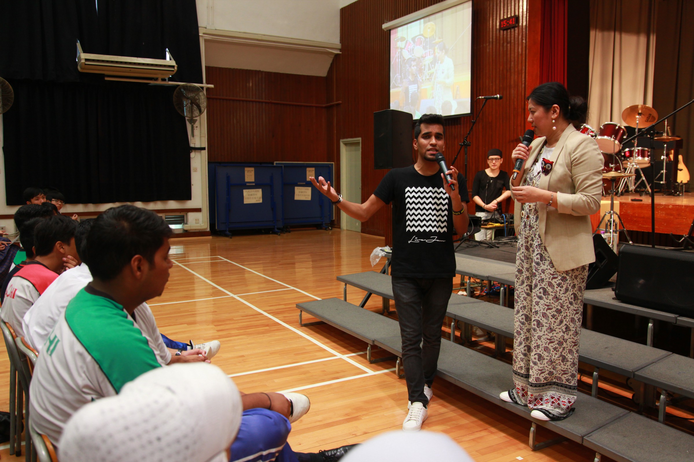 台上的表演者與嘉智的學生打成一片,主音Alobo用他的音樂造詣感染學生,一同在神的恩典下唱歌跳舞。一位弟兄更分享到少時的不快經歷,讓他遇上神,相信神愛他只因「I am who I am」,更鼓勵嘉智的同學多禱告。