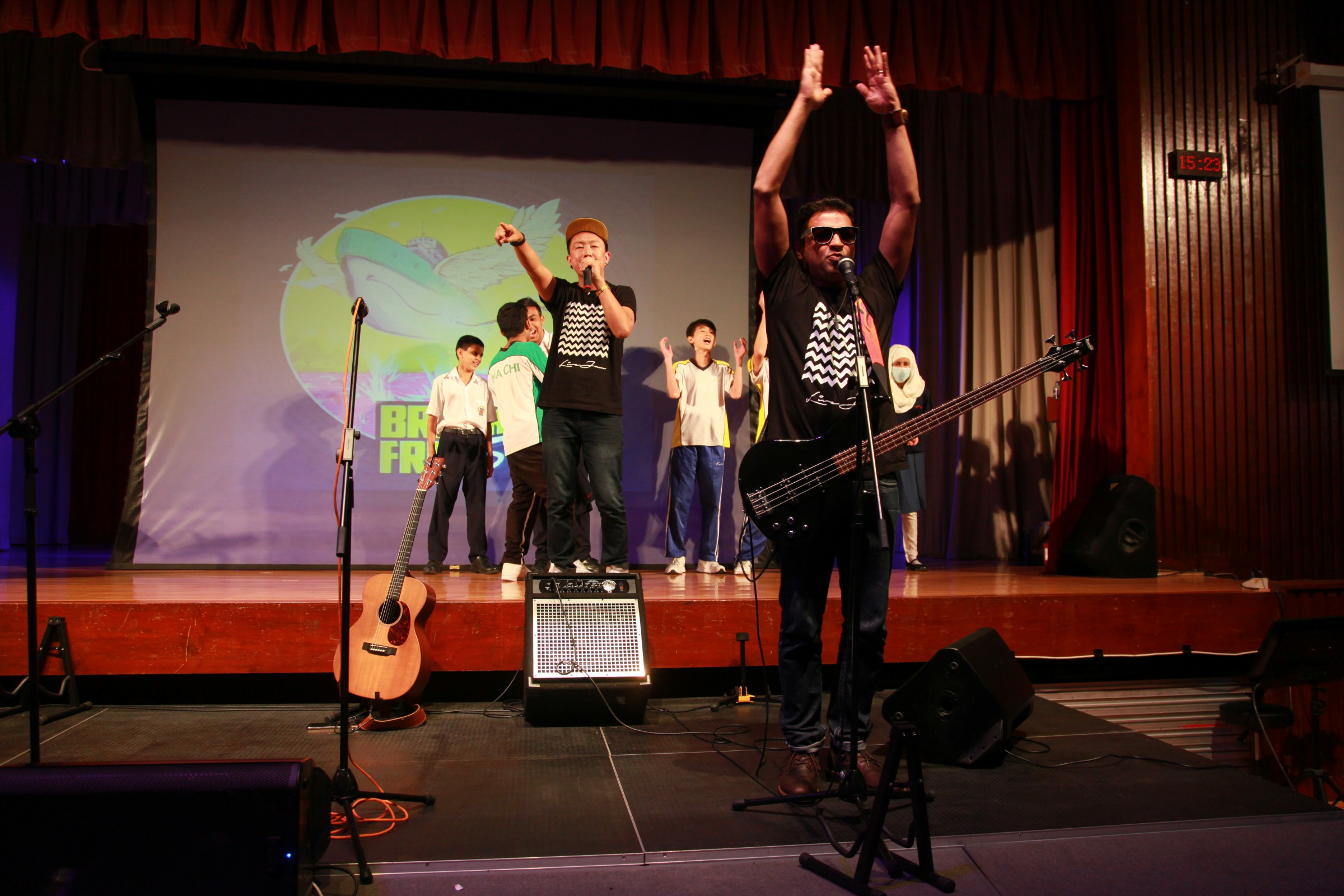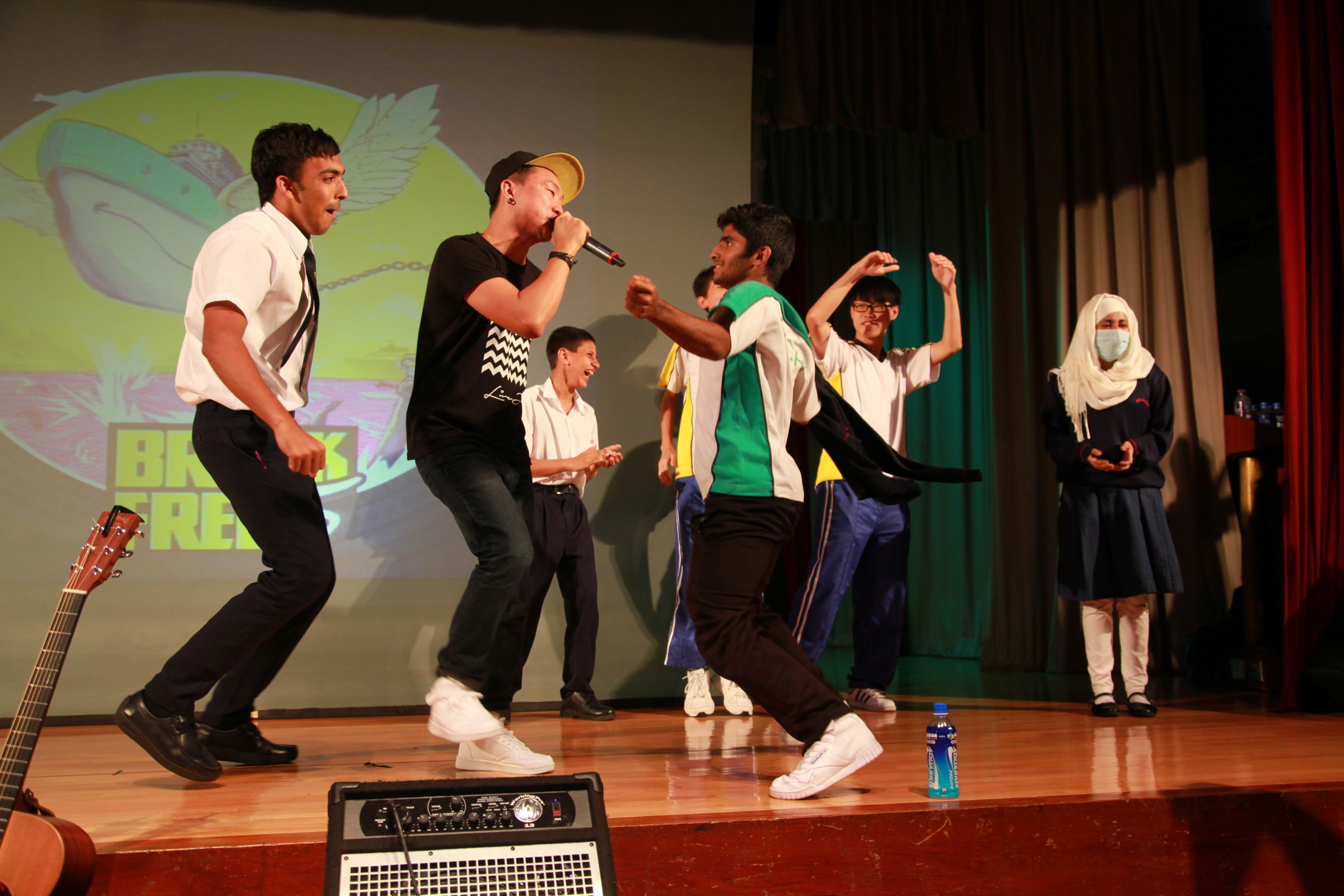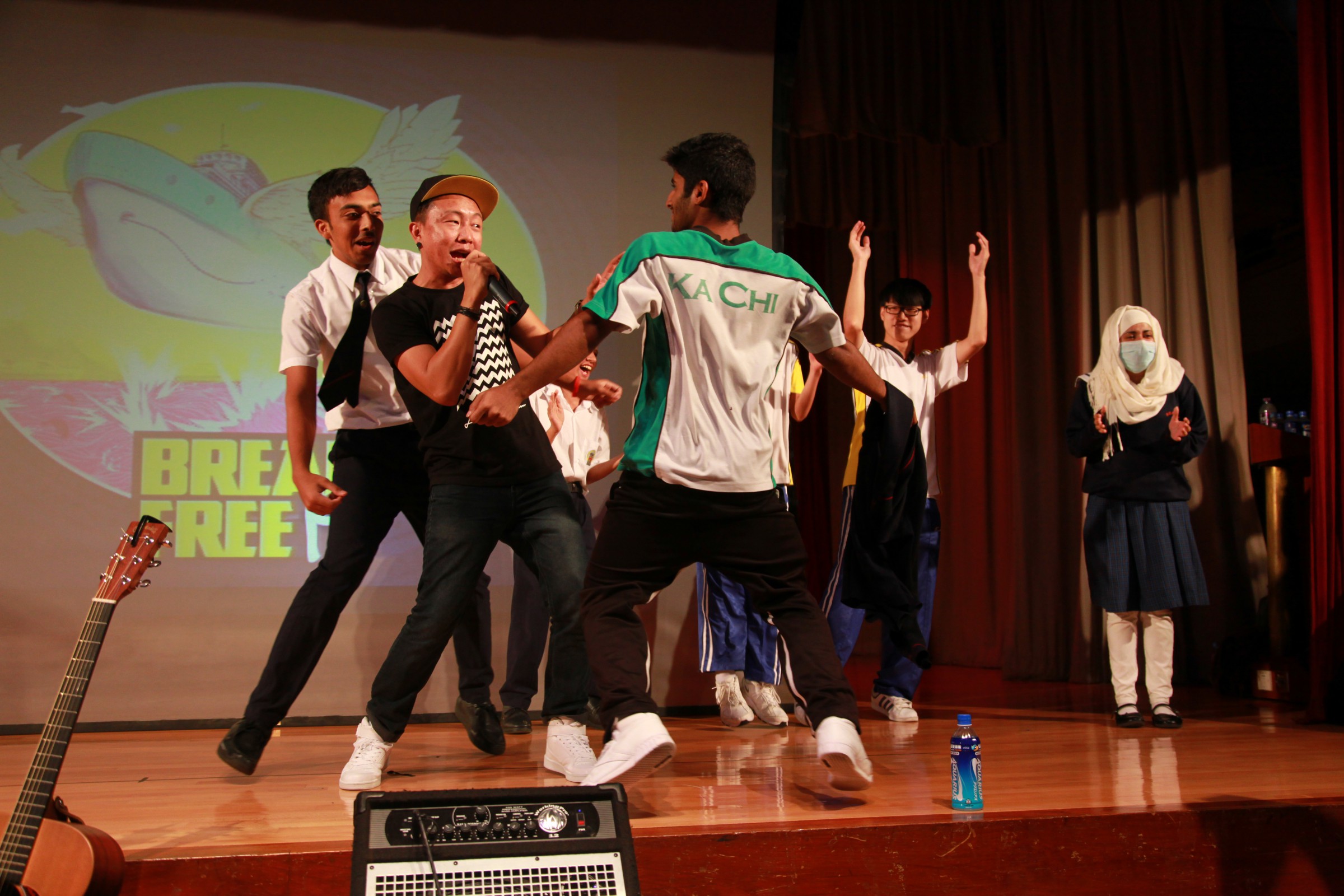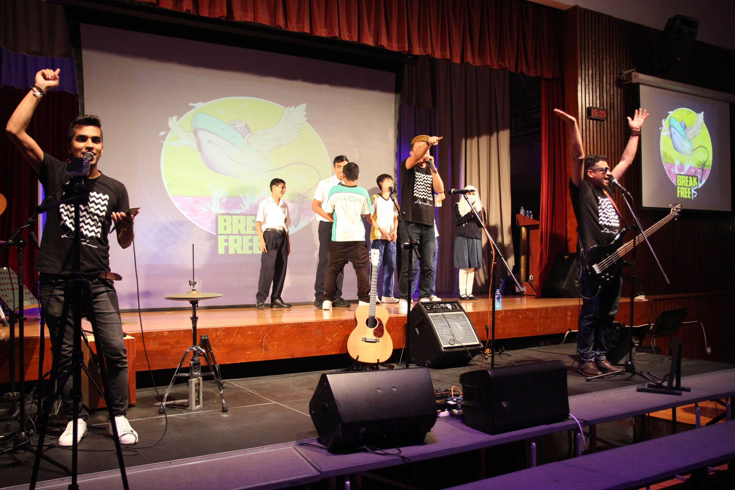 台上的表演者與嘉智的學生打成一片,主音Alobo用他的音樂造詣感染學生,一同在神的恩典下唱歌跳舞。一位弟兄更分享到少時的不快經歷,讓他遇上神,相信神愛他只因「I am who I am」,更鼓勵嘉智的同學多禱告。